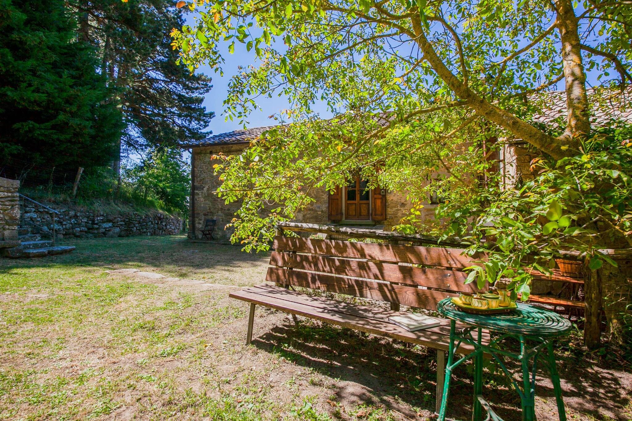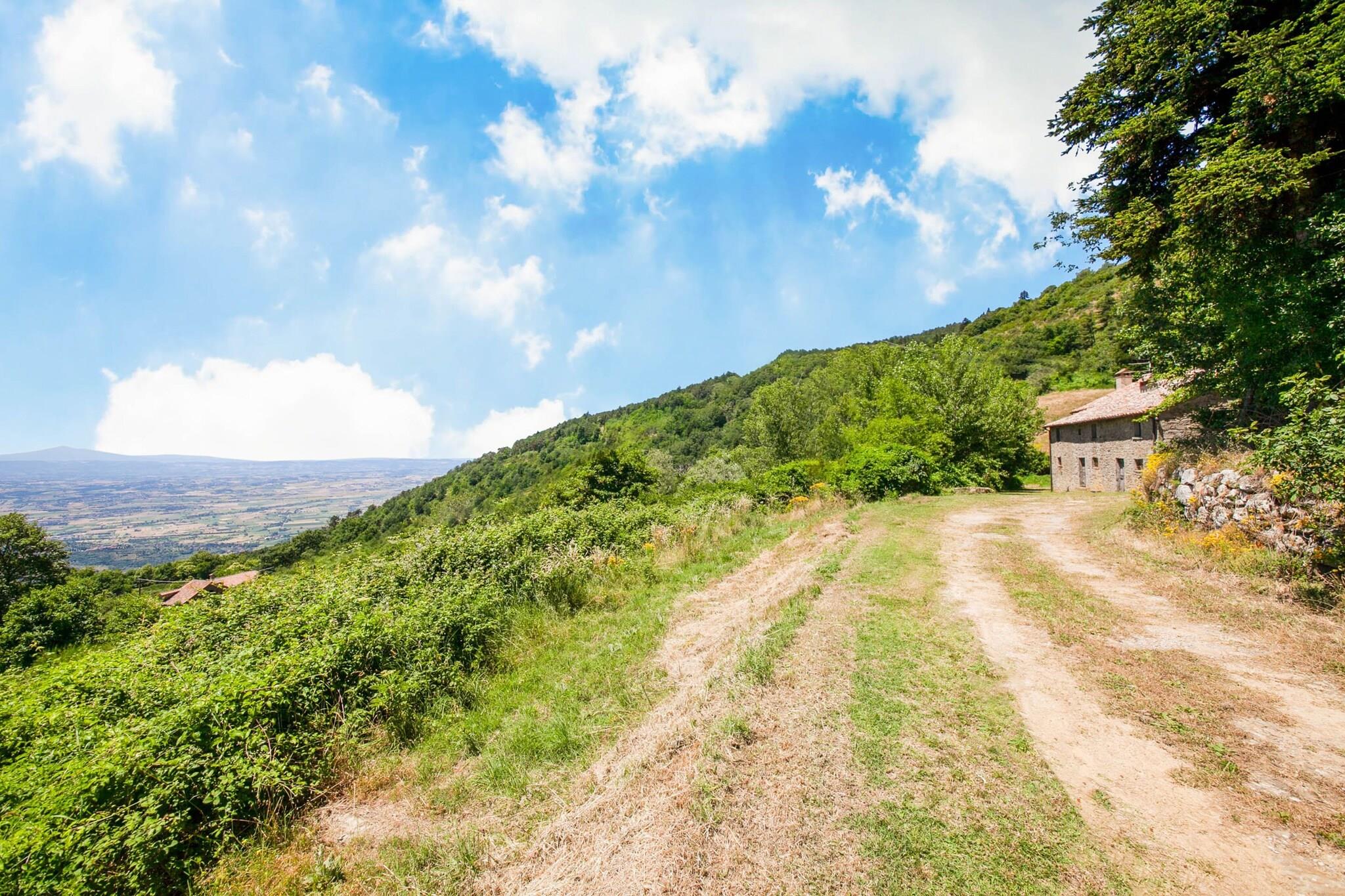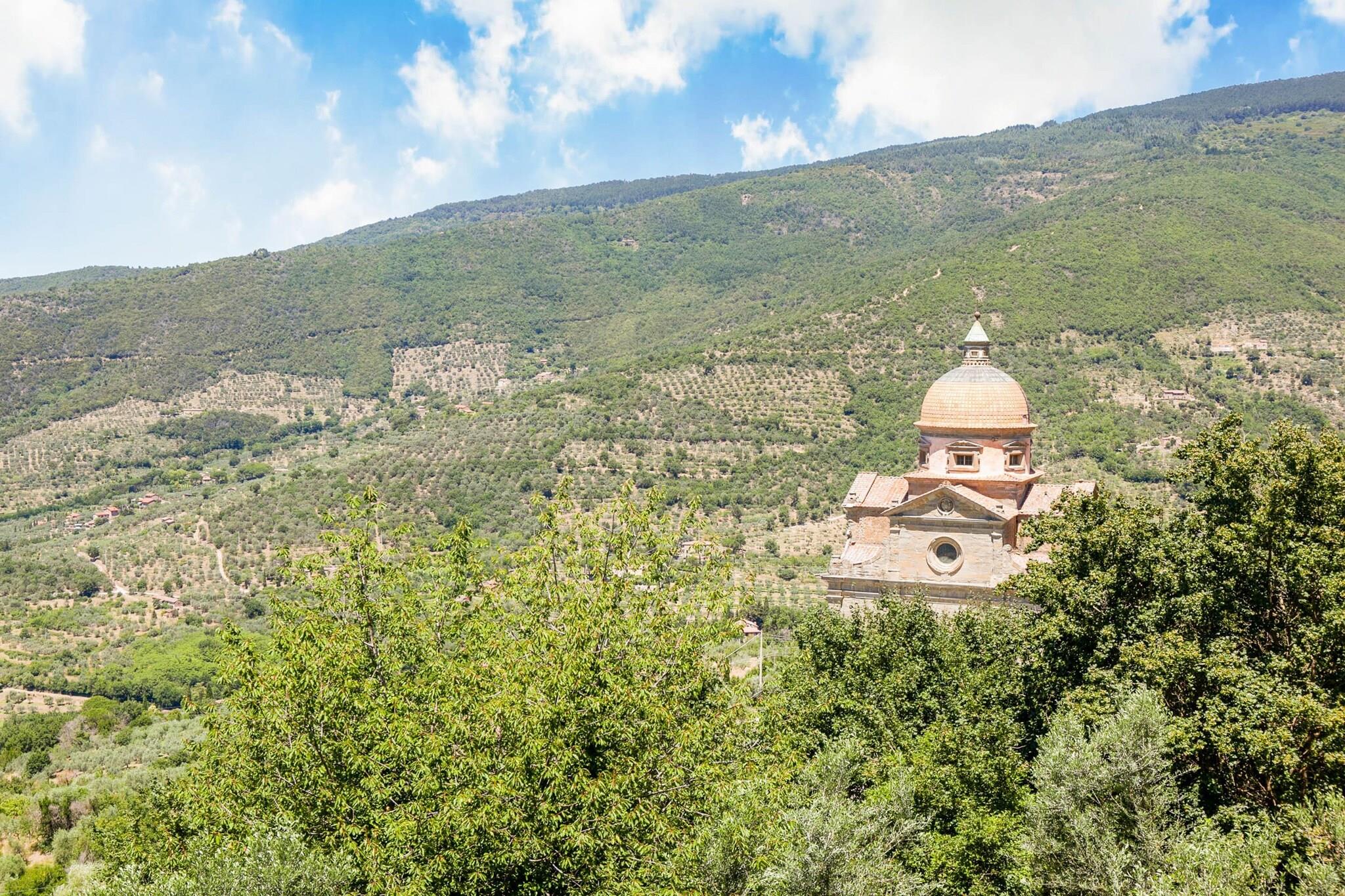 Der Komplex erstrahlt nach der Restaurierung seiner Ruinen, wo einst eine Abtei der Kamaldulensermönche stand, in seiner alten Pracht. Dieses Bauernhaus in Cortona bietet Platz für ca. 6 Personen in 2 Schlafzimmern. Der private Garten lädt zum Verweilen ein, mit Sonne und fröhlichen Kindern. Ideal für Familien – hier ist für jeden etwas dabei. Der wunderschöne Blick auf Cortona (10 km), den Trasimenischen See und das Valdichiana wird Sie begeistern. In herrlicher Lage zwischen der Toskana und Umbrien bietet das Bauernhaus einen Urlaub inmitten der Natur am Rande von Eichen- und Pinienwäldern. Zahlreiche Wanderwege beginnen hier, von denen der berühmteste Cortona mit den wichtigsten Franziskanerstätten und bis zum Eremo de La Verna (Arezzo) verbindet, das nach Corona führt. Der Ort ist ideal für alle, die Ruhe und Entspannung lieben. Sonnenliegen und ein Grill sorgen für einen abwechslungsreichen Urlaub und wecken die Lust auf Essen und Natur. Der internationale Flughafen Neapel ist 41 km entfernt. Gäste werden mit einem Willkommenspaket mit regionalen Bio-Produkten begrüßt. Das Grundstück ist eingezäunt, damit auch Vierbeiner sicher willkommen sind.