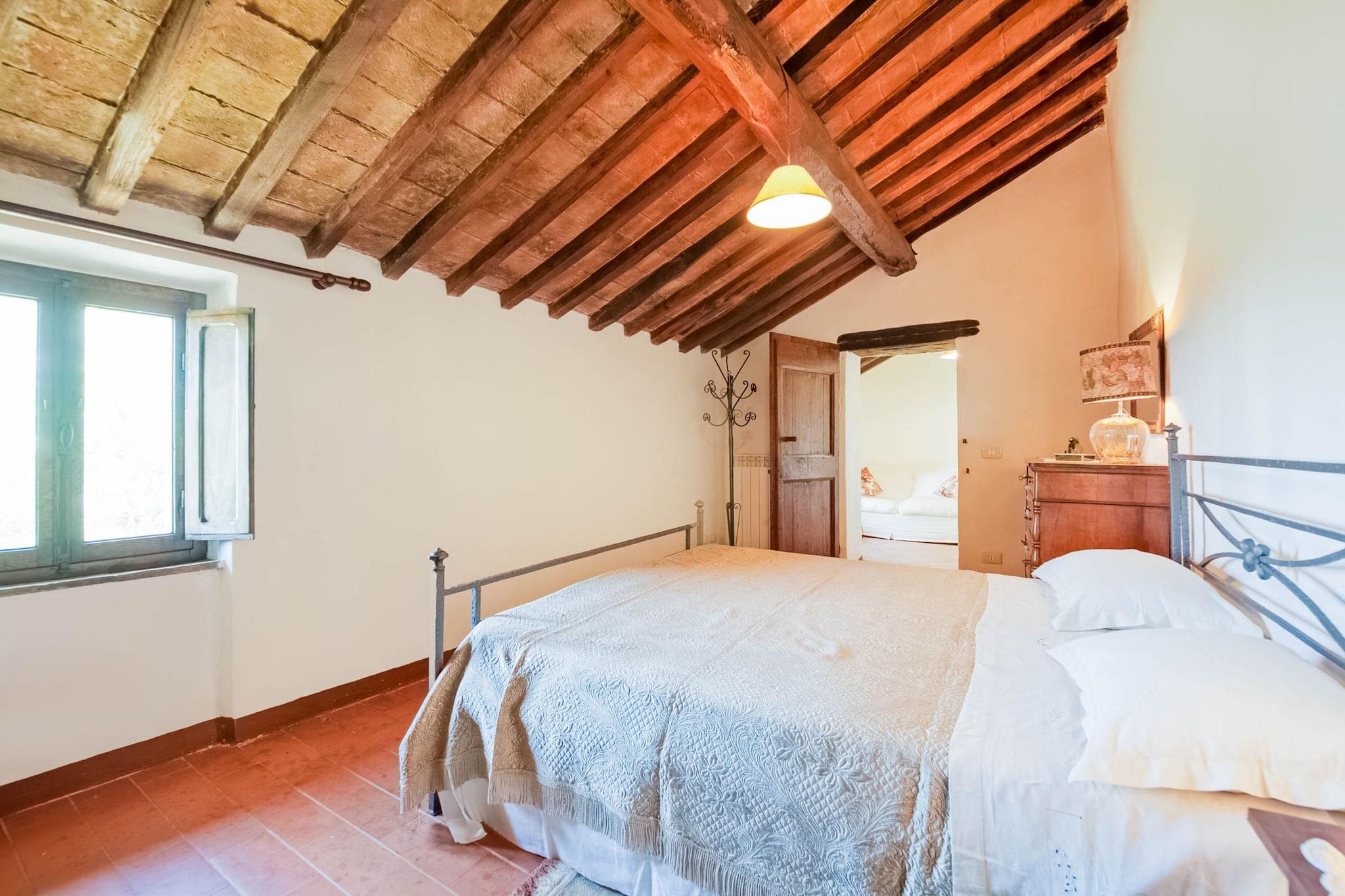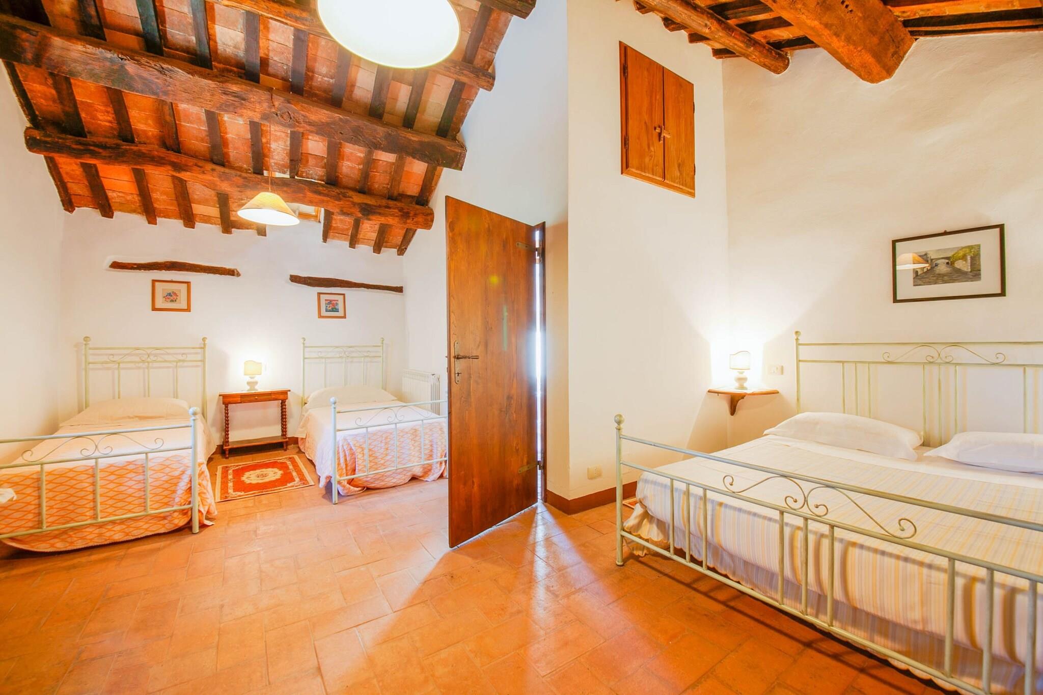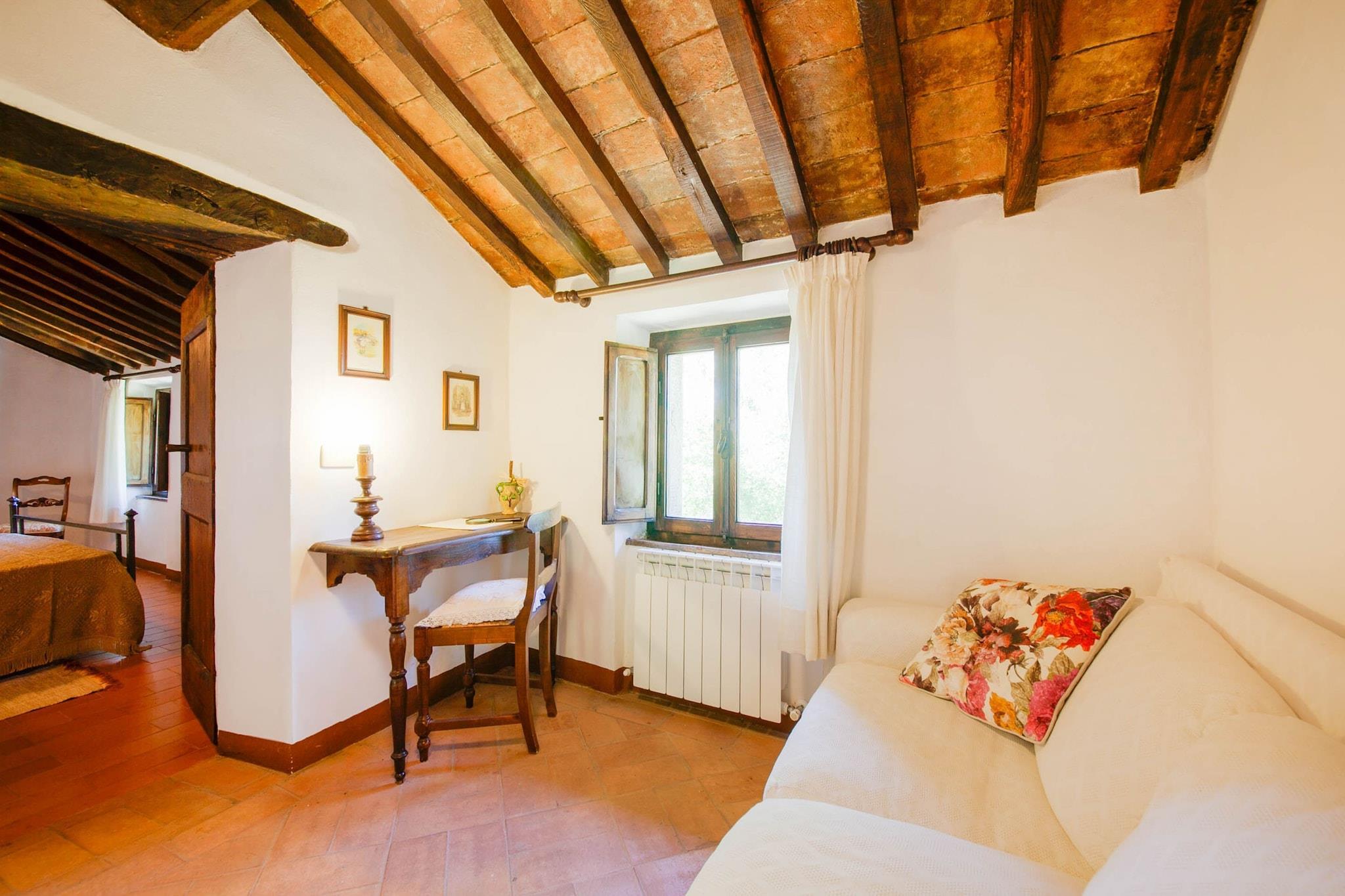 Der Komplex erstrahlt nach der Restaurierung seiner Ruinen, wo einst eine Abtei der Kamaldulensermönche stand, in seiner alten Pracht. Dieses Bauernhaus in Cortona bietet Platz für ca. 6 Personen in 2 Schlafzimmern. Der private Garten lädt zum Verweilen ein, mit Sonne und fröhlichen Kindern. Ideal für Familien – hier ist für jeden etwas dabei. Der wunderschöne Blick auf Cortona (10 km), den Trasimenischen See und das Valdichiana wird Sie begeistern. In herrlicher Lage zwischen der Toskana und Umbrien bietet das Bauernhaus einen Urlaub inmitten der Natur am Rande von Eichen- und Pinienwäldern. Zahlreiche Wanderwege beginnen hier, von denen der berühmteste Cortona mit den wichtigsten Franziskanerstätten und bis zum Eremo de La Verna (Arezzo) verbindet, das nach Corona führt. Der Ort ist ideal für alle, die Ruhe und Entspannung lieben. Sonnenliegen und ein Grill sorgen für einen abwechslungsreichen Urlaub und wecken die Lust auf Essen und Natur. Der internationale Flughafen Neapel ist 41 km entfernt. Gäste werden mit einem Willkommenspaket mit regionalen Bio-Produkten begrüßt. Das Grundstück ist eingezäunt, damit auch Vierbeiner sicher willkommen sind.