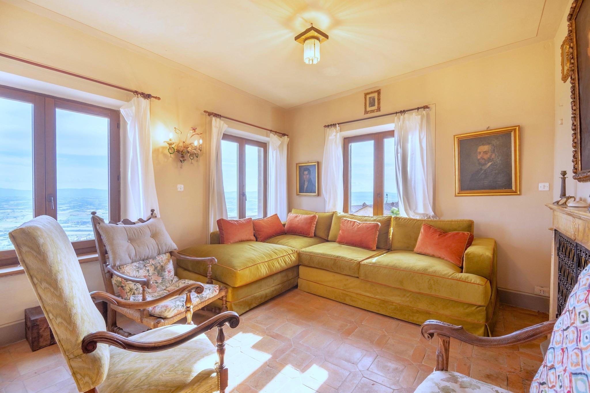 Die Villa Serena liegt hoch über dem Trasimenischen See und ist ein ruhiges, haustierfreundliches Steinhaus, das Komfort, Charme und eine unvergessliche Aussicht bietet. Mit Platz für bis zu sechs Gäste ist sie der perfekte Rückzugsort für Familien oder Freunde, die ein authentisches Toskana-Erlebnis suchen. Nur eine kurze Autofahrt von Cortona entfernt verbindet das Haus rustikale Schönheit mit modernen Wellness-Annehmlichkeiten wie WLAN und Privatparkplätzen. Im Inneren besticht die Villa durch ein einladendes Wohnzimmer mit Klimaanlage und eine große, gut ausgestattete Küche. Drei Schlafzimmer und zwei Badezimmer bieten Komfort und Funktionalität, während die antiken Möbel Wärme und Charakter verleihen. Im Nebengebäude erwarten Sie ein privater Whirlpool, ein türkisches Dampfbad (gegen Gebühr) und ein Fitnessbereich. Ein Blockhaus mit privater Sauna (gegen Gebühr) rundet das Wellnessangebot ab. Im Außenbereich können Sie im üppigen, 200 m² großen Privatgarten mit Pool, Whirlpool, Grill, Hängematte und Terrasse für Mahlzeiten im Freien entspannen. Genießen Sie den Seeblick, sonnige Morgen und ruhige Abende unter dem toskanischen Himmel. Mit Weingütern, historischen Sehenswürdigkeiten und den Ufern des Trasimenischen Sees in der Nähe bietet die Villa Serena eine perfekte Mischung aus Entspannung und Entdeckung.