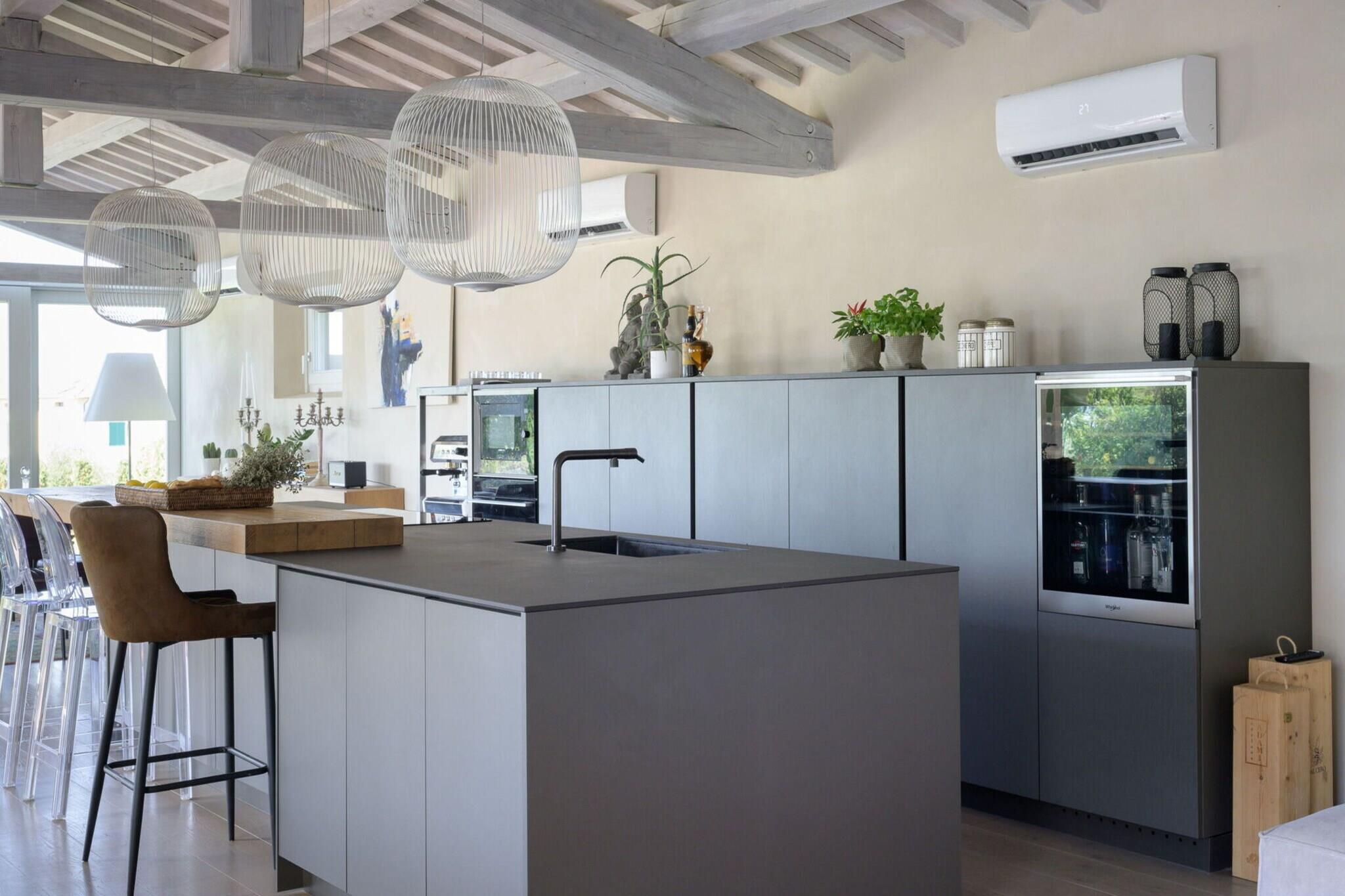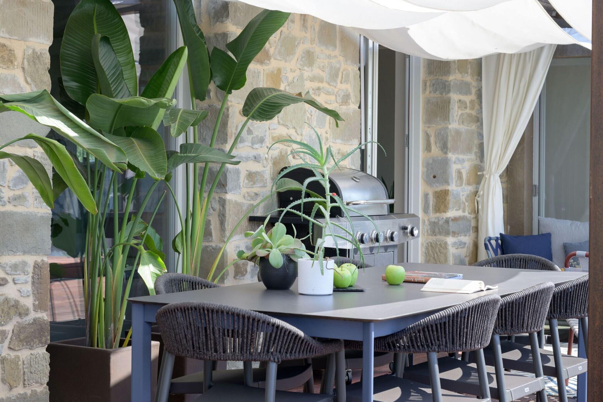 Inmitten der sonnenverwöhnten Hügel nahe Cortona vereint diese Steinvilla umweltbewusstes Design mit raffiniertem, modernem Luxus. Im Inneren erwarten Sie klare architektonische Linien, die durch warme Holzakzente und sorgfältig ausgewähltes Dekor abgerundet werden. Panoramafenster verbinden den Innen- und Außenbereich nahtlos und bieten einen herrlichen Blick auf die umliegenden Weinberge. Im wunderschön angelegten Garten erwartet Sie ein privater Infinity-Pool, während die Sauna, das türkische Bad und der Massagebereich im Untergeschoss der Villa eine private Wellnessoase schaffen. Ob Sie im Freien auf der Terrasse speisen, den Frühstücksservice im Innenbereich genießen oder einfach unter dem Sonnenschirm entspannen – hier ist jeder Moment der wohltuenden Entspannung gewidmet. Nur wenige Minuten entfernt bietet das bezaubernde Cortona mit seinen mittelalterlichen Gassen, Kunsthandwerksläden und spektakulären Ausblicken auf die Hügel eine Reise in die geschichtsträchtige Vergangenheit der Toskana. Das nahe gelegene Montepulciano lockt Weinliebhaber, während Pienza und Montalcino malerische Tagesausflüge voller Kultur und lokalem Flair versprechen. Golfbegeisterte finden einen makellosen Golfplatz nur 11 km entfernt, und die Bahnhöfe Camucia oder Terontola bieten eine bequeme Anbindung an Florenz, Rom und weitere Orte. Trotz der erstklassigen Lage bietet die Villa eine herrlich abgeschiedene Atmosphäre – ideal für erholsame Nachmittage unter der Sonne der Toskana. In der Nähe wird die lokale Tradition zelebriert – im Umkreis von 2 km finden Sie authentische Trattorien und Weinbars mit handgerollter Pasta, saisonalem Gemüse und Chianti direkt vom Weinberg. Für ein unvergessliches Essen besuchen Sie das La Bucaccia in Cortona und genießen Sie das berühmte Florentiner Steak oder einen Aperitif bei Sonnenuntergang in der Osteria del Teatro.
