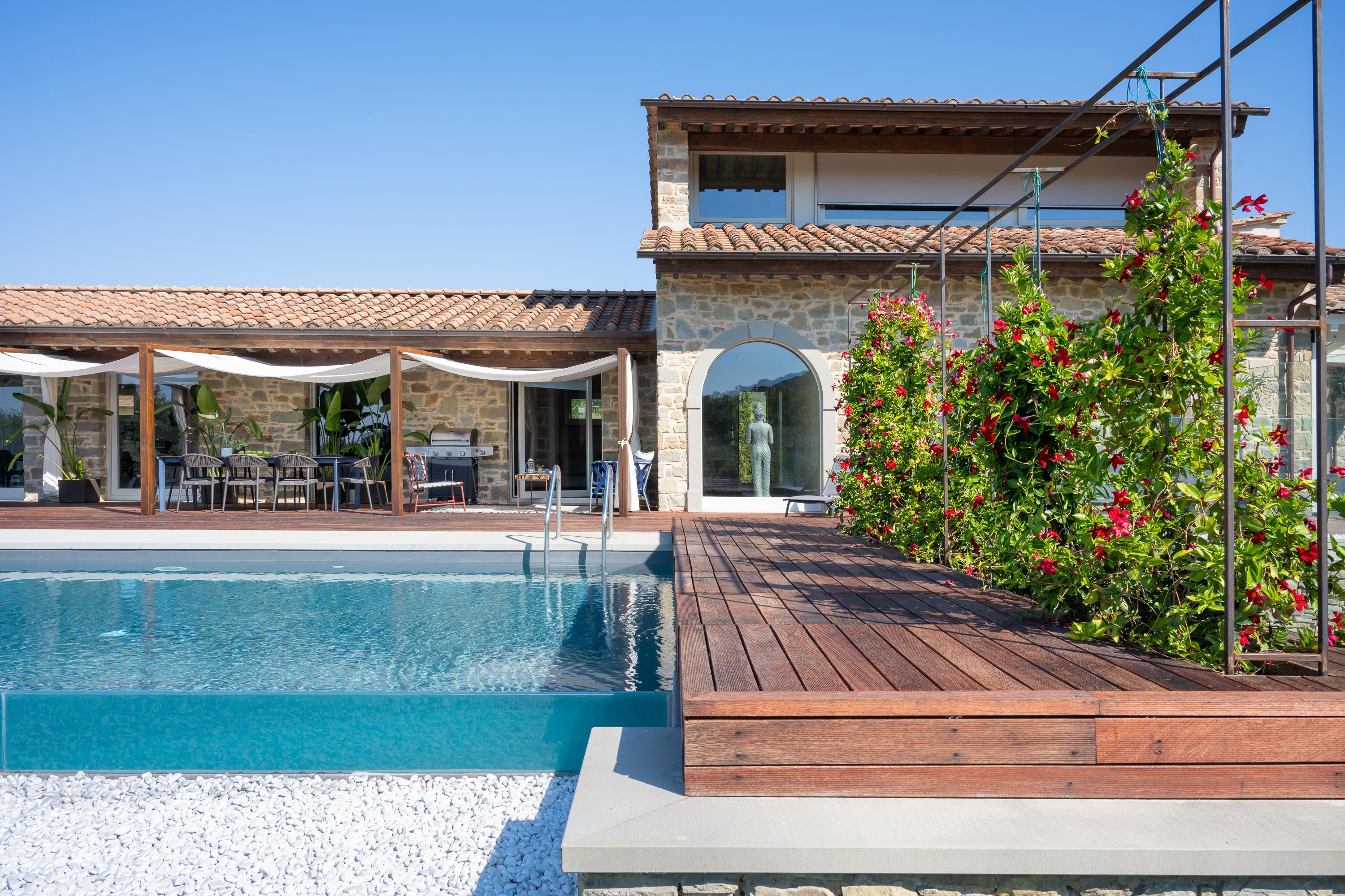 Die Villa ist aus Stein gebaut und verfügt über einen starken modernen Charakter, der jedoch eine Kombination aus traditionellen Merkmalen und zeitgenössischem Komfort bietet. Die Renovierung wurde von einem Konzept inspiriert, das darauf abzielt, die Umwelt zu respektieren: die Rückgewinnung von Regenwasser, das für die Bewässerung des Gartens verwendet wird, und das Solargewächshaus zur Nutzung der Sonnenenergie sind nur einige der Maßnahmen, die es Ihnen ermöglichen, einen Urlaub voller Luxus zu genießen und gleichzeitig die Natur zu respektieren.