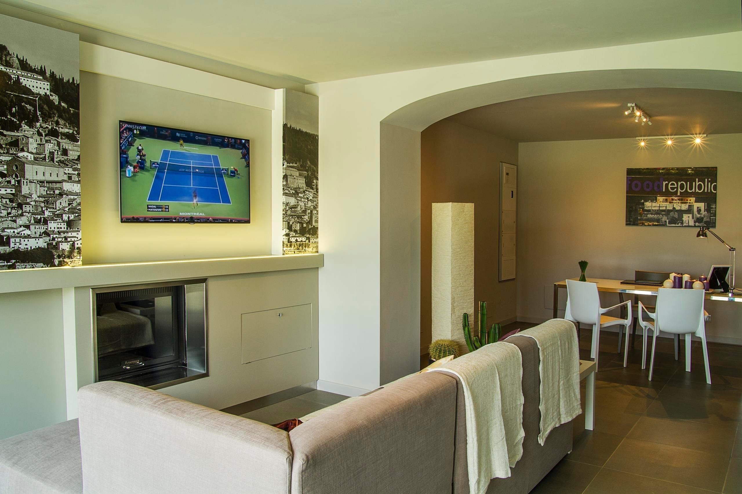 Die Villa wurde von den Eigentümern eingerichtet, die ihren Gästen den besten Komfort bieten wollten, indem sie moderne Materialien und hochwertige Oberflächen verwendeten und helle Räume mit luxuriösem Design und großen Fenstern schufen, von denen aus man einen wunderschönen Blick auf die umliegende Landschaft genießen kann. Die Villa, die sich über drei Etagen erstreckt, die durch eine Innentreppe miteinander verbunden sind, aber auch über Außenzugänge des Anwesens erreicht werden können, verfügt über 4 Doppelschlafzimmer, von denen jedes dank der mit "Wellness & Comfort" ausgestatteten Bäder auf Ihr Wohlbefinden ausgerichtet ist.