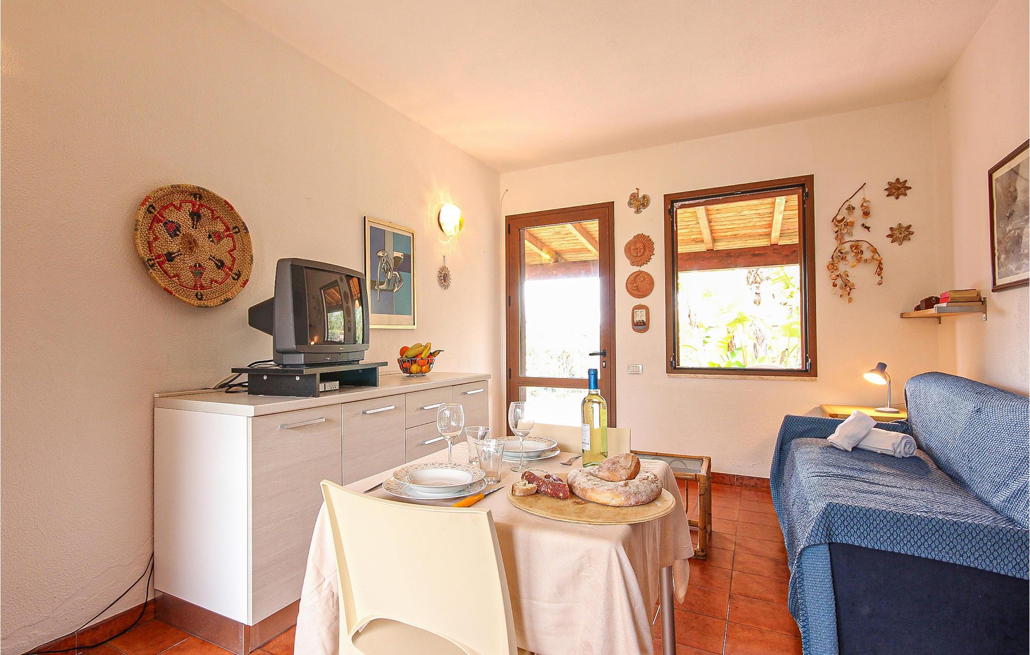 Das einfach eingerichtete Ferienhaus erstreckt sich über ein Schlafzimmer mit Doppelbett, ein Badezimmer und einen Wohnraum mit zwei weiteren Schlafplätzen. Dank seiner Lage, nur circa 50 m vom Meer entfernt, ist es der ideale Ort für einen Sommerurlaub mit langen Tagen am Strand.