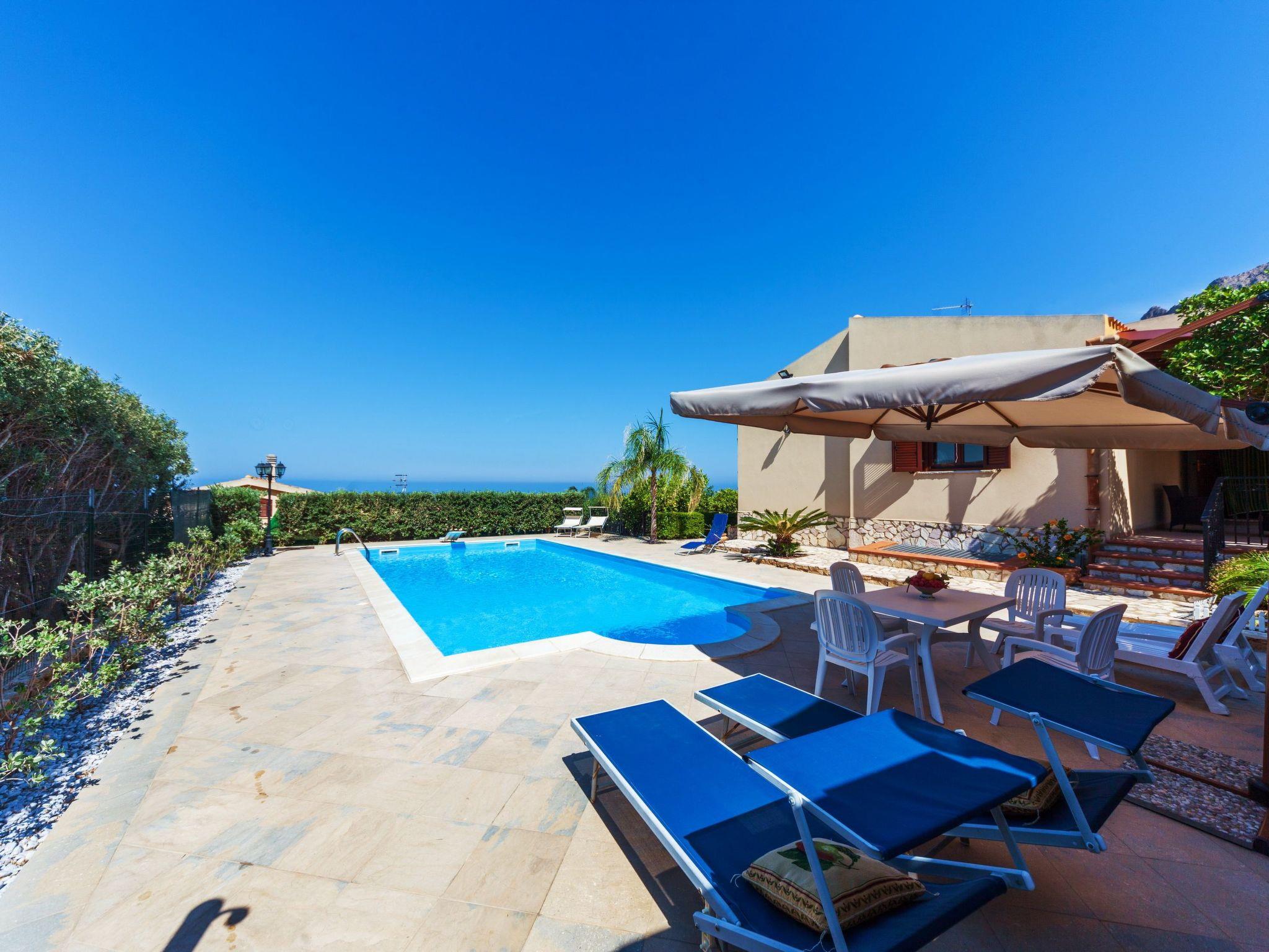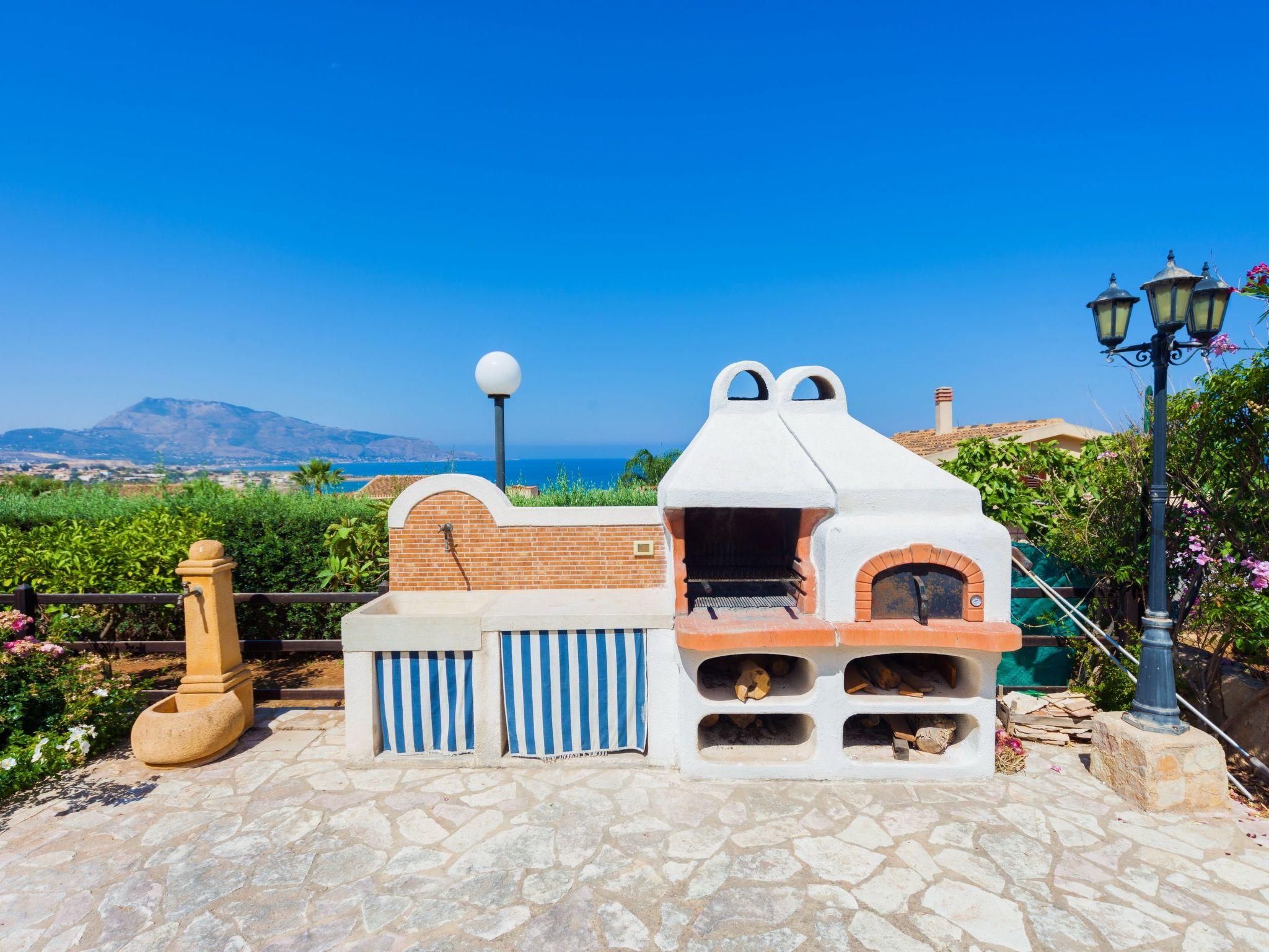Das Haus hat eine atemberaubende Außenseite, wo Sie viele Ecken finden können, wo Sie Ihren Aufenthalt genießen können: es gibt den Poolbereich, der das Meer überblickt; es gibt ein Wohnzimmer, wo Sie ein Buch lesen können, neben dem Pool; der Grillplatz, perfekt ausgestattet mit einem Holzofen, wo Sie Ihre eigenen Pizzen machen können; es gibt viele Blumen und Bäume im Park; und dann gibt es die Terrasse, einen wunderschönen Balkon mit Blick auf das Mittelmeer!