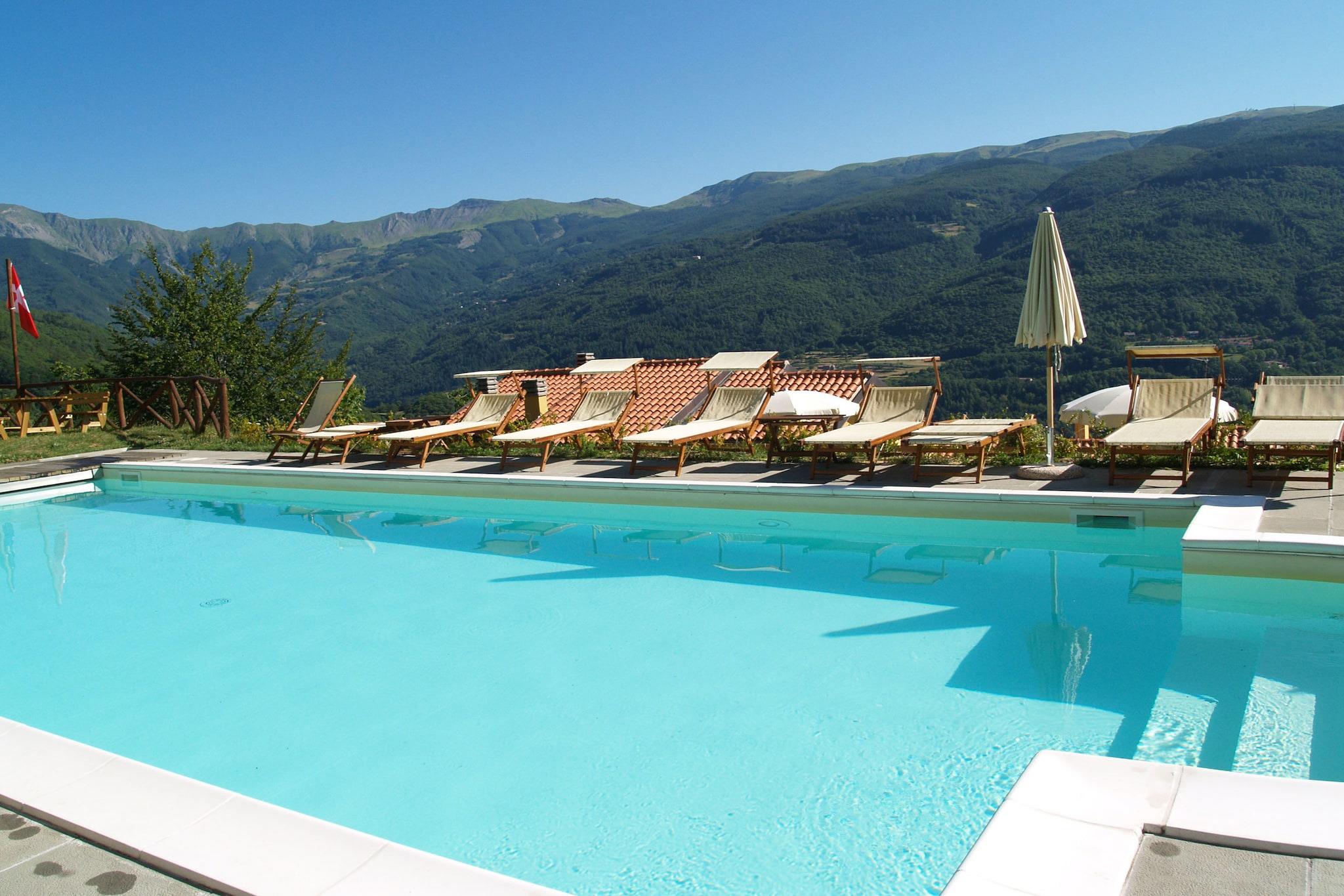 Entfliehen Sie dem Alltag in dieses ruhige Chalet im Pistoia-Apennin, eingebettet auf 900 Metern Höhe im üppigen Sestaione-Tal nahe Cutigliano. Dieses ganzjährig ideale Bergdomizil bietet Entspannung und Abenteuer gleichermaßen. Im Sommer können Sie im Panoramapool entspannen, auf Waldwegen spazieren gehen oder die sonnendurchflutete Ruhe des Gartens genießen. Mountainbiker, Wanderer und Abenteuerlustige werden den nahegelegenen Gravity Park Doganaccia, den Canyon Park und die Reitwege lieben. Im Winter verwandelt sich das Chalet in ein verschneites Paradies. Fahren Sie Ski auf den familienfreundlichen Pisten von Doganaccia oder erkunden Sie die 50 km Pisten und Panoramalifte von Abetone. Kinder können sich beim Tubing und Schneeschuhwandern vergnügen, während der Garten perfekt für Schneespaß ist. Nach einem Tag im Freien können Sie es sich im Gemeinschaftsbereich bei einem lokalen Wein gemütlich machen oder auf Ihrer privaten Terrasse entspannen. Erkunden Sie das charmante Cutigliano (4 km), speisen Sie im Il Nonno Cianco oder in der Trattoria da Fagiolino und besuchen Sie Pistoia, Florenz oder Pisa - alles in Reichweite. Entdecken Sie nahegelegene Highlights wie die Hängebrücke San Marcello oder beobachten Sie die Sterne in Gavinanas Observatorium. Ob Sommerwanderungen oder Winterskifahren - dieses Chalet bietet toskanischen Alpencharme, lokale Küche und Natur direkt vor der Haustür.