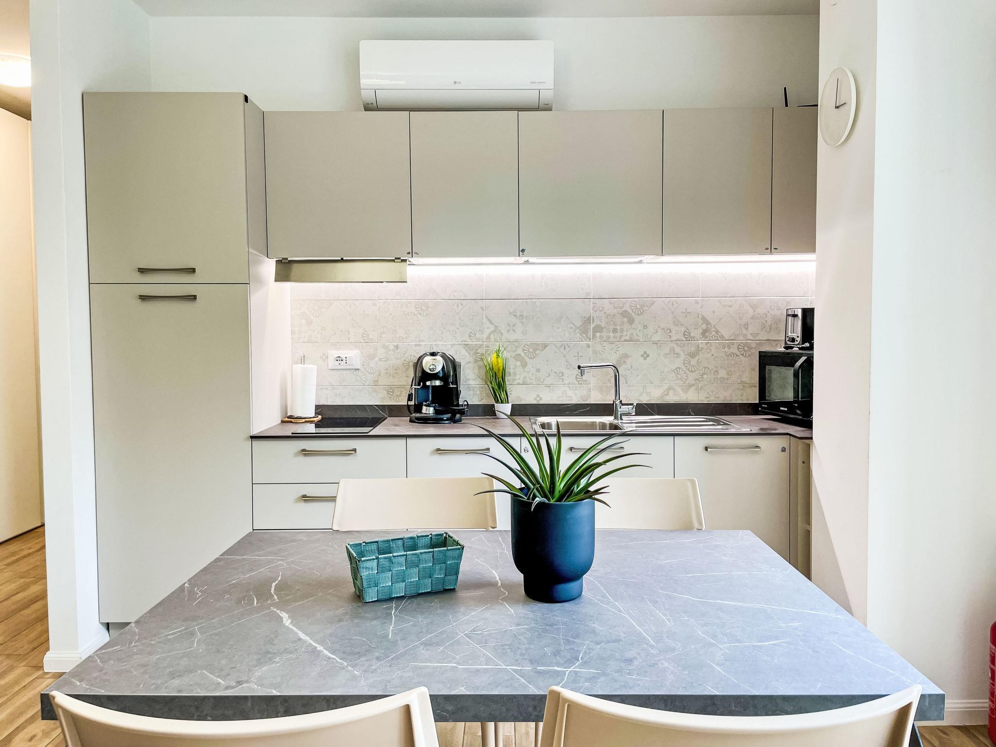 1-Zimmer-Wohnung 35 m2 im 1. Stock. Vollständig renoviert im Jahre 2025, komfortabel und geschmackvoll eingerichtet: Wohn-/Schlafzimmer mit 1 Doppeldiwanbett, Esstisch und Digital-TV. Ausgang zum Balkon. Offene Küche (Geschirrspüler, 2 Induktionskochplatten, Toaster, Wasserkocher, elektrische Kaffeemaschine, Kapseln für die Kaffeemaschine (Delonghi) gratis, Kombinationsmikrowelle). Dusche/Bidet/WC. G-Heizung, Klimaanlage. Heizung nur verfügbar von 15.10. bis 15.04. Balkon. Balkonmöbel. Zur Verfügung: Waschmaschine, Haartrockner. Internet (WLAN, gratis). Bitte beachten: Nichtraucher-Unterkunft. Feuerlöscher, kein Fahrstuhl. IT097030C2MOHI39YU