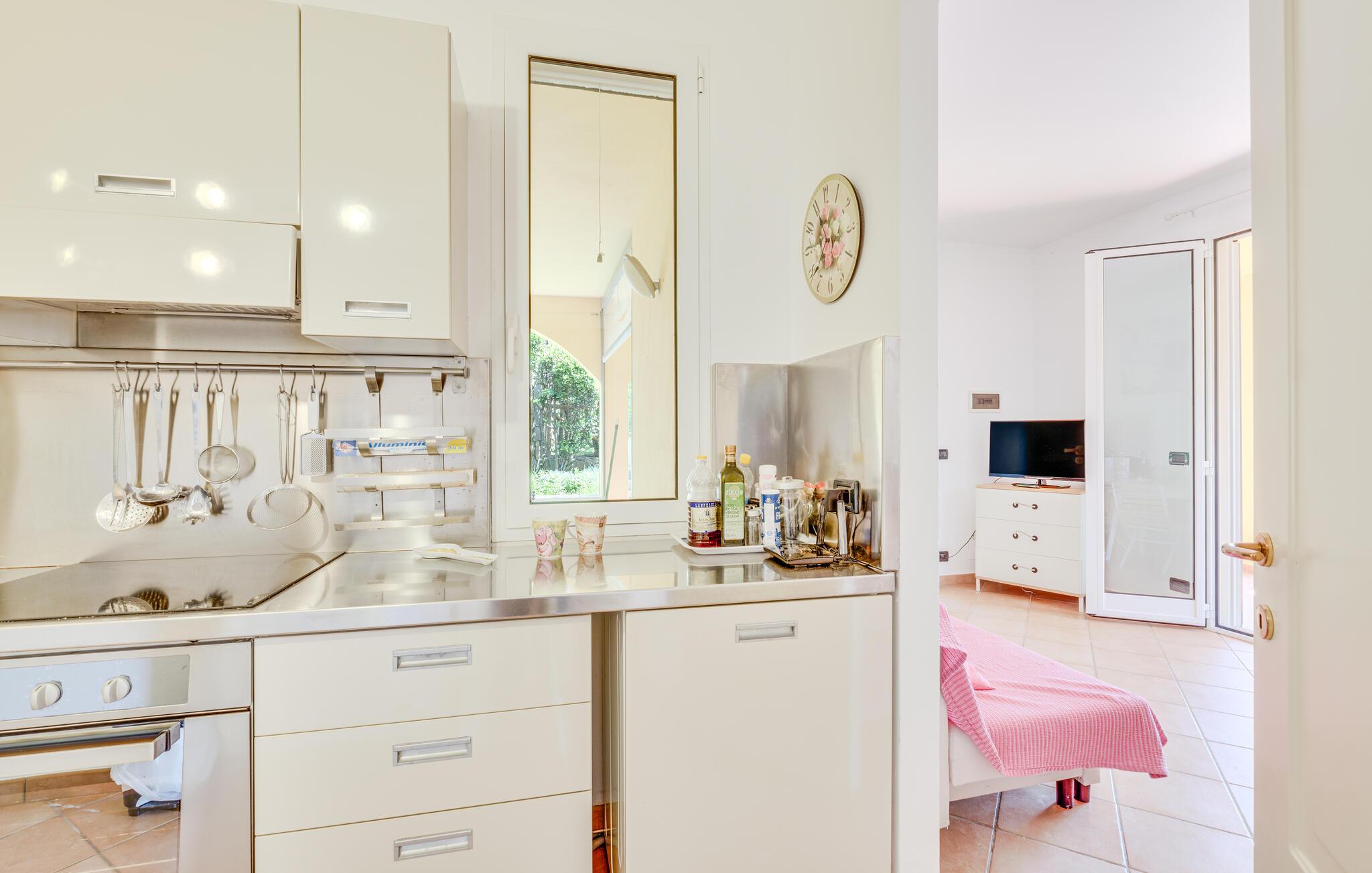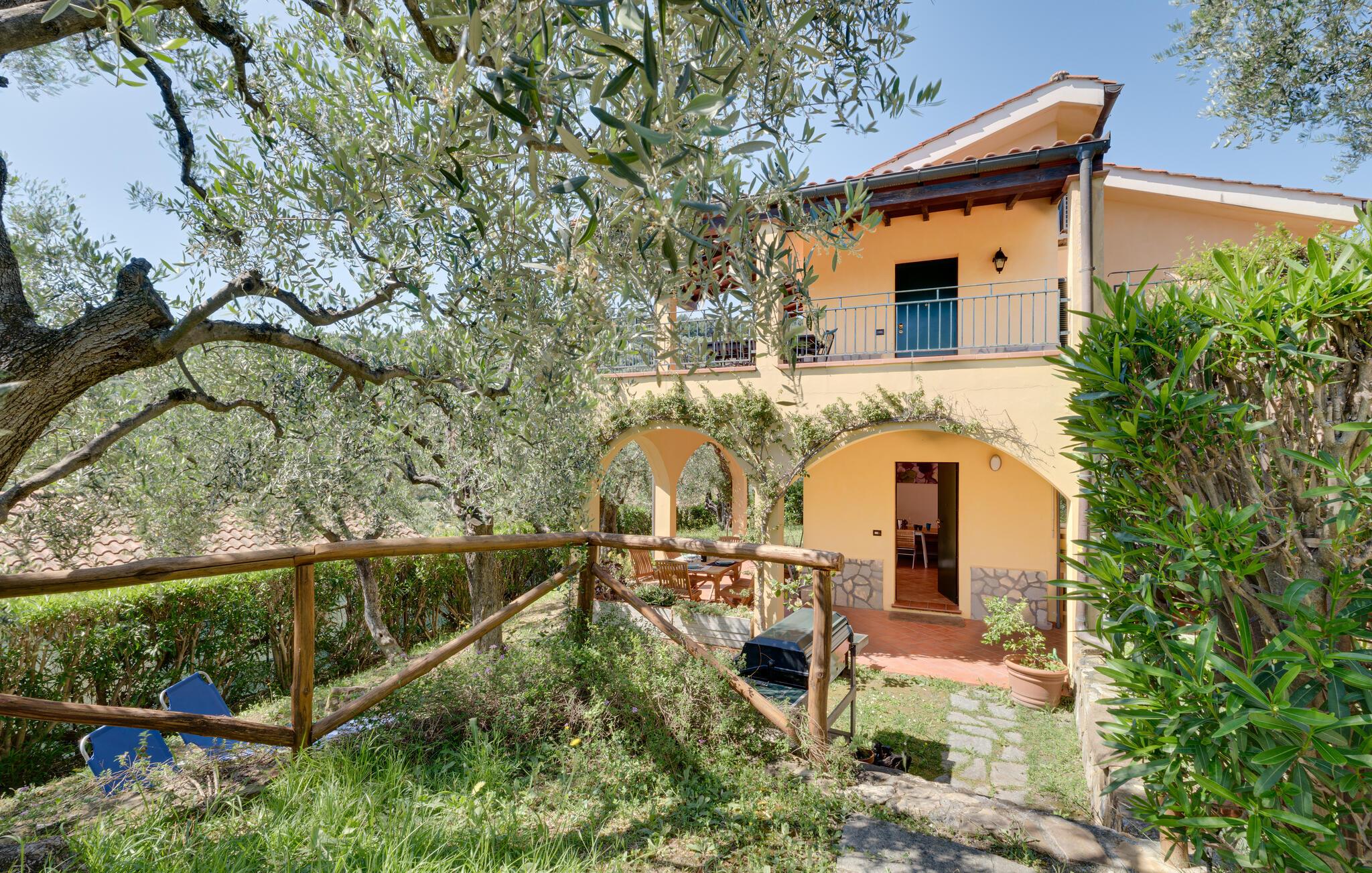 Willkommen in diesem einladenden Haus, das Sie in idyllischer Lage empfängt und sich besonders gut für einen erholsamen Urlaub mit Strandvergnügen eignet. Die hellen Räume mit ihrer funktionalen Einrichtung machen das Haus zur idealen Basis, um hier mit der Familie zu entspannen. Freuen Sie sich auf gemeinsames Kochen und nehmen Sie die Mahlzeiten auf der lauschigen Terrasse ein, hier können Sie an einem lauen Sommerabend den Tag mit kalten Getränken ausklingen lassen. Verbringen Sie herrliche Stunden im Freien, der Außenbereich bietet beste Möglichkeiten, den schönen Blick auf das Meer voll auszukosten.