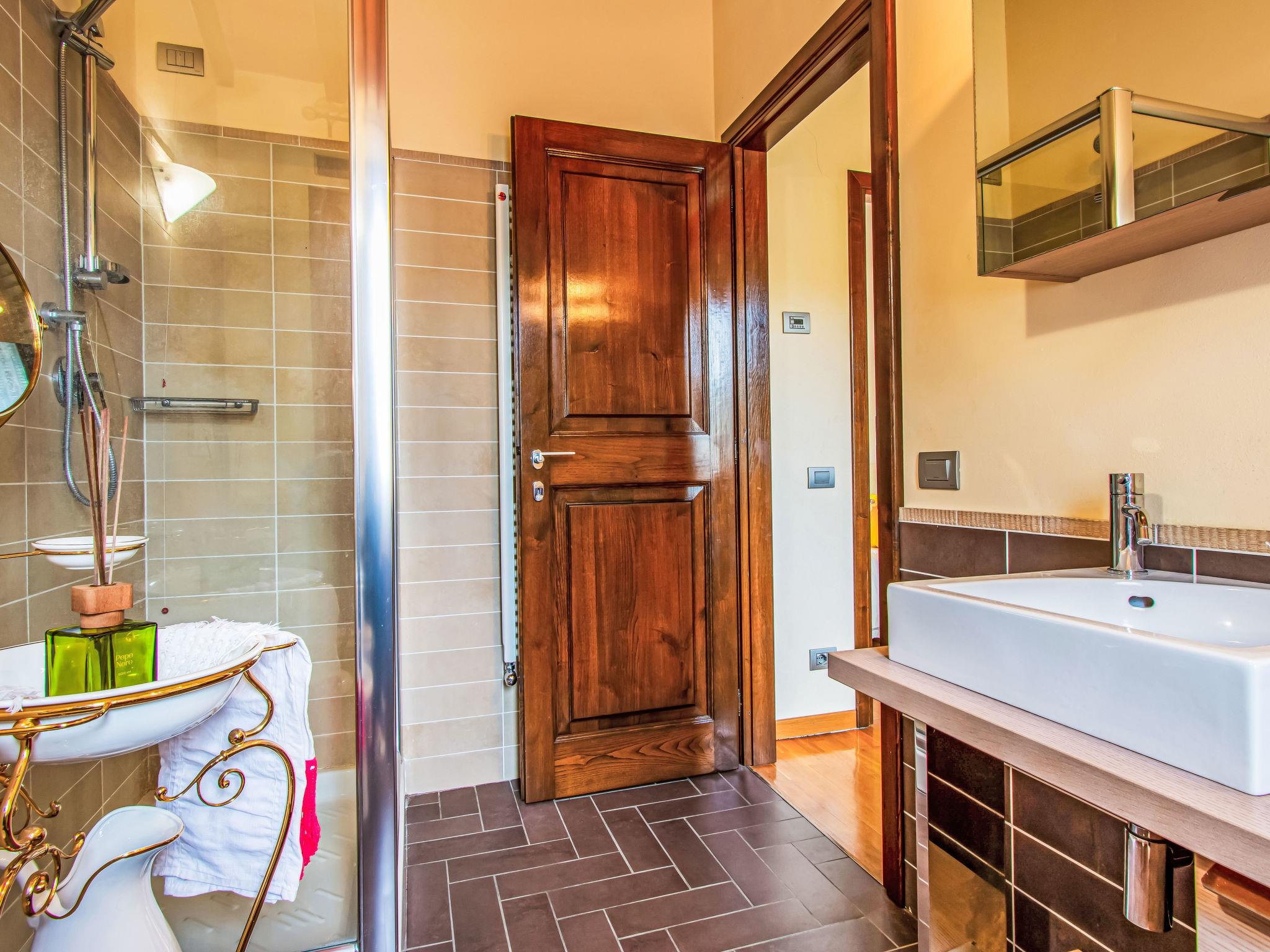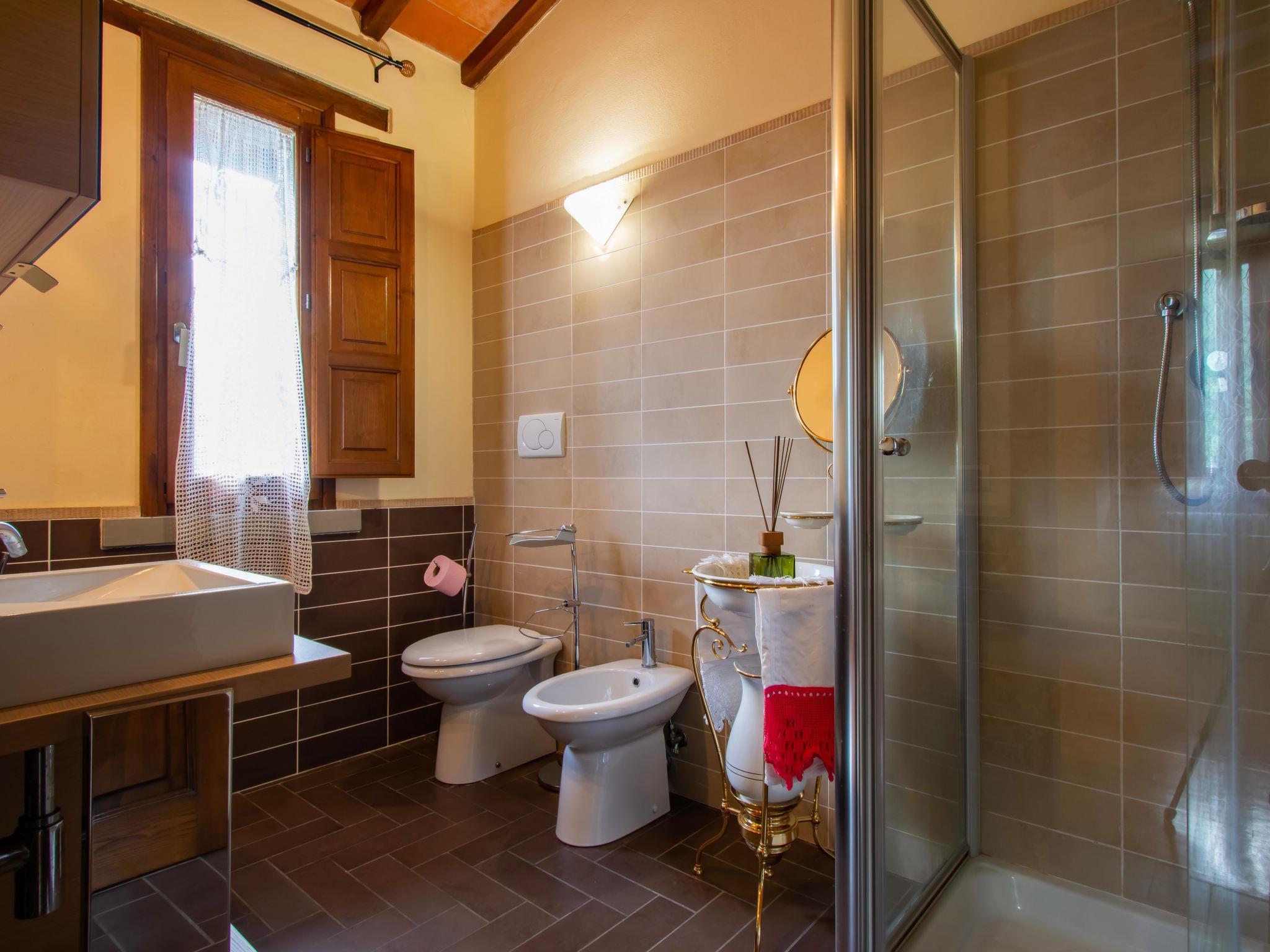 Gemütliches, freistehendes, komfortables Bauernhaus "La Ginepraia", 162 m.ü.M., auf 3 Stockwerken, Baujahr 2006, umgeben von Bäumen und Wiesen. Ausserhalb des Ortes, 500 m vom Zentrum von Dicomano, ruhige, sonnige Lage, im Grünen. Zur Alleinbenutzung: Grundstück 4 ha (eingezäunt), Pflanzen und Blumen, Naturgarten 500 m2 (eingezäunt), Schwimmbad (12 x 6 m, 140 - 140 cm tief, saisonale Verfügbarkeit: 01.Mai. - 30.Sep.) mit Meerwasser. Aussendusche, Sprudelbad, Gartenmöbel, Grill, Poolpflege durch den Besitzer/Gärtner. Im Hause: Fitnessraum. Parkplatz (für 6 Autos). Lebensmittelgeschäft 500 m, Supermarkt 1 km, Einkaufszentrum 2 km, Bar 500 m, Bushaltestelle 5 m, Bahnstation "Dicomano" 500 m, Badesee "Bilancino" 30 km. Nahe gelegene Sehenswürdigkeiten: Firenze 40 km, Volterra 110 km, Siena 100 km. Bitte beachten: Der Besitzer wohnt auf dem gleichen Grundstück.