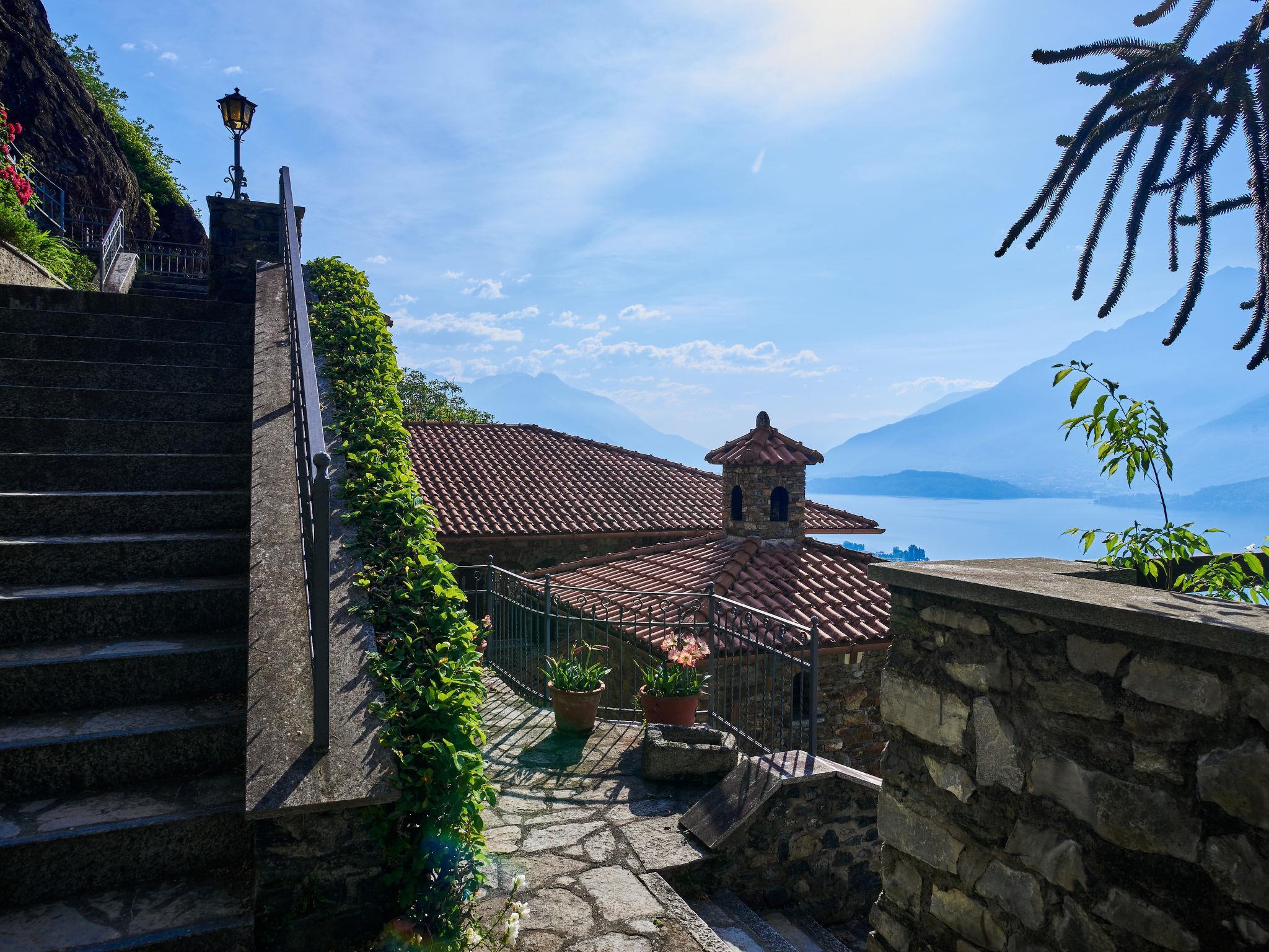 Grosses, rustikales Zweifamilienhaus "Villa Bellavista", 300 m.ü.M.. Oberhalb von Dongo, 2 km vom Zentrum von Dongo, 48 km vom Zentrum von Como, 40 km vom Zentrum von Lugano, alleinstehende Lage am Hang, 2 km vom See. Zur Mitbenutzung: Grundstück (eingezäunt), terrassierter Garten mit Pflanzen und Bäumen, Wiese. Treppenweg bis zum Haus. Supermarkt 1.5 km, Bushaltestelle 2 km, Bahnstation "Como" 48 km, Grasstrand 2 km, Freibad 6 km. Jacht-Hafen 2 km, Golfplatz (18 Loch) 20 km. Die Residenz wird durch elektrische Tore geschlossen.