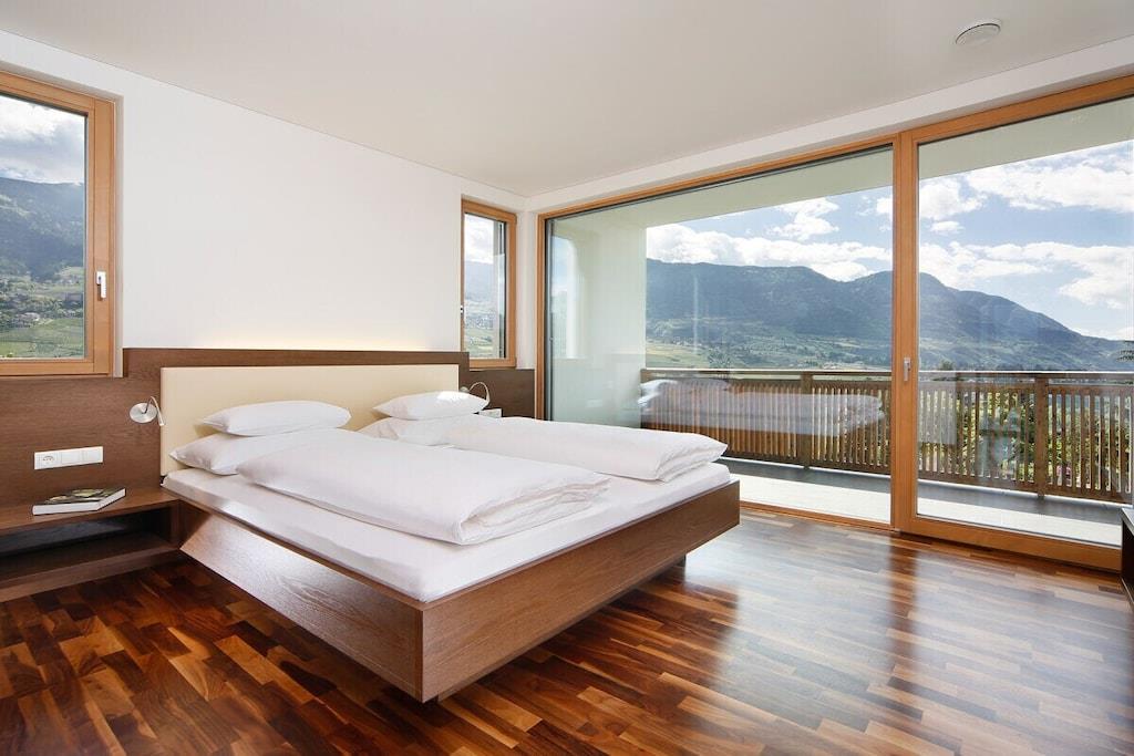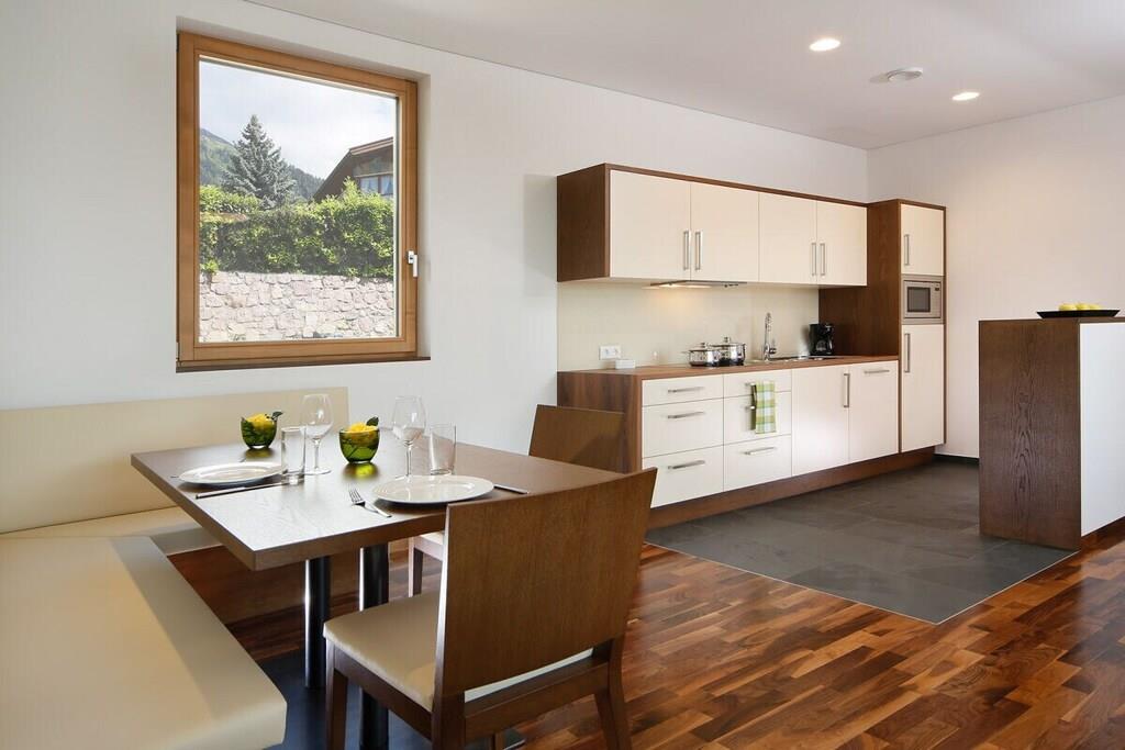 Die Ferienwohnung verfügt über 2 getrennte Doppelzimmer und über eine voll ausgestatte Küche. Das großzügige Badezimmer verfügt über eine Dusche, Badewanne, WC, Bidet, Föhn und Beautyspiegel. Ein Flat-TV, WLAN und Telefon befinden sich im großzügigen Wohnraum mit gemütlicher Sitzcouch. Ein Be- und Entlüftungssystem reguliert die Heizung und die Kühlung und sorgt für ein besonders behagliches Wohnklima. Eine beheizte Schwimmbadanlage mit Panoramalounge und 2 Etagen Liegewiese, sowie ein Sandtennisplatz ergänzen Ihr Wohlbefinden in unserem Resort. Fitnessraum und Saunabereich befinden sich im Haupthaus.