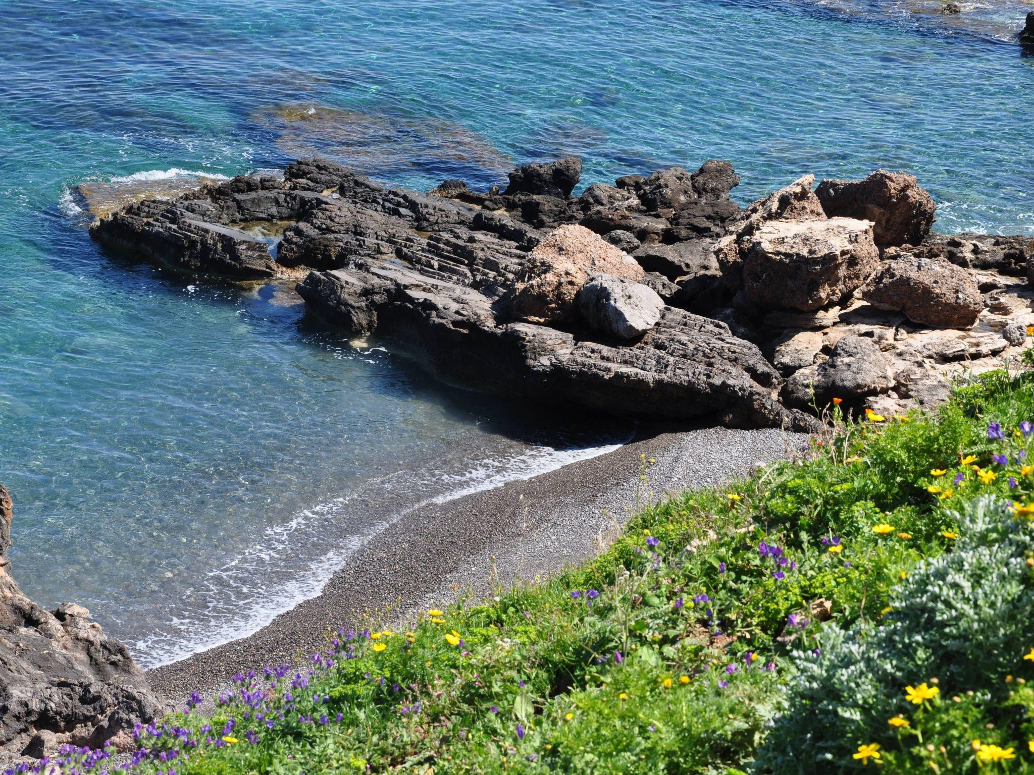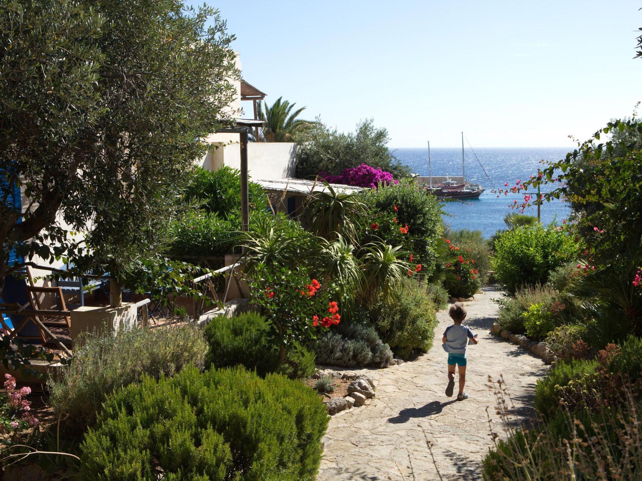 Der Strand ist ca. 100 m entfernt und kann über eine Treppe erreicht werden. Ein Holzsteg erleichtert den Zugang zum Meer. Das Dorf-/Stadtzentrum mit Restaurants und Supermärkten ist ca. 300 m entfernt. In der Nähe gibt es Wanderwege für Spaziergänge entlang der Küste oder in den Bergen sowie Boots- und Eselausflüge.