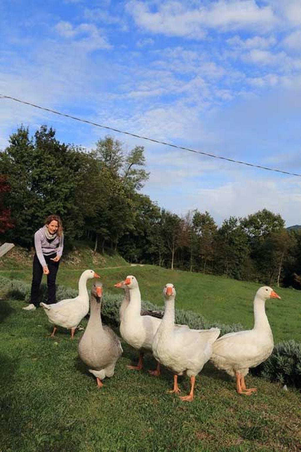 Große Terrasse mit Pavillon, Sonnenliegen, Grill und Spielen für die Kleinen. Wir wohnen in einem Ferienhaus mit großem Garten und möchten diesen Raum auch mit unseren tierischen Freunden teilen. Bei einem Spaziergang durch den Garten können Sie süße Enten, Gänse und andere Hoftiere treffen, die unseren Teich beleben, Sie können auch saisonale Früchte von den Bäumen in unserem Park pflücken, Sie können unsere fleißigen Bienenfreunde bewundern, die köstlichen Honig produzieren.