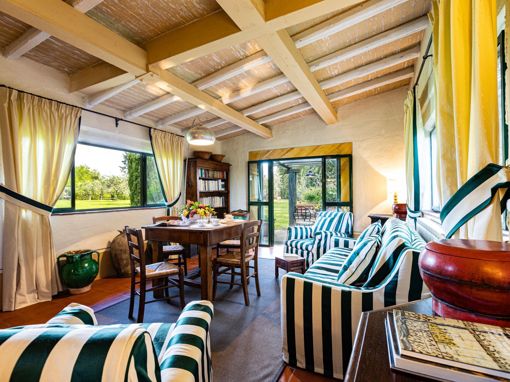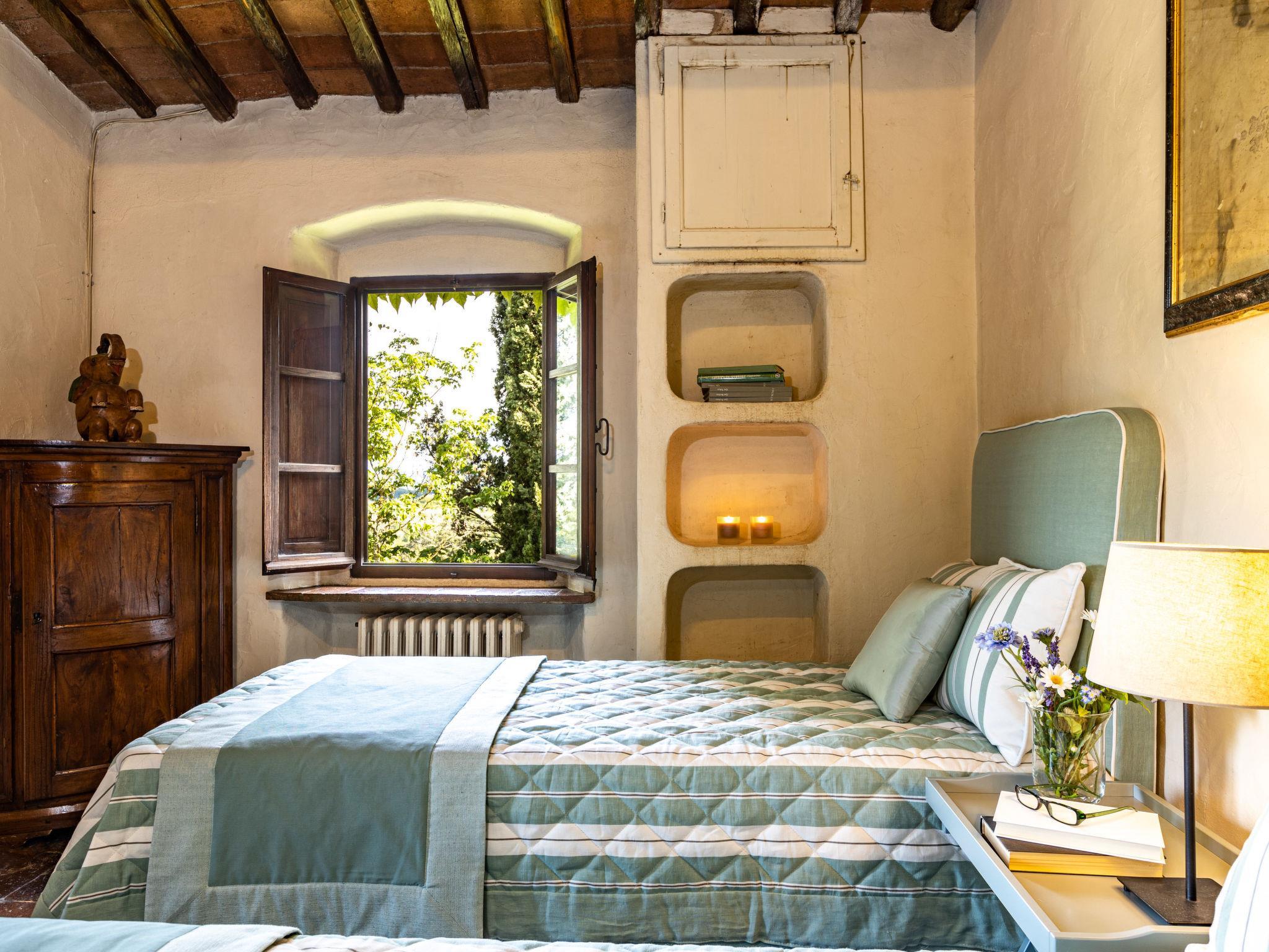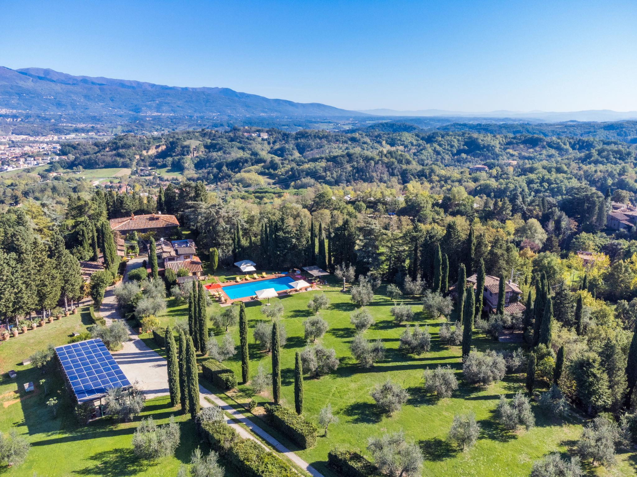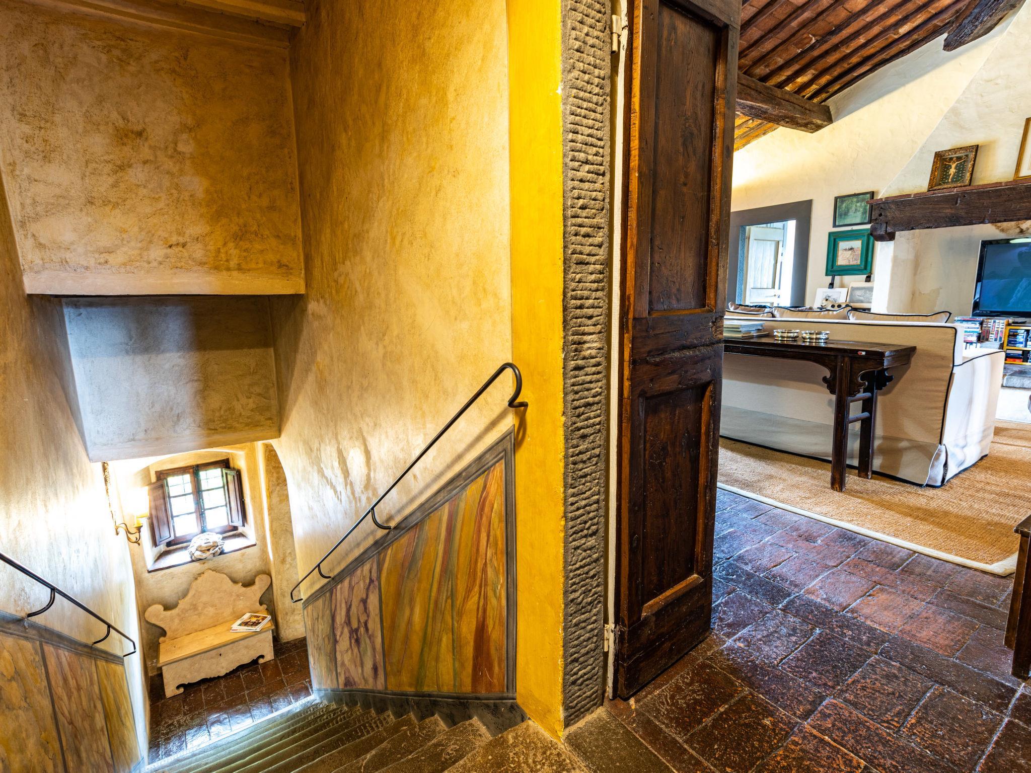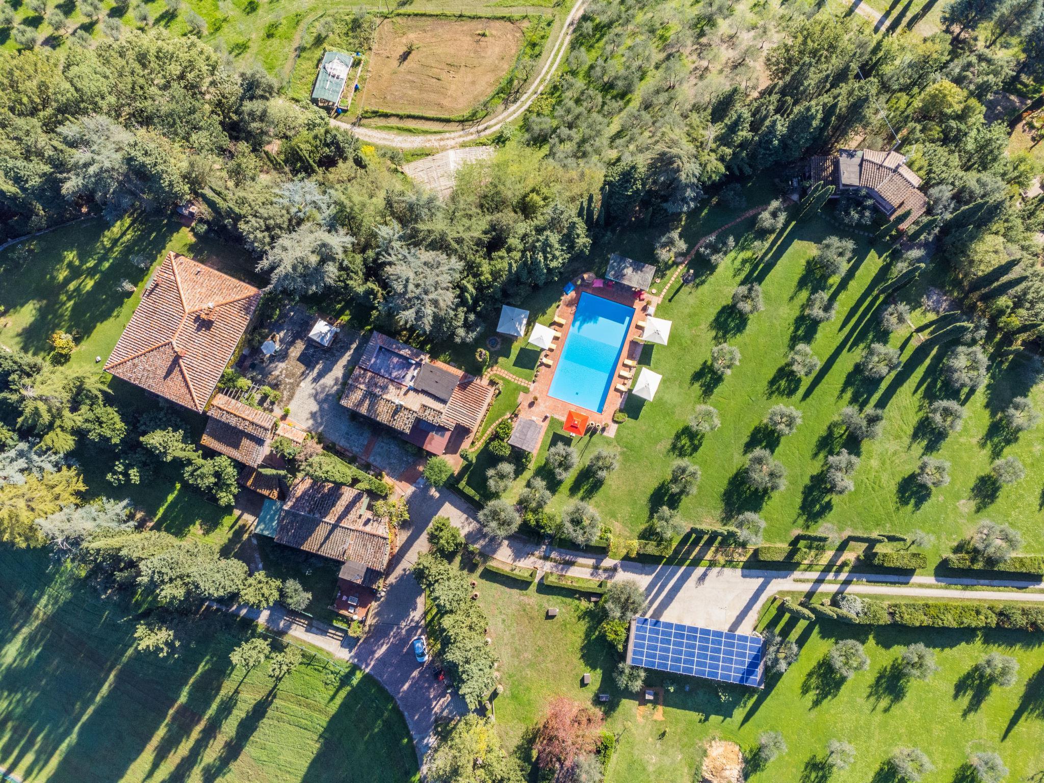 La Torre besteht aus 3 Villen, jede mit grosszügig ausgestatteter Küche, die nur zusammen gebucht werden können. Sehr schöne, komfortable Villa "La Torre", aus dem 12. Jahrhundert, umgeben von Bäumen und Weinbergen. 3 Häuser in der Residenz. Mietobjekt bestehend aus Haupt- und Nebengebäude, 4 km vom Zentrum von Figline Valdarno, 7 km vom Zentrum von Incisa Valdarno, 35 km vom Zentrum von FIrenze, alleinstehende, sonnige Lage im Villenviertel, im Grünen. Zur Alleinbenutzung: Park (eingezäunt), grosser, gepflegter Garten 5 ha mit Rasen und Blumen, Naturteich, Schwimmbad (9 x 18 m, 120 - 240 cm tief, saisonale Verfügbarkeit: 01.Apr. - 31.Okt.). Aussendusche, Sitzplatz, Laube, Pergola, Terrasse, Gartenmöbel, Grill, Poolpflege durch den Besitzer/Gärtner. Im Hause: Sprudelbad (alles inkl.), Billard, Fahrradverleih. Wäschewechsel 1 mal wöchentlich. Handtuchwechsel 1 mal wöchentlich. Wohnungsreinigung 2 mal wöchentlich (inkl.). Haushaltshilfe möglich (extra). Frühstück und Halbpension möglich (extra). Einkaufsservice vor Anreise möglich. Abstellraum vorhanden. Abholservice vom Flughafen. Parkplatz (für 10 Autos, überdacht) auf dem Grundstück. E-Ladestation. Einkaufsgeschäft 3 km, Lebensmittelgeschäft 3 km, Supermarkt 3 km, Restaurant 3 km, Bäckerei 3 km, Fahrradverleih 4 km, Bushaltestelle 300 m, Bahnstation "incisa Valdarno" 7 km. Golfplatz (18 Loch) 23 km, Tennis 4 km, Tennishalle 4 km, Reitstall 4 km, Wanderwege ab Haus 100 m. Nahe gelegene Sehenswürdigkeiten: Greve in Chianti 17 km, Arezzo 50 km, San Gimignano 62 km, Siena 65 km. Bitte beachten: Babyausstattung (inkl.). Jugendgruppen nur auf Anfrage. Geeignet für Events. Es kann auf Anfrage ein Transfer ab Flughafen zum Ferienobjekt organisiert werden. Die Residenz wird durch elektrische Tore geschlossen. Der Besitzer wohnt auf dem gleichen Grundstück. Eigentümer hat einen Hund. Alle Häuser/Wohnungen sind individuell eingerichtet.
