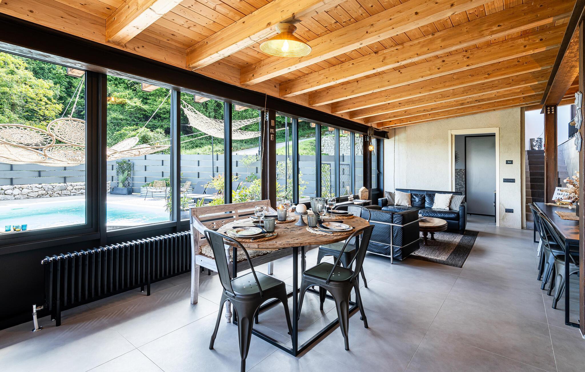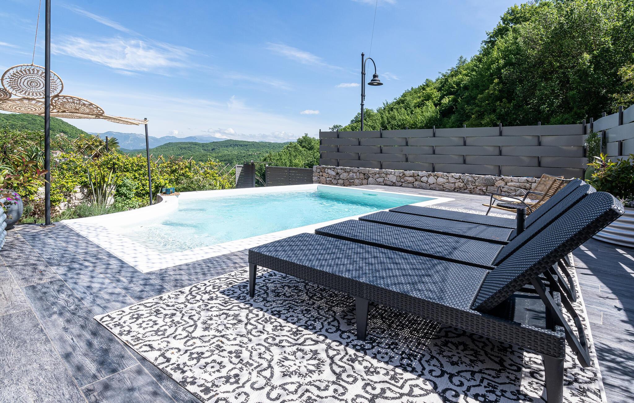 Schönes Ferienhaus mit privatem Pool und Blick auf die Berge.