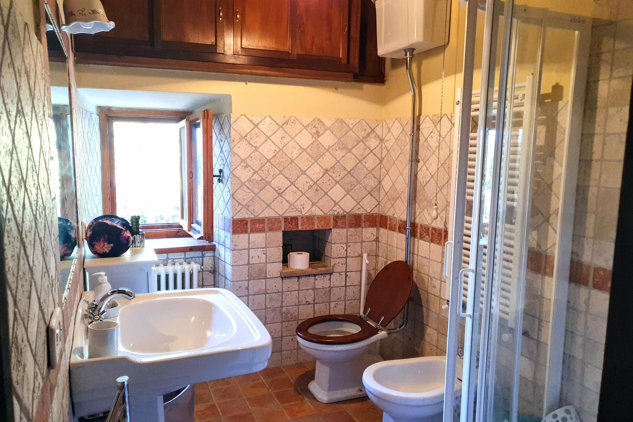 Willkommen in einem charmanten Apartment im malerischen mittelalterlichen Dorf Firenzuola. Umgeben von üppigem Grün und mit atemberaubender Aussicht auf die sanften Hügel ist dieser ruhige Rückzugsort nur eine kurze Autofahrt von Spoleto (ca. 16 Minuten) entfernt, während lokale Supermärkte und Restaurants nur wenige Minuten entfernt sind. Die Gegend ist perfekt für diejenigen, die Entspannung suchen, und lädt Sie ein, den nahe gelegenen Arezzosee zu erkunden und ruhige Spaziergänge im Wald zu unternehmen. Dieses luftige, charakteristische Apartment erstreckt sich über zwei Ebenen und verfügt über ein geräumiges Erdgeschoss, das einen gemütlichen Wohnbereich nahtlos mit einer gut ausgestatteten Küchenzeile mit Kühlschrank, Waschmaschine und einladendem Kamin verbindet. Große Türen führen zu einer weitläufigen Terrasse, auf der Sie Ihren Morgenkaffee oder die abendlichen Sonnenuntergänge genießen können. Im Obergeschoss finden Sie ein komfortables Schlafzimmer mit Doppelbett, ein vielseitig nutzbares kleines Zimmer, das sich ideal als zusätzliches Schlafzimmer oder Arbeitszimmer eignet, und ein modernes Badezimmer mit Dusche. Ausgestattet mit WLAN für die Fernarbeit und allen wichtigen Annehmlichkeiten bietet dieses unabhängige Zuhause eine ruhige Umgebung für Urlauber und Geschäftsreisende. Mit einem bequemen Eingang und freundlichen Nachbarn, die Ihnen bei Bedarf gerne behilflich sind, ist Casa Borgo Francesca Ihr idealer Ausgangspunkt, um die Schönheit dieser bezaubernden Region zu erkunden. Genießen Sie die perfekte Mischung aus Komfort und Natur in einer Umgebung, die sich wie ein verstecktes Juwel anfühlt.