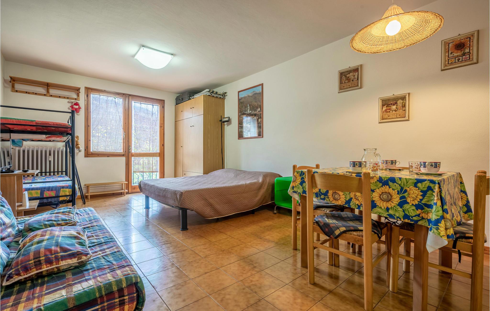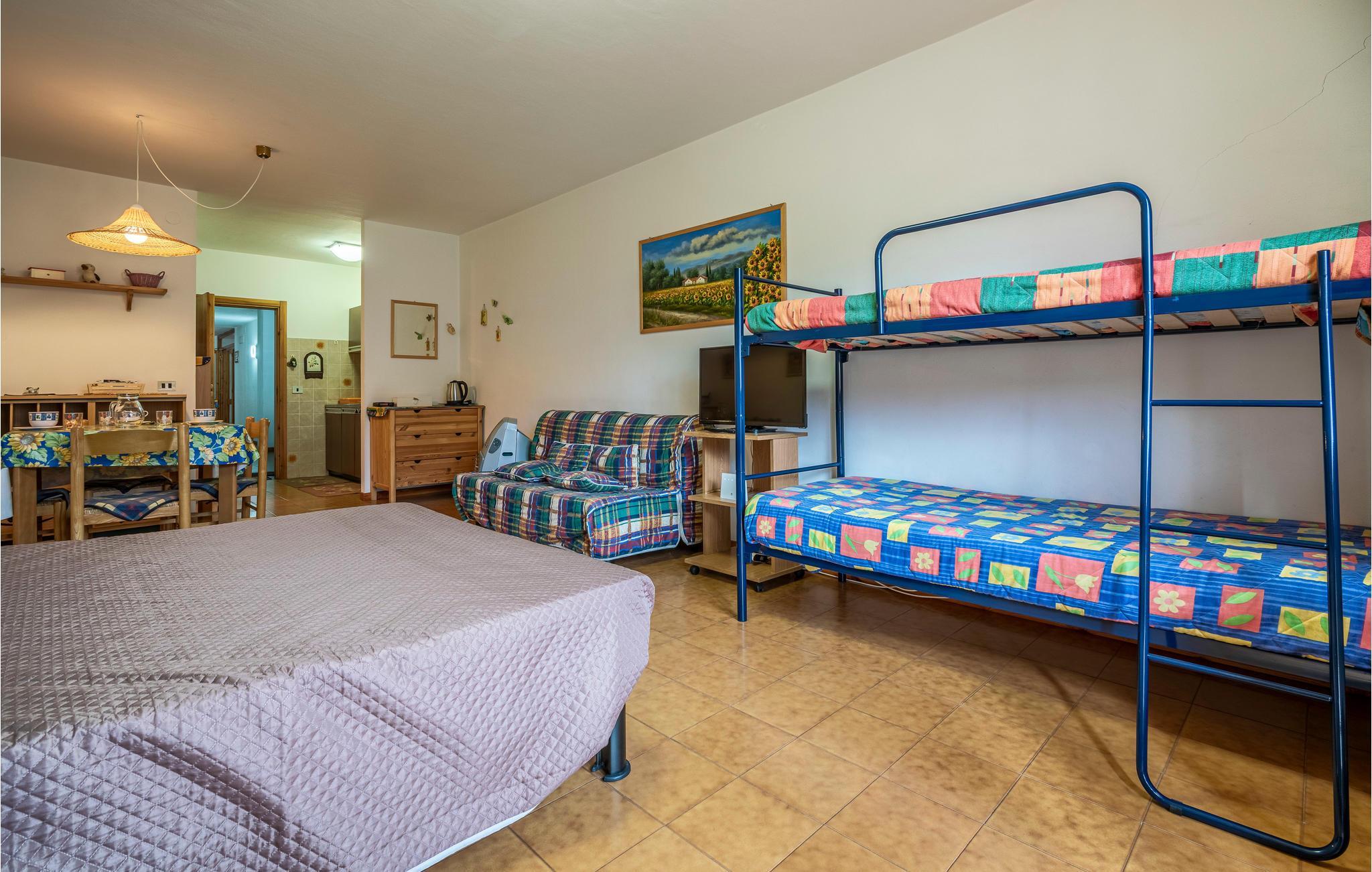 Wohnraum/Küche - 2 Schlafmöglichkeiten. (Doppelbett(en)). 2 Schlafmöglichkeiten. (Etagenbett).