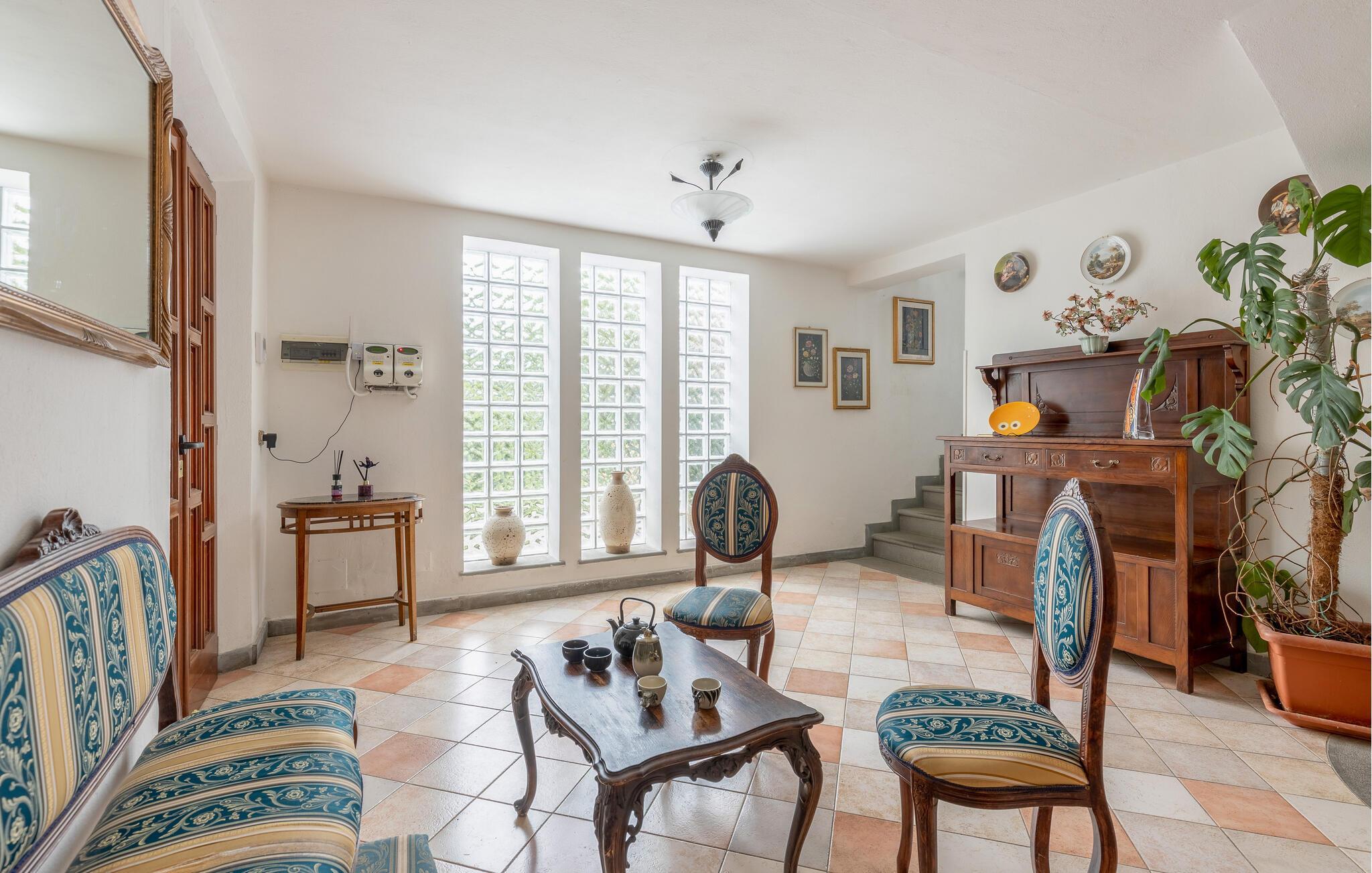 Kommen Sie an und genießen Ihren Aufenthalt in dem Haus, das durch seine traditionelle Einrichtung und gemütliche Atmosphäre besticht. Auf zwei Stockwerken bietet es Ihnen viel Platz für die ganze Familie. Der Kamin im Wohnzimmer sorgt für behagliche Abende und lädt Sie ein auf dem Sofa zu entspannen.