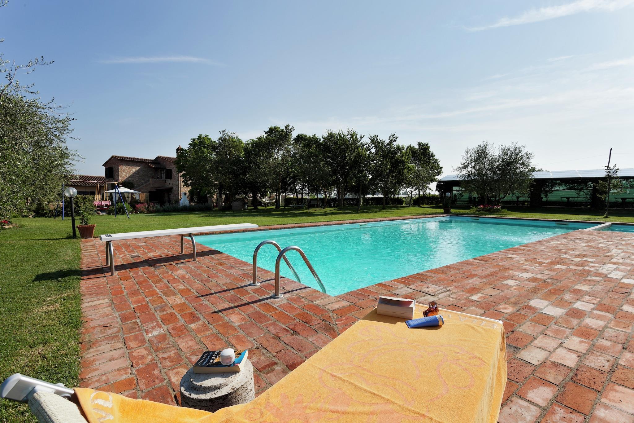 Der Agriturismo befindet sich in einer absolut ruhigen Lage in den Hügeln der Toskana, von wo aus man in kurzer Zeit einige der wichtigsten touristischen Ziele erreichen kann wie Arezzo, Siena, Perugia, Cortona, Pienza, Montepulciano, Florenz, Castiglione del Lago (wo man unbedingt die nicht allzu bekannte, aber sehr suggestive Isola Maggiore besichtigen sollte) – zudem das Meer der Tyrrhenischen Küste, das man in etwa anderthalb Auto-Stunden erreichen kann. Wer shoppen möchte, dem sei das nur 6km entfernte Outlet „Valdichiana Otlet Village“ mit über 80 Geschäften empfohlen, während das Outlet „The Mall“ und Space“ etwa 40 km entfernt ist. Jeden Montagvormittag findet im typischen Städtchen Foiano della Chiana in den Straßen des Zentrum der Markt statt, wo man neben vielerlei Einkäufen auch typische Produkte probieren kann, um danach das Museum und die Kirchen besichtigen kann, in deren Inneren sich Skulpturen der Familie DELLA ROBBIA befinden. Während der Urlaubswoche bietet der Agriturismo seinen Gästen gerne Kuchen und Pizza an, welche beide aus Mehl gemacht wurden, die aus Körnern alter Getreidearten direkt auf dem Hof hergestellt wurde (evtl. auch vor Ort zu erstehen). Für jede Nachfrage wird der Besitzer stets zu Ihrer Verfügung sein.