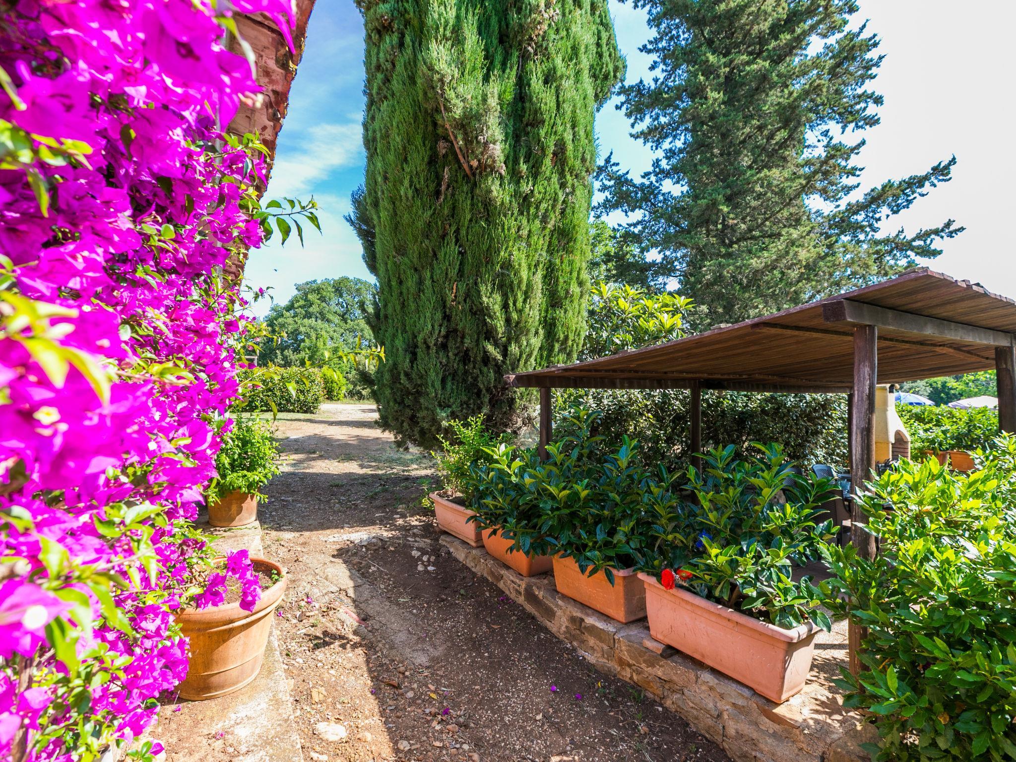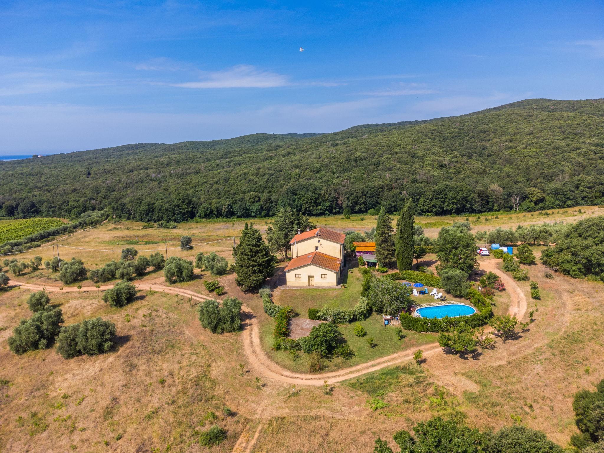 Bauerngut "Campo Fiorito", umgeben von Bäumen und Feldern. 3 Wohnungen im Ferienhaus. 7.5 km vom Zentrum von Follonica, auf einem Hügel, 5 km vom Meer, im Grünen. Zur Mitbenutzung: naturbelassenes Grundstück 6 ha (eingezäunt), terrassierter Garten Pflanzen und Blumen, Liegewiese, Aufstellpool (10 x 5 m, 130 cm tief, saisonale Verfügbarkeit: 01.Jun. - 30.Sep.). Aussendusche, Laube, Terrasse, Poolpflege durch den Besitzer/Gärtner. Holprige Zufahrt (1.9 km Naturweg). Parkplatz auf dem Grundstück. Einkaufsgeschäft 5 km, Restaurant 5 km, Bar 5 km, Bahnstation "Follonica" 8 km, Fähre "Piombino" 36 km, Sandstrand 5 km, See Accesa 13 km. Jacht-Hafen 10 km, Golfplatz (18 Loch) 13 km, Wanderwege ab Haus 50 m. Nahe gelegene Sehenswürdigkeiten: Massa Marittima 15 km, Grosseto 50 km. Wandergebiete: Parco Naturale di Montioni 50 m. Der Besitzer akzeptiert keine Jugendgruppen.