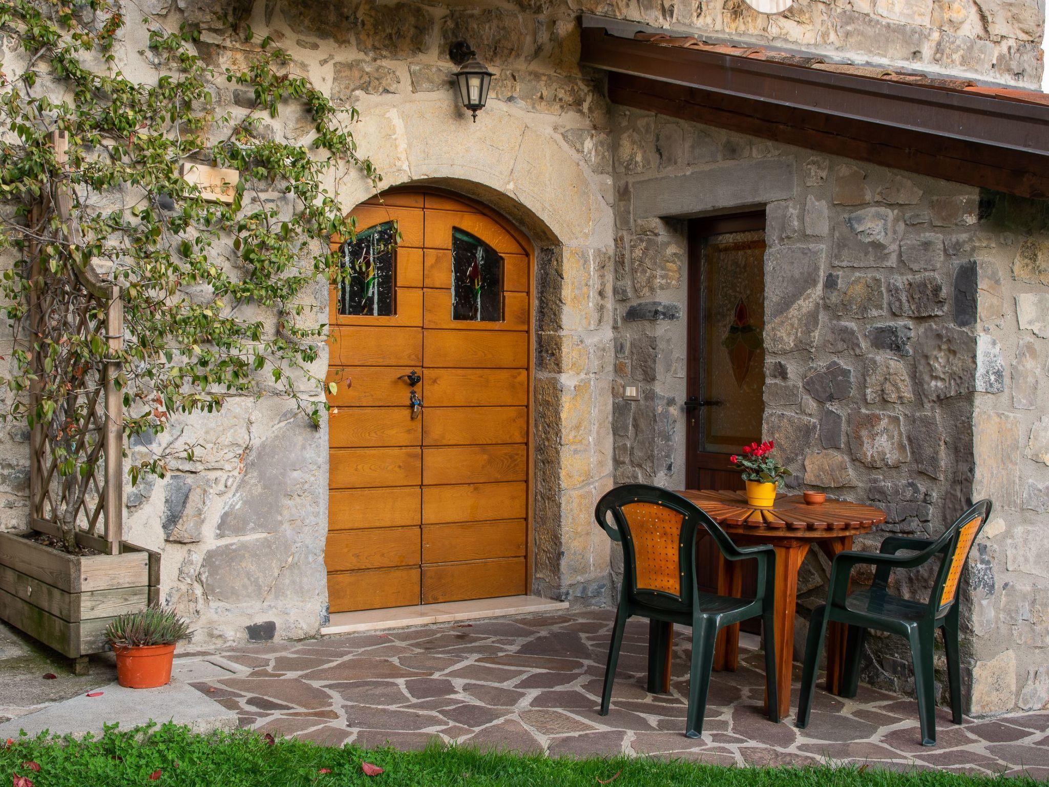 Der Zugang erfolgt über den Innenhof und den Gemeinschaftsgarten, wo Stühle, Tische und Liegestühle sowie ein Grill zur Verfügung stehen.