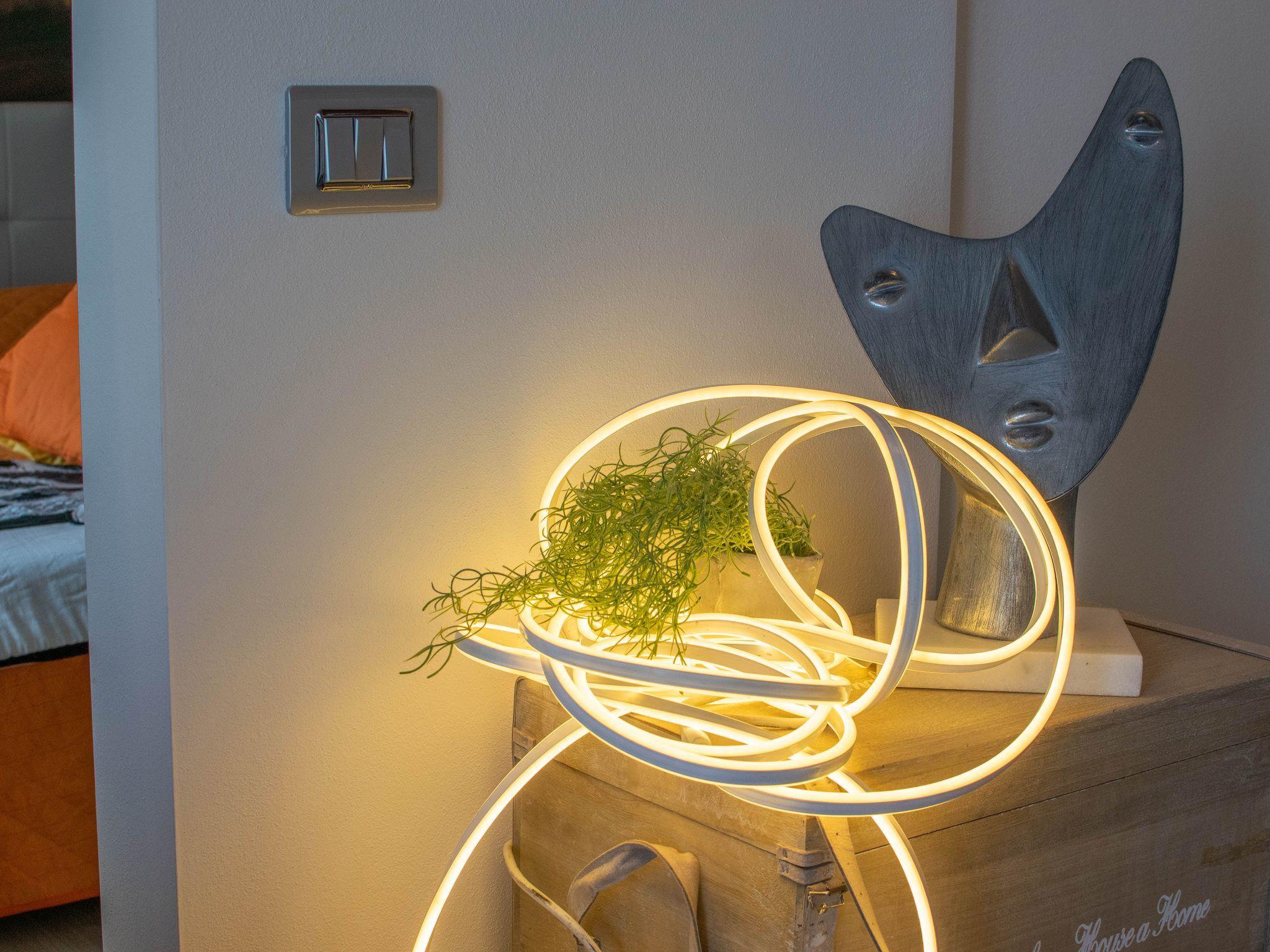 Urlaub machen heißt, sich mit Emotionen zu bereichern: Der Seeblick der neuen 2-Zimmer-Wohnung in Villetta sorgt für maximales Wohlbefinden und die Möglichkeit, 180° über die umliegende Landschaft zu schweifen. Der ausgestattete Balkon, der vom Schlafzimmer mit Doppelbett und vom Wohnzimmer aus zugänglich ist, lässt Platz für eine große Panoramaterrasse, die für endlose Momente der Entspannung und Geselligkeit genutzt werden kann.