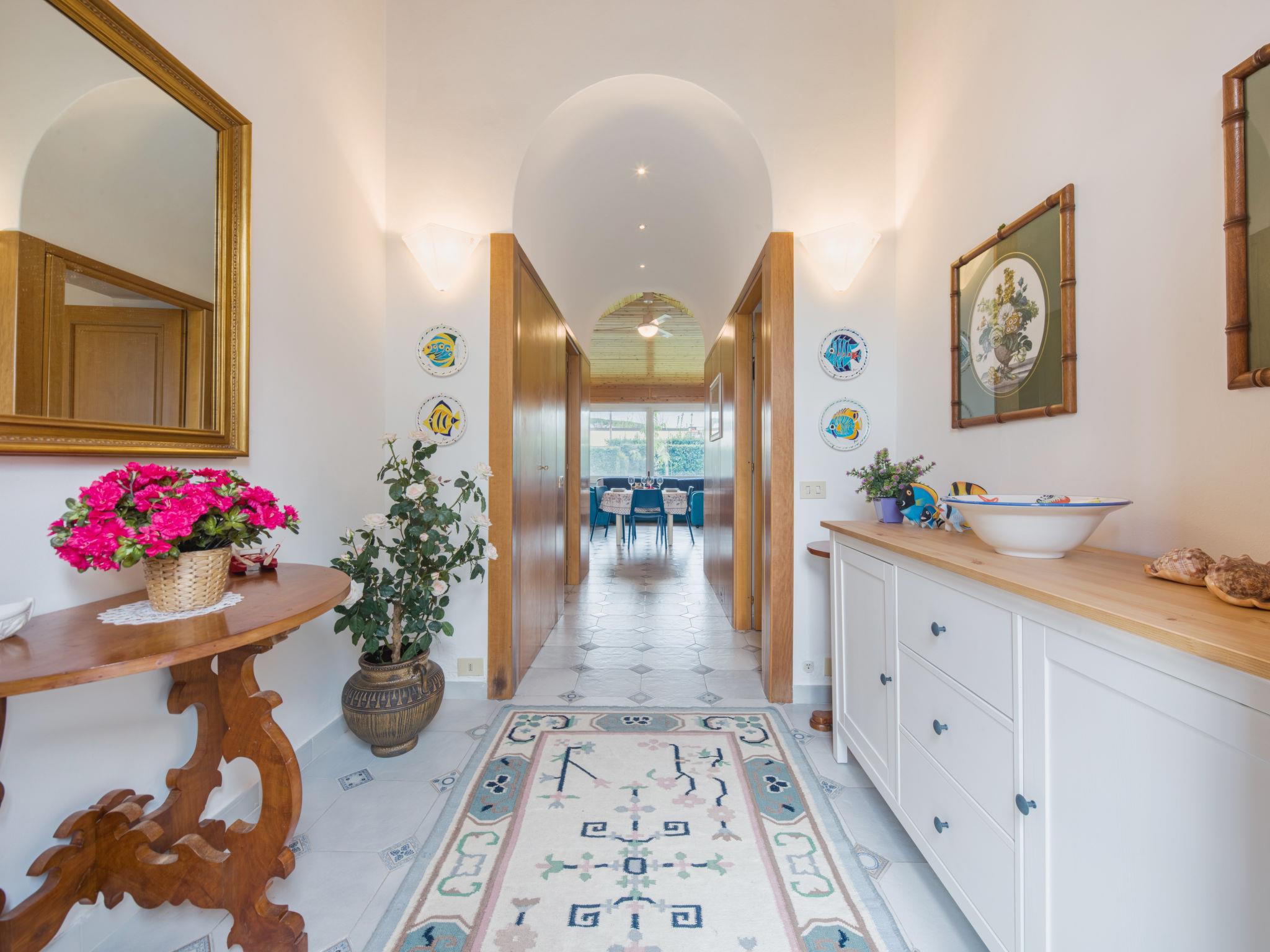"Carlotta", 4-Zimmer-Haus 100 m2, im Erdgeschoss. Geräumig und hell, komfortabel und geschmackvoll eingerichtet: grosser Eingang. Grosses Wohn-/Esszimmer mit Esstisch und TV (Flachbildschirm), Ventilator. Ausgang zum Garten, zur Veranda. 1 grosses Doppelzimmer mit Klimaanlage. 1 kleines Zimmer mit 1 x 2 Etagenbetten. 1 Doppelzimmer mit Klimaanlage. Kleine Küche (4 Kochplatten, Mini-Backofen, Geschirrspüler, Toaster, Mikrowelle, Tiefkühler). Ausgang zum Garten. 2 Duschen/Bidet/WC, sep. WC. G-Heizung. Heizung nur verfügbar von 01.11. bis 07.04. Grosser Garten 100 m2. Gartengrill (mobil), Liegestühle, Sitzplatz. Sicht auf den Garten. Zur Verfügung: Waschmaschine, Safe, Bügeleisen, Fliegengitter, Babybett bis 2 Jahre, Haartrockner. Internet (Wireless LAN, gratis). Parkplatz (1 Auto) beim Haus. IT046013C269FAX65M