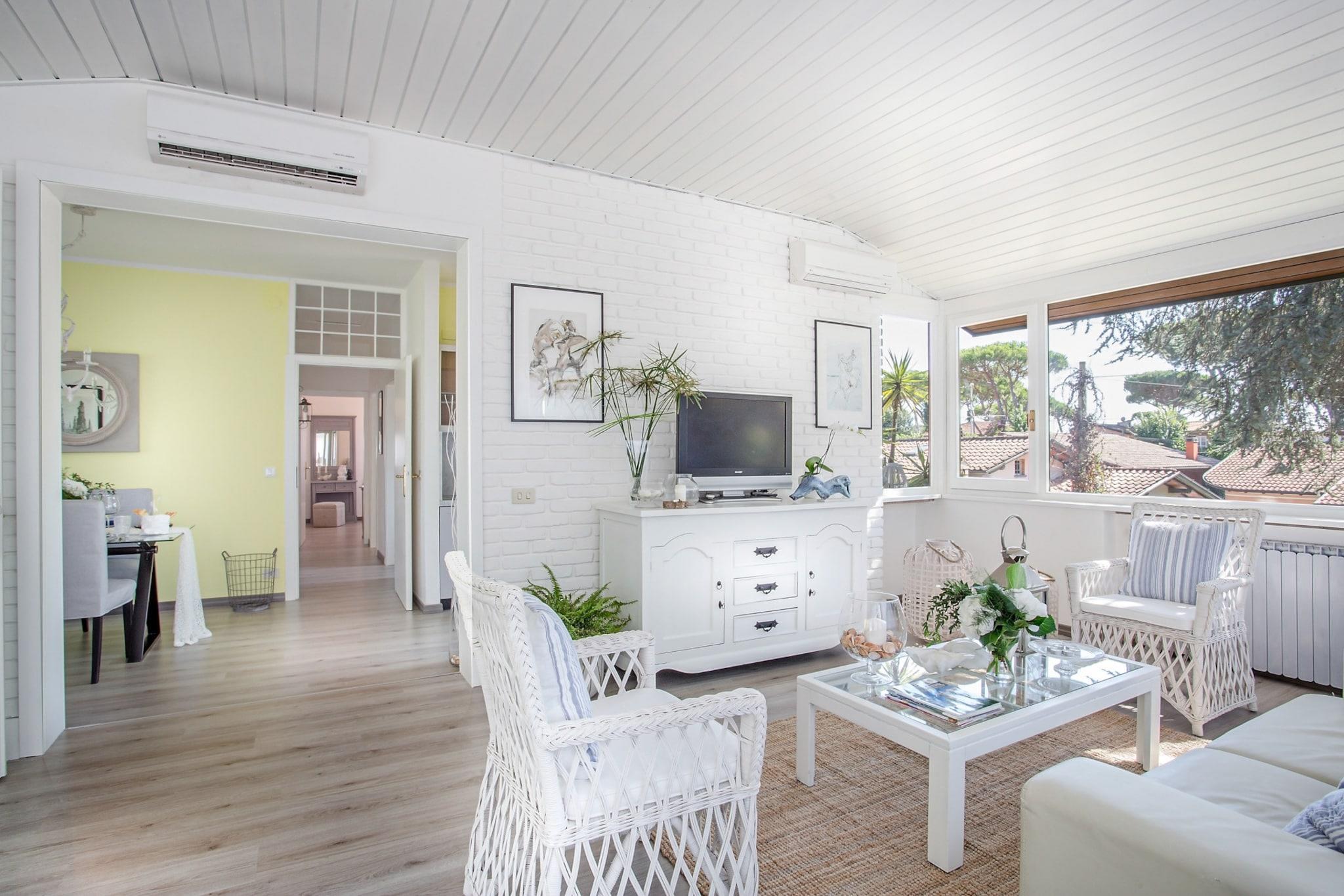 Willkommen in der Villa Marygrace, dem Obergeschoss einer charmanten Villa in Forte dei Marmi, nur 2 Gehminuten vom Strand entfernt. Dieses einladende Apartment verfügt über einen separaten Eingang und sorgt so für einen ruhigen Urlaub. Die freundliche Eigentümerin Maria Grazia wohnt im Untergeschoss und trägt zur warmen und einladenden Atmosphäre der Villa bei. Gäste genießen den Komfort eines privaten, eingezäunten Parkplatzes sowie Zugang zu einem schönen Garten mit Grill, Tisch, Stühlen und bequemen Sofas zur exklusiven Nutzung. Das Wohnzimmer ist ein gemütlicher Rückzugsort mit einem Fernseher mit Sky-Kanälen (einschließlich englischer Filme) und kostenlosem WLAN für Ihre Unterhaltung. Die voll ausgestattete Küche erleichtert die Zubereitung von Mahlzeiten, und die geräumige Terrasse lädt dazu ein, die Meeresbrise zu genießen. Bitte beachten Sie, dass die Klimaanlage nur im Wohnzimmer vorhanden ist, um an warmen Sommertagen für ein angenehmes Klima zu sorgen. Die Villa Marygrace liegt nur 300 Meter vom Strand entfernt und bietet die perfekte Mischung aus Ruhe und Erreichbarkeit. Sie befinden sich außerdem in der Nähe des gehobenen Einkaufsviertels von Forte dei Marmi, wo Sie Boutiquen erkunden und gehobene Küche genießen können. Erleben Sie den ultimativen Küstenurlaub in der Villa Marygrace, wo Komfort und Lage für einen unvergesslichen Aufenthalt vereinen. Hinweis: Kurtaxe ist zu entrichten vor Ort die Immobilie.