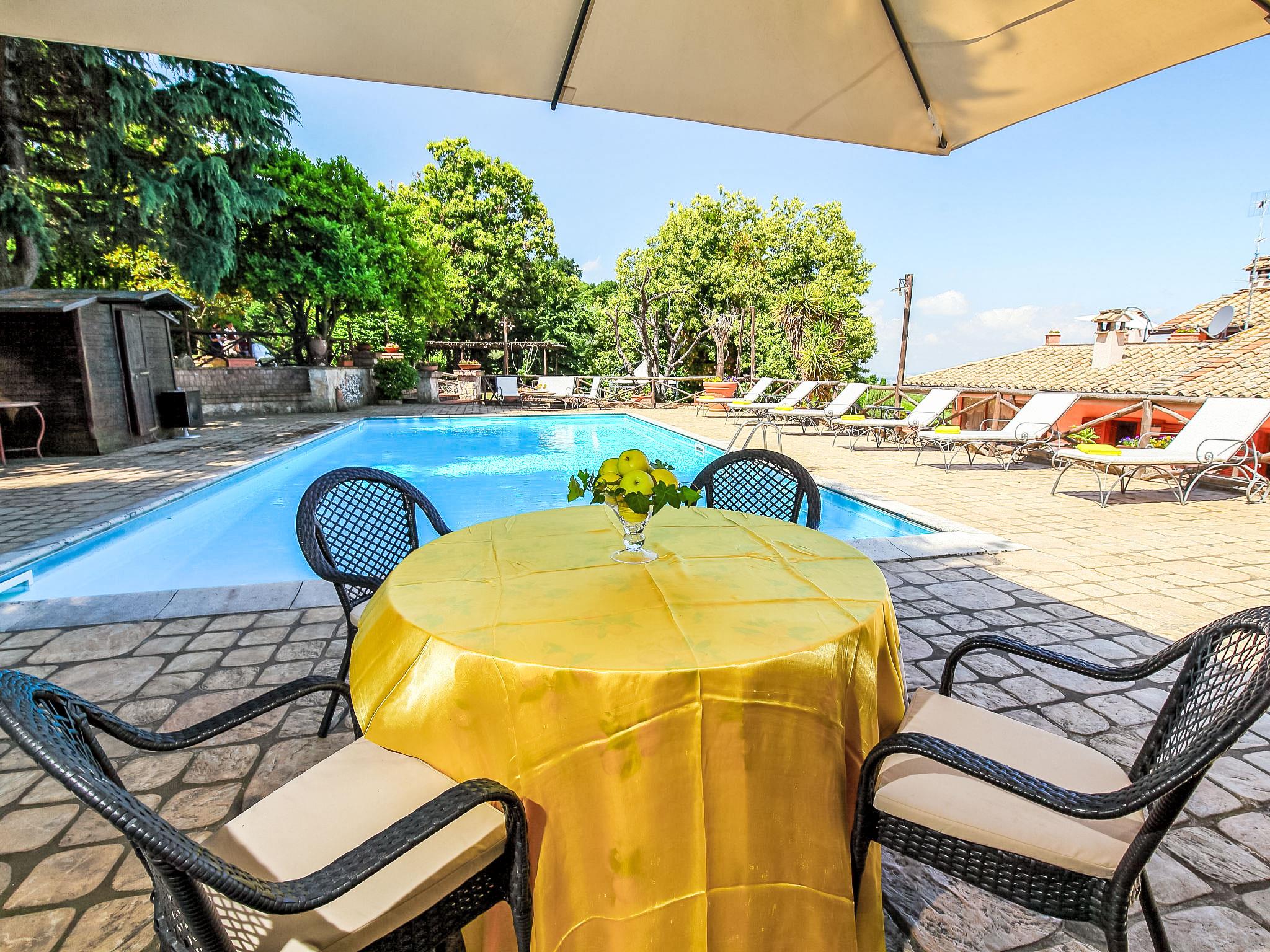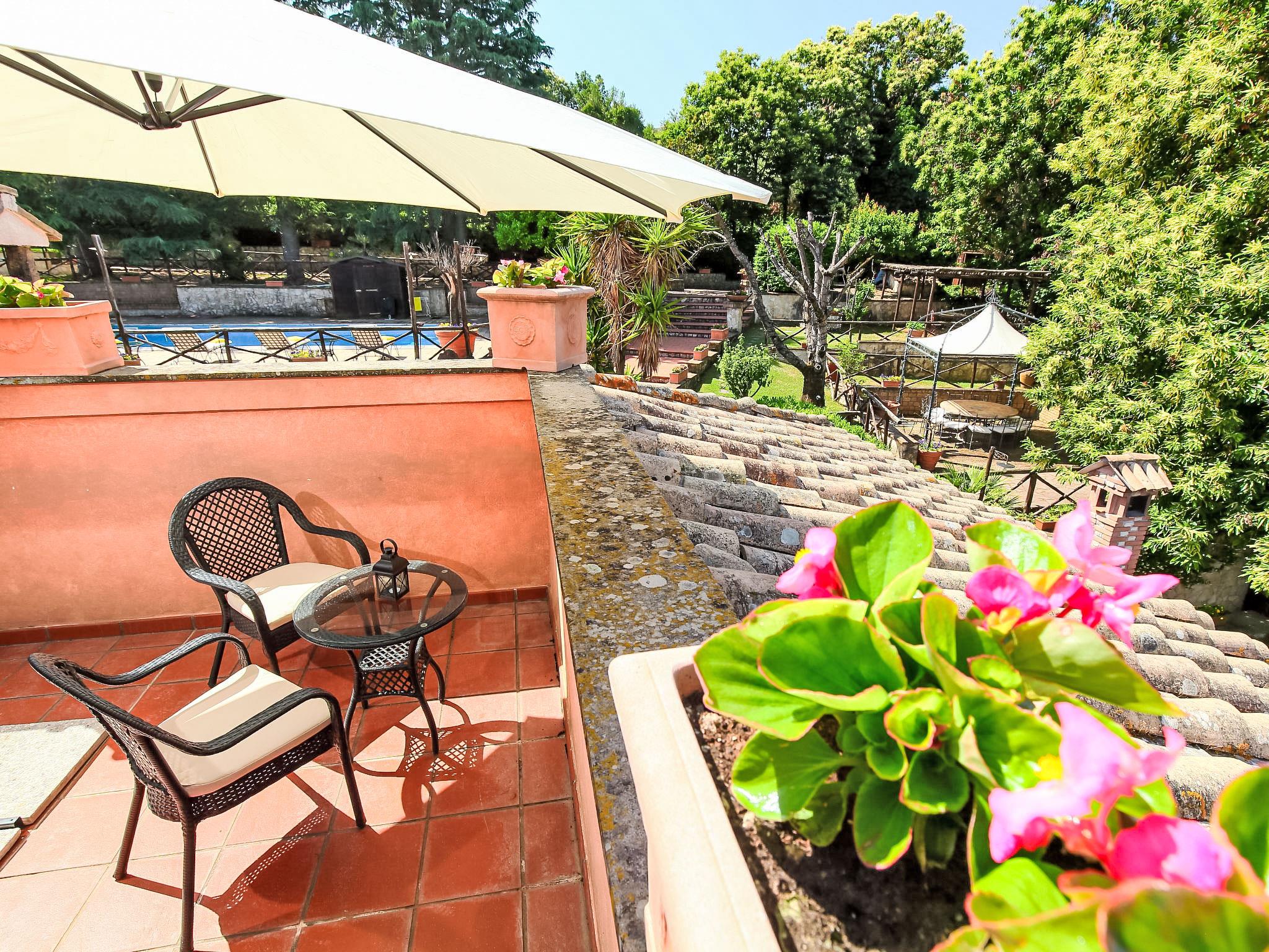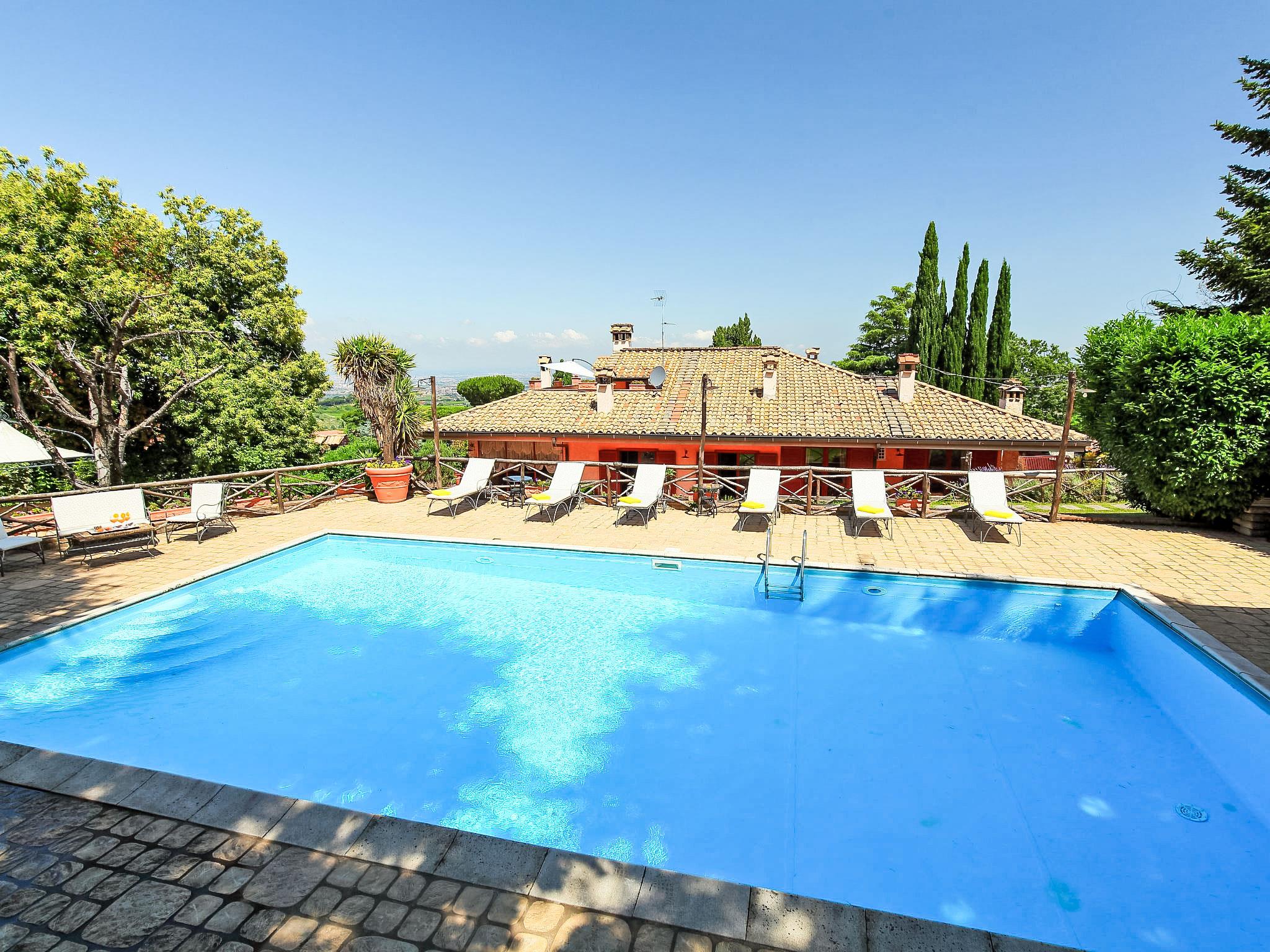 Montecomprati 7 km von Frascati: Schöne, freistehende, komfortable Villa "Villa Mina", 600 m.ü.M.. 35 km vom Zentrum von Roma, ruhige, sonnige Lage im Villenviertel, 30 km vom Meer. Zur Alleinbenutzung: Park 10'000 m2 (eingezäunt), Blumen und Bäumen, wunderschöner Garten zum Entspannen, Schwimmbad (6 x 12 m, 150 - 190 cm tief, saisonale Verfügbarkeit: 01.Jun. - 31.Aug.). Aussendusche, Tennis, Sitzplatz, Pergola, Gartenmöbel, Grill, Grillhaus. Im Hause: Zentralheizung, Klimaanlage, Heizung vor Ort zu zahlen (01.Nov. - 01.Mai.). Handtuchwechsel (zusätzlich extra). Wohnungsreinigung täglich möglich (extra). Haushaltshilfe täglich möglich (extra). Koch möglich (extra). Einkaufsservice vor Anreise möglich. Abholservice vom Flughafen (extra). Parkplatz (für 5 Autos). Einkaufsgeschäft 3 km, Lebensmittelgeschäft 3 km, Supermarkt 3 km, Restaurant 3 km, Bar 3 m, Bäckerei 3 km, Bushaltestelle 1.5 km, Bahnstation "Montecompatri (Roma Termini)" 1 km. Nahe gelegene Sehenswürdigkeiten: Frascati, Castel Gandolfo, Parco Castelli Romani, Rocca di Papa, Ariccia, Grottaferrata. Bekannte Seen in der Umgebung sind gut erreichbar: Lago Albano, Lago di Nemi. Bitte beachten: Fahrzeug empfohlen. Babyausstattung auf Anfrage. Jugendgruppen nur auf Anfrage. Geeignet für Events. Es ist möglich einen Kochkurs zu buchen. Es kann auf Anfrage ein Transfer ab Flughafen zum Ferienobjekt organisiert werden. Autobahn 5 km vom Haus. Die Verwalter wohnen im Erdgeschoss.