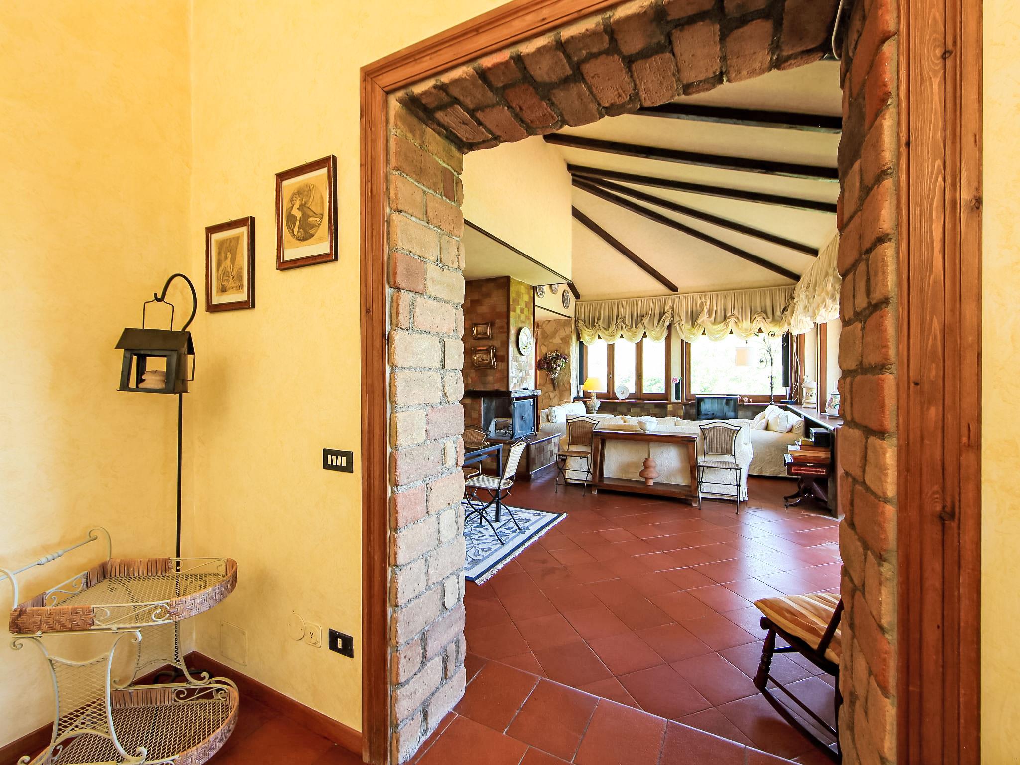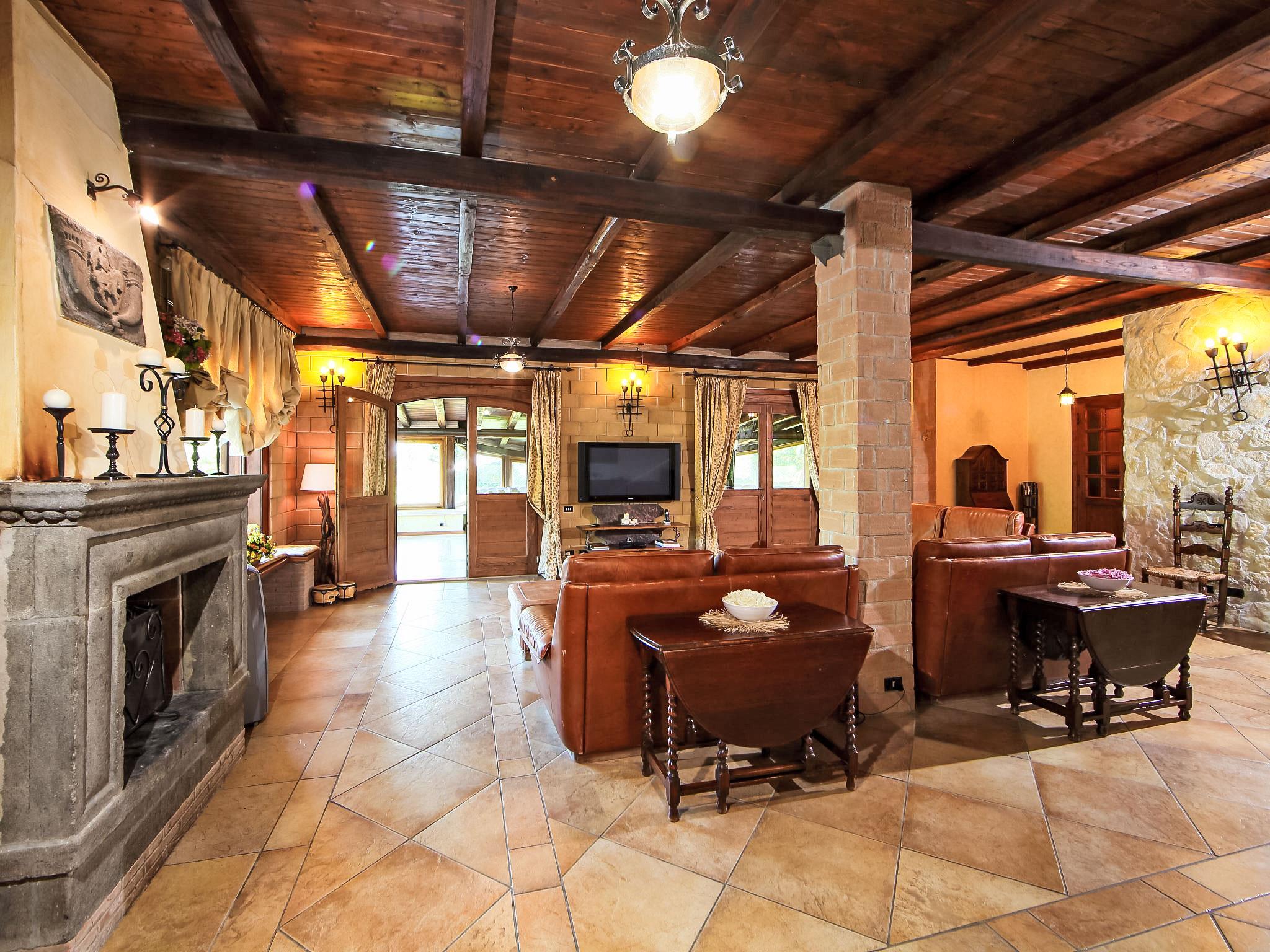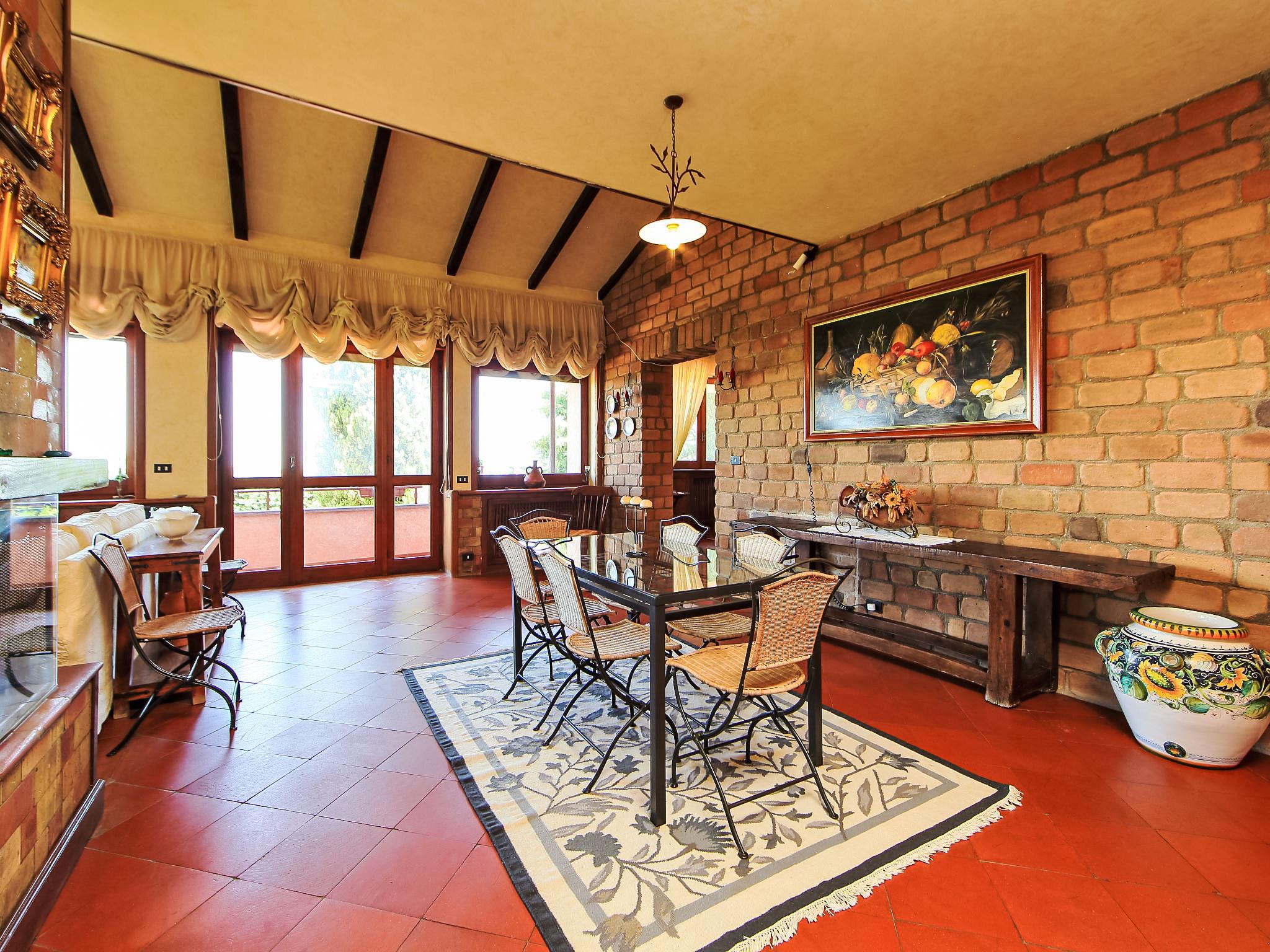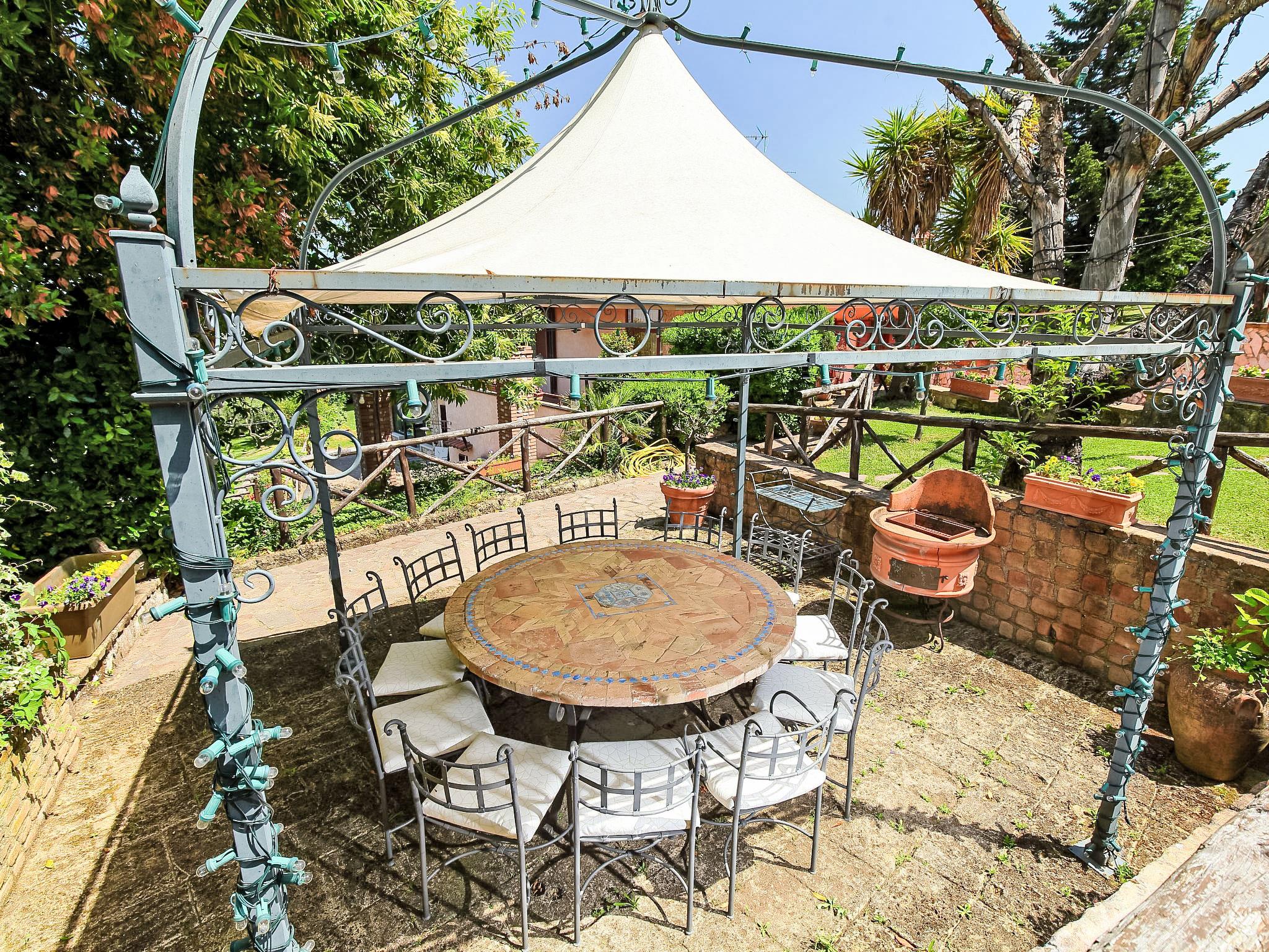 8-Zimmer-Villa 350 m2 auf 3 Stockwerken. Geräumig und hell, luxuriös eingerichtet: grosser Eingang. Offenes grosses Wohnzimmer mit offenem Kamin, Sat-TV, Flachbildschirm und Klimaanlage. Ausgang zum Garten, zur Terrasse. Esszimmer mit Klimaanlage. 2 abgeschrägte Zimmer, jedes Zimmer mit 1 franz. Bett (190 cm, Länge 120 cm), TV (Flachbildschirm), Klimaanlage. Ausgang zum Garten, zur Terrasse. 1 Doppelzimmer mit Bad/Dusche/Bidet/WC, Doppelwaschbecken, TV und Klimaanlage. Ausgang zum Balkon. Küche (5 Kochplatten, Mini-Backofen, Backofen, Geschirrspüler, Mikrowelle). Ausgang zum Garten. Dusche/Bidet/WC. Heizung, G-Heizung. Unteres Geschoss: grosses Wohn-/Esszimmer mit offenem Kamin, Esstisch, Sat-TV und Flachbildschirm. Ausgang zum Garten. Kochnische). Dusche/Bidet/WC. Obergeschoss: 1 abgeschrägtes grosses Zimmer mit 1 franz. Bett (190 cm, Länge 120 cm), TV (Flachbildschirm), Klimaanlage. Ausgang zum Balkon. 1 abgeschrägtes Zimmer mit 1 franz. Bett (190 cm, Länge 120 cm), TV, Flachbildschirm und Klimaanlage.) mit Esstisch. Dusche/Bidet/WC. Grosser Garten. Terrassenmöbel, Gartengrill. Sehr schöne Panoramasicht auf die Landschaft und Rome. Zur Verfügung: Waschmaschine, Bügeleisen, Haartrockner. Internet (WLAN, gratis). Maximal 1 Haustier/Hund erlaubt. Das Hauptbadezimmer hat eine Hydromassagewanne. Bei Belegung mit weniger Personen als der maximalen Personenzahl stehen nicht alle Schlafzimmer zur Verfügung. IT058060C2VEIARDR5