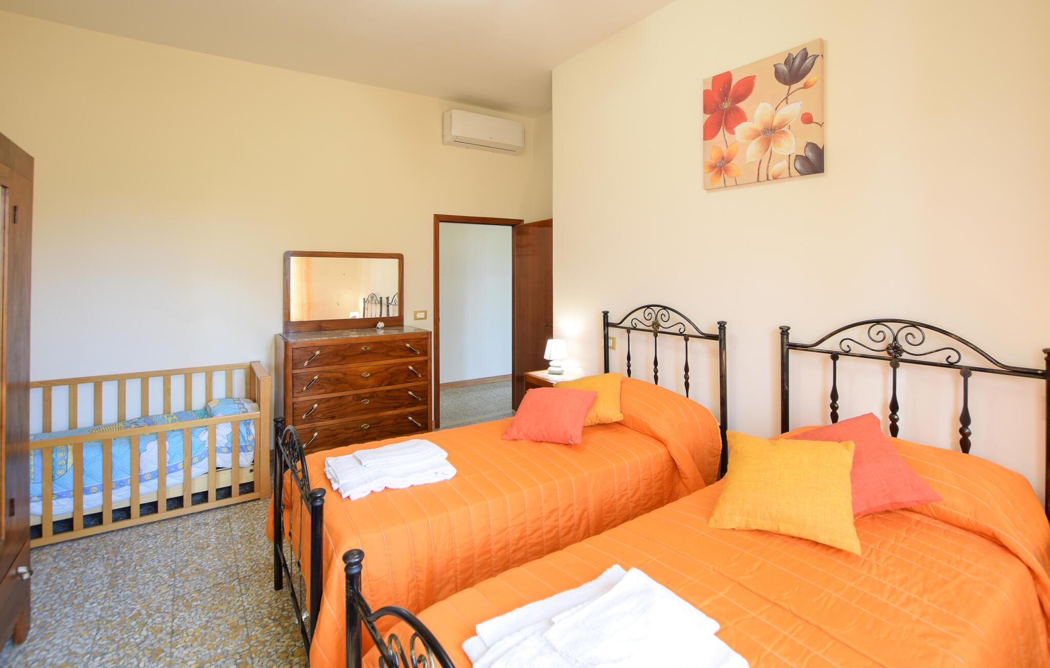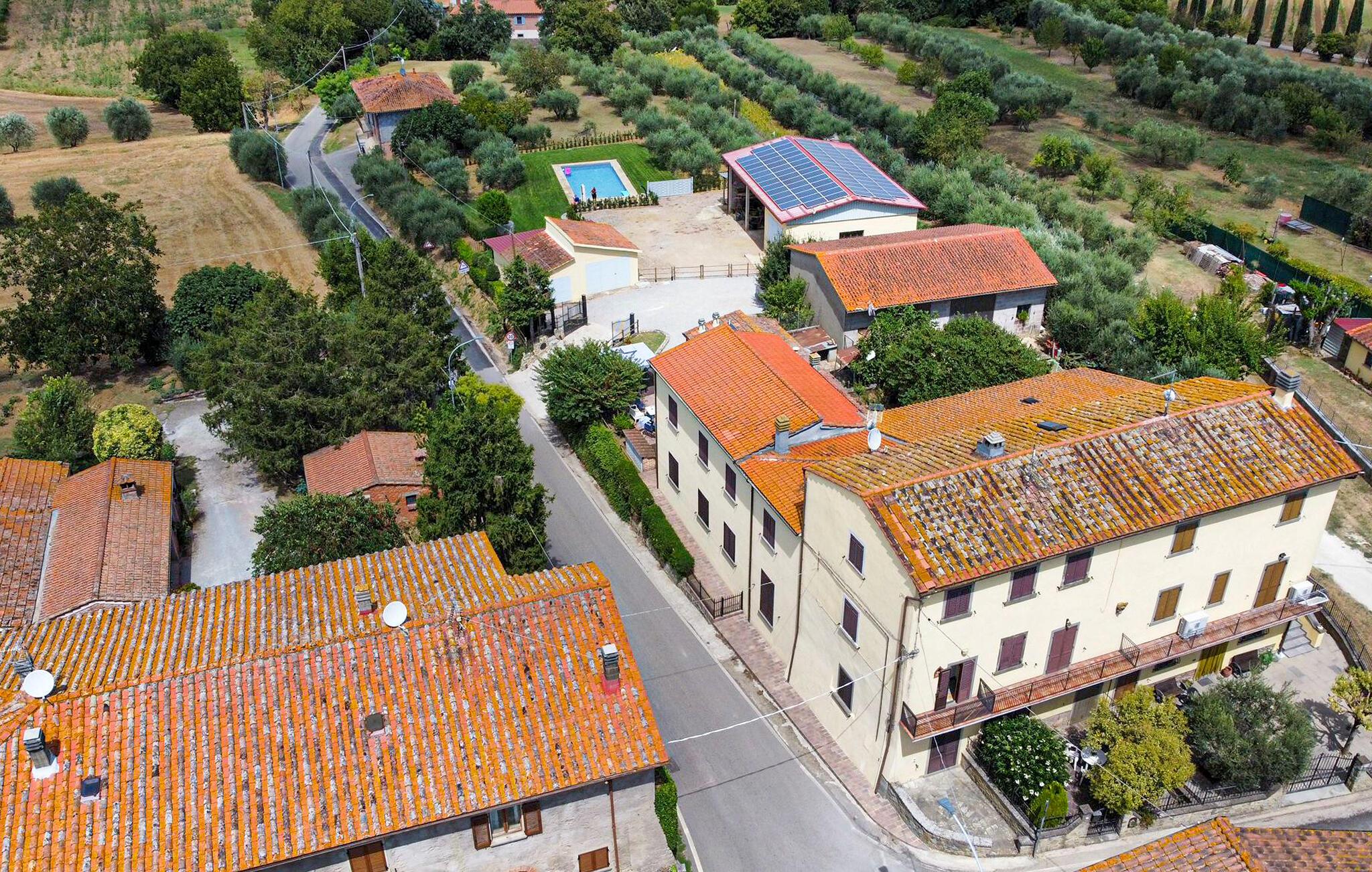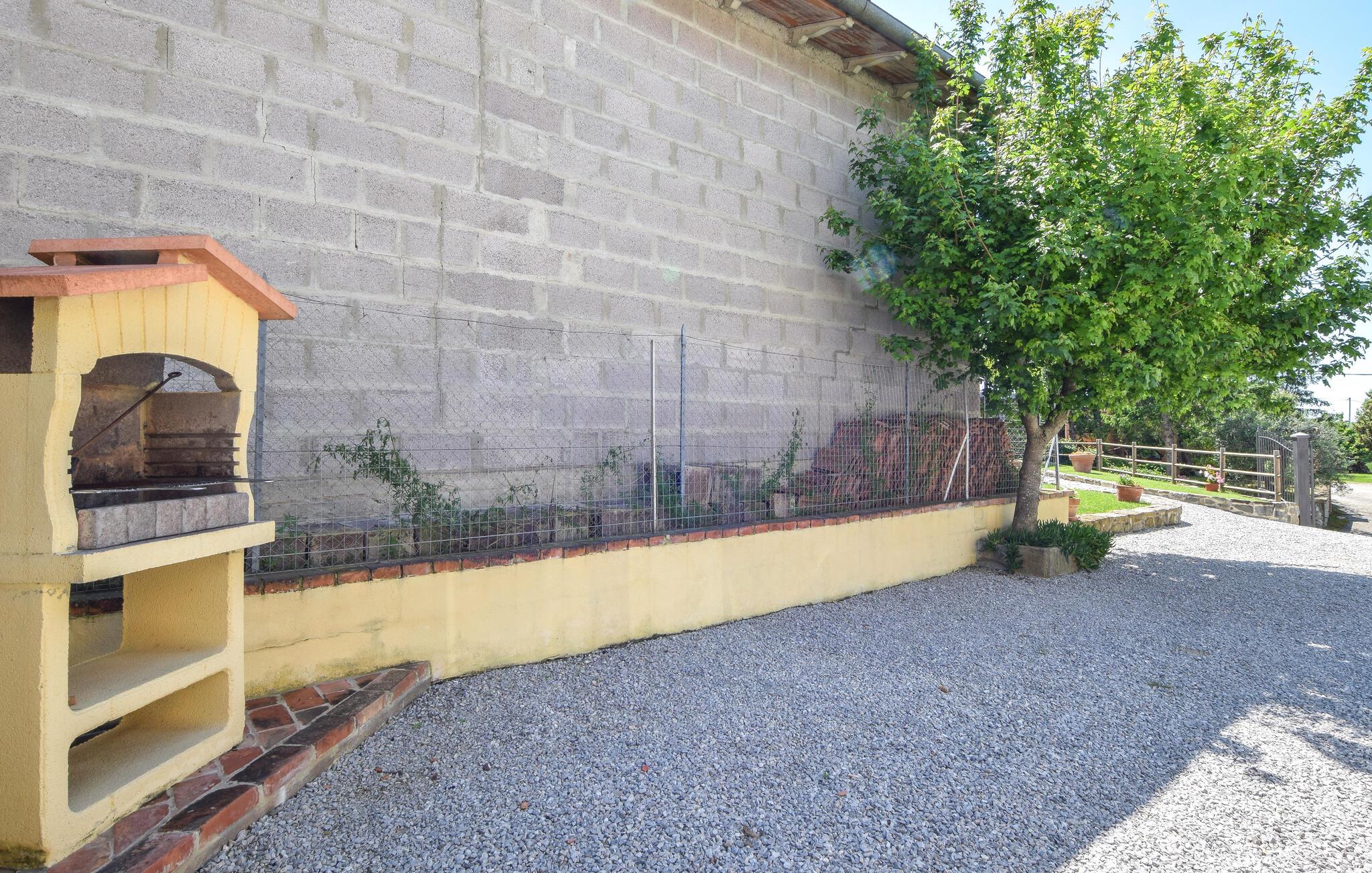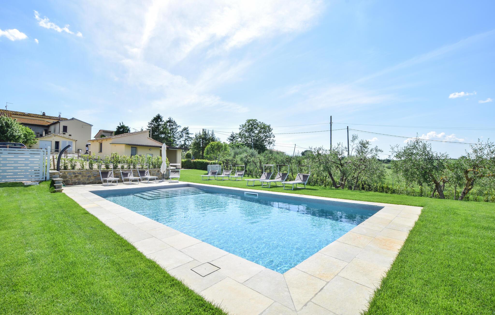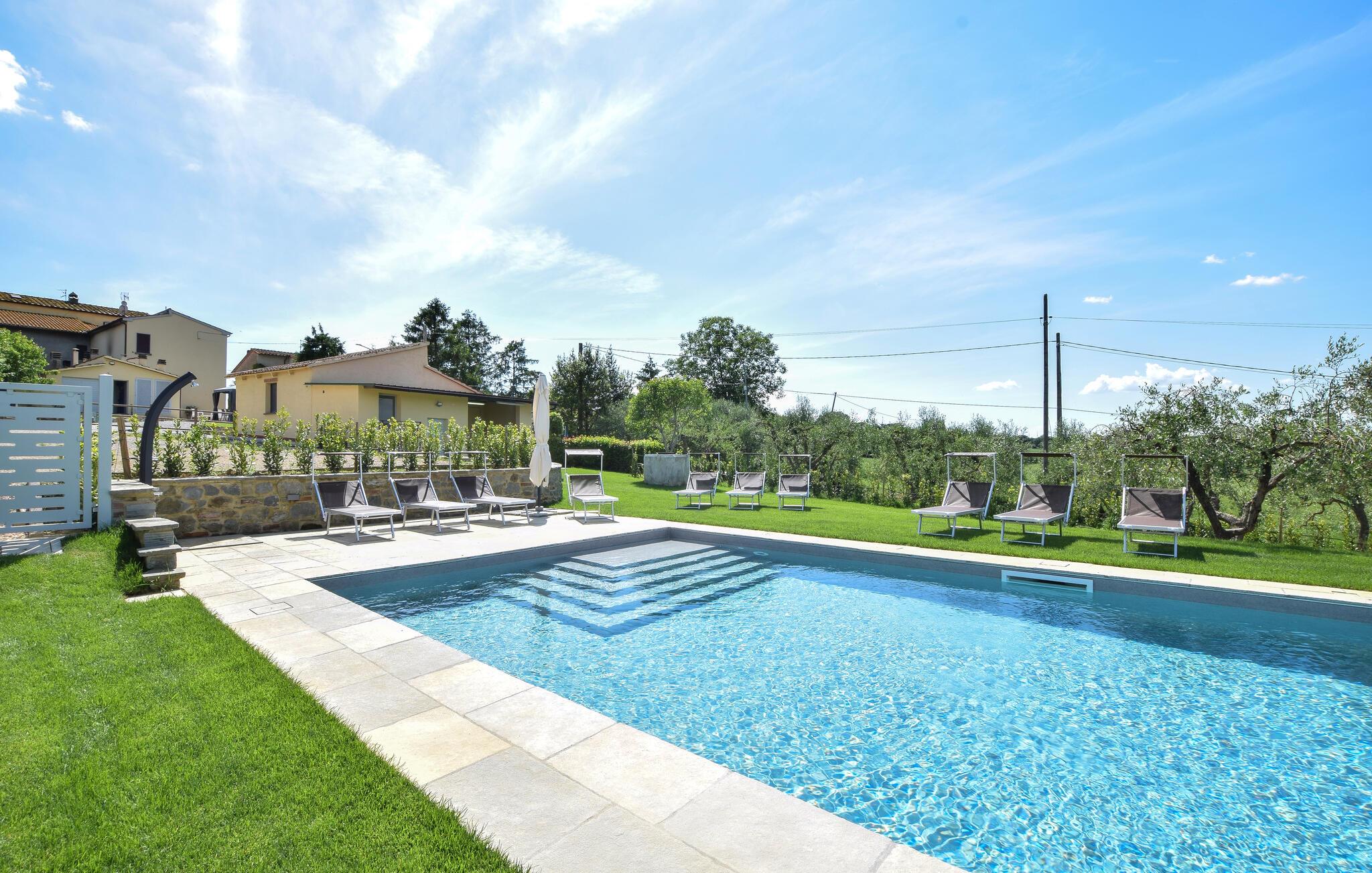 Willkommen in Ihrem Ferienhaus in Fratticciola di Cortona. Diese liebevoll renovierte Haushälfte eines historischen Bauernhofs bietet Ihnen eine ideale Mischung aus rustikalem Charme und modernem Komfort. Genießen Sie den Tag auf der Terrasse, wo bequeme Sitzmöglichkeiten und ein Sonnenschirm für Schatten sorgen. Entspannen Sie am privaten Pool, umgeben von einem gepflegten Rasen und Olivenhainen, und lassen Sie die Seele baumeln.