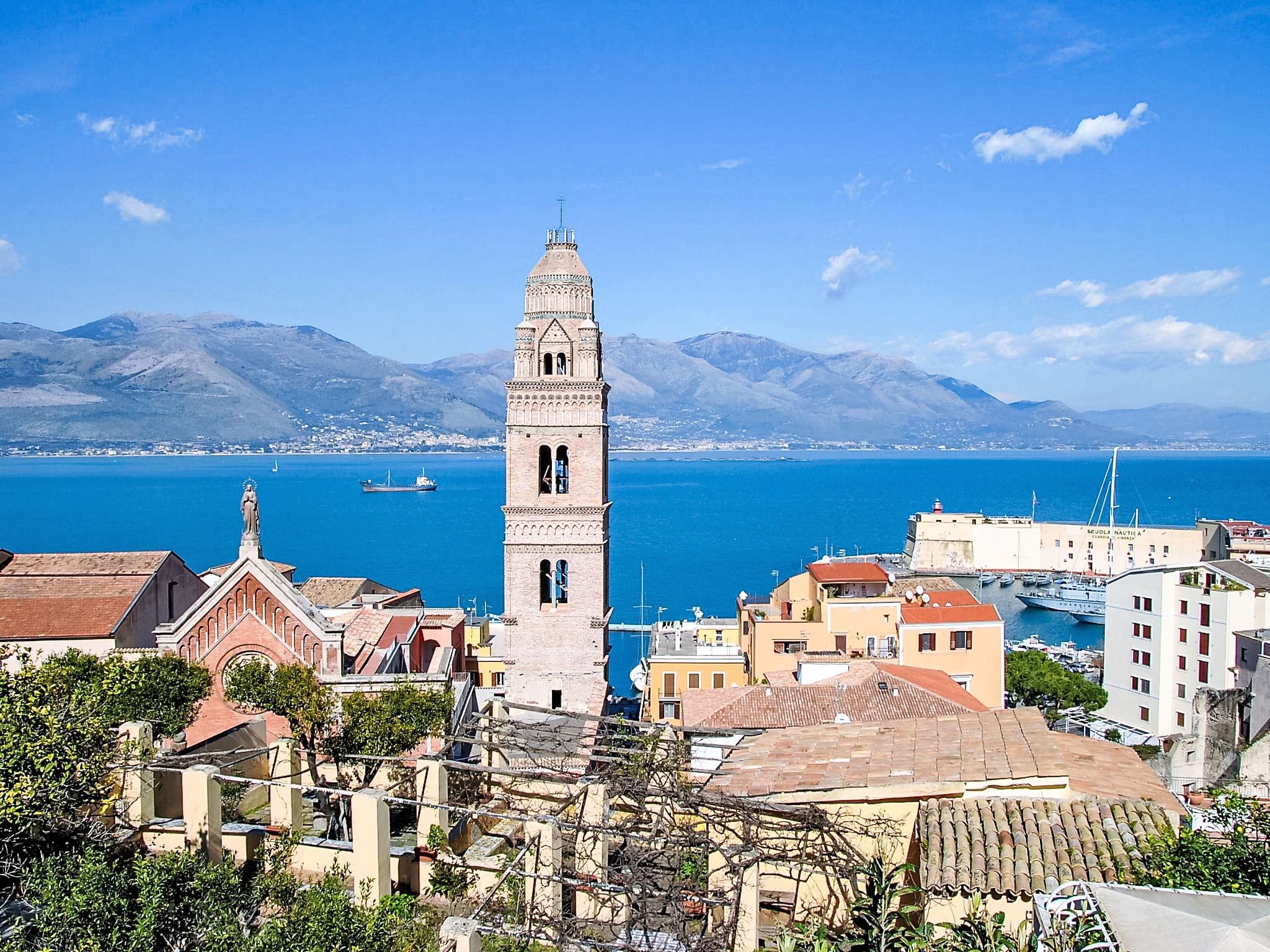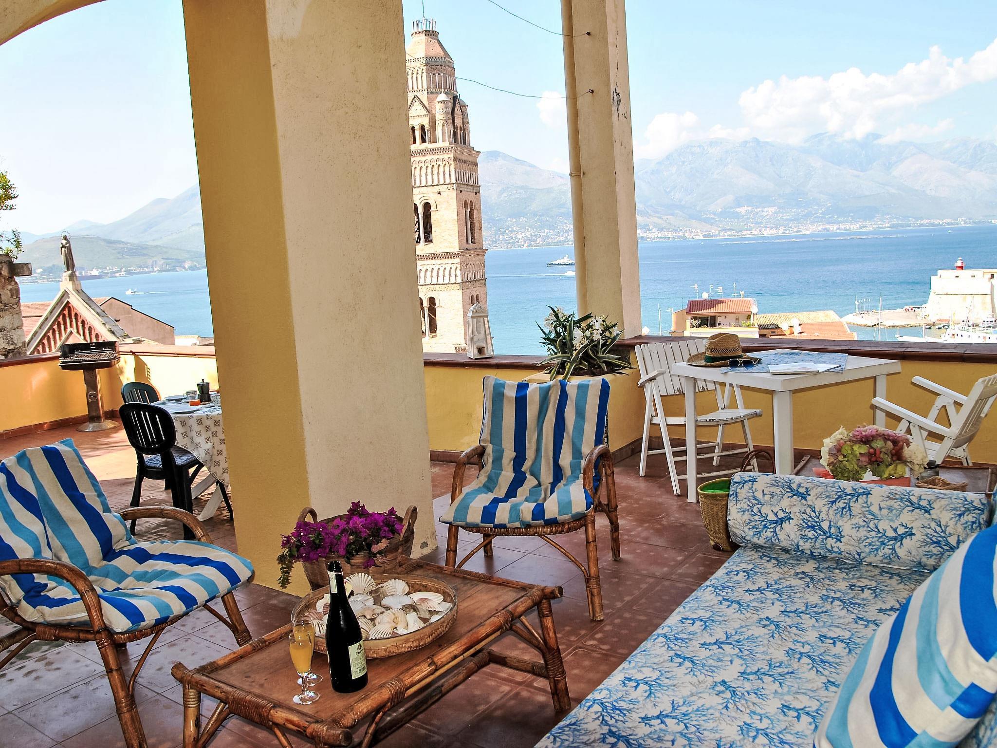 Golfo di Gaeta: Sehr gemütliches, historisches Appartementhaus "Al Campanile". Im Ortszentrum von Gaeta, zentrale, sonnige Lage, exzellente Lage: Absolut zentral und dennoch ruhig, 150 m vom Meer, 2.5 km vom Strand. Öffentliche Parkplätze auf der Strasse. Einkaufsgeschäft, Lebensmittelgeschäft, Supermarkt, Restaurant, Bar 350 m, Bushaltestelle 300 m, Sandstrand "Serapo" 2.5 km. Nahe gelegene Sehenswürdigkeiten: Formia 5 km, Itri 10 km, Sperlonga 18 km, Lido Di Fondi 20 km, San Felice Circeo 30 km, Sabaudia 45 km. Wandergebiete: Parco Monte Orlando 2 km. Jugendgruppen nur auf Anfrage. Die Wohnung befindet sich in einer für den Verkehr begrenzt zugänglichen Zone (ZTL). Parken: im öffentlichen Bereich vor der Ankunft anzufordern. Von der Straße gibt es 10 Stufen hinunter bis zur Haustür. Anreise nach 20.00 Uhr gegen Aufpreis von Euro 30.