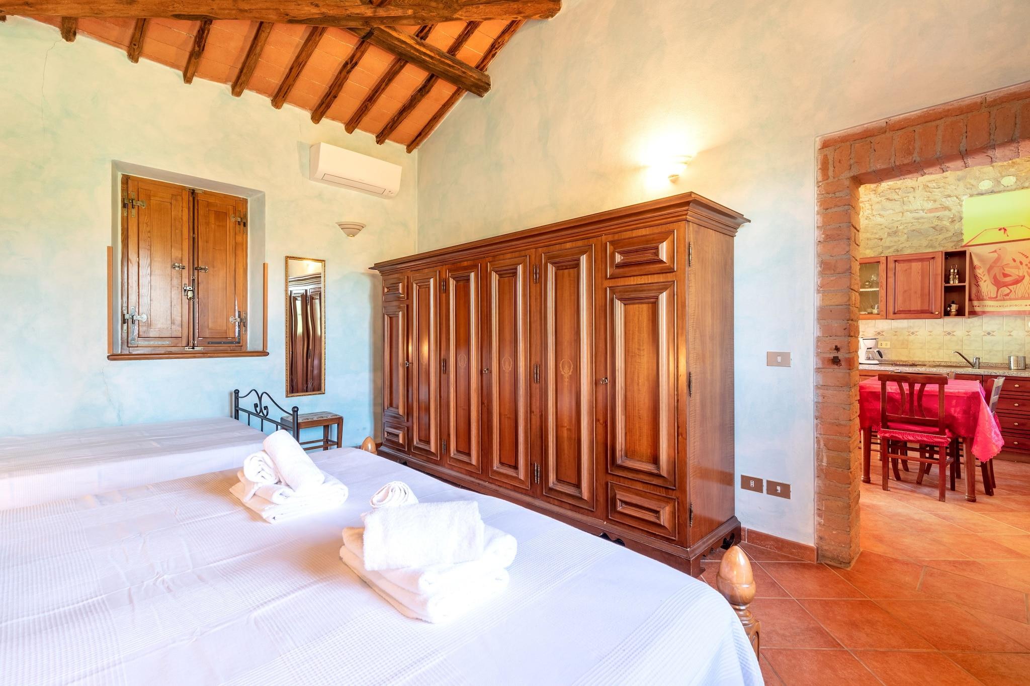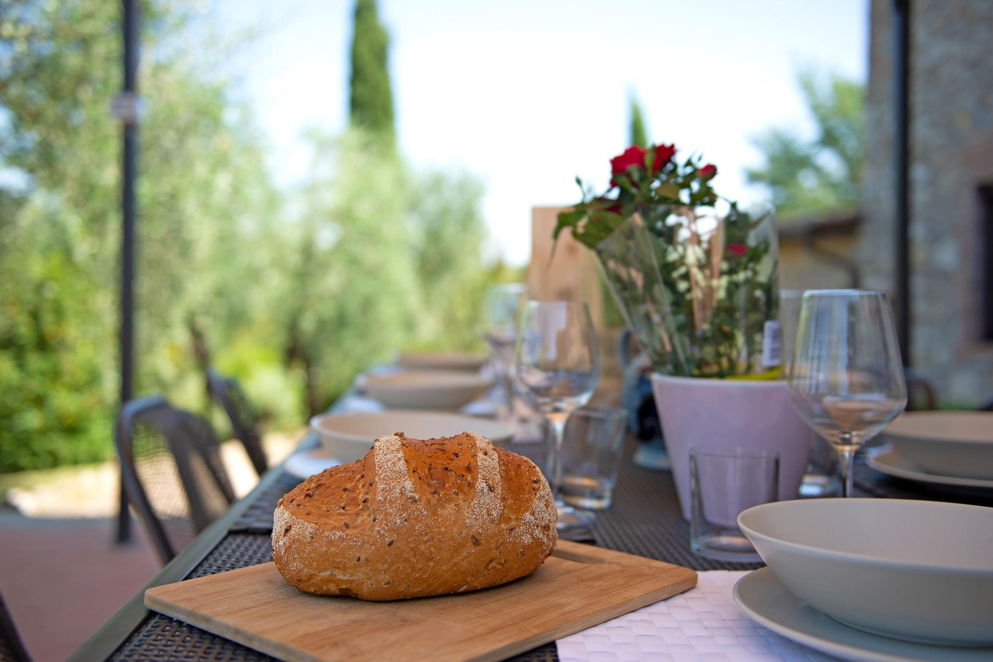 Urlaub im Herzen des Chianti Classico in Gaiole in Chianti. Authentisches und charmantes Ferienhaus, umgeben von einem Garten, dessen Blick sich in sanften Hügeln mit Weinreben und Olivenbäumen verliert. Atmen Sie den Duft des Waldes voller Steineichen, Wacholder und Eichen. Entdecken Sie die schönsten Kunststädte und historischen Dörfer der Toskana: Gaiole in Chianti (15 km), Radda in Chianti (20 km), Castellina in Chianti (27 km), Panzano (30 km), Monteriggioni (33 km), Siena (20 km), San Gimignano (55 km), Florenz (80 km), Arezzo (70 km). Der Eigentümer bietet Ihnen gerne eine Führung an, bei der Sie den himmlischen Wein verkosten können. Vom Pool aus genießen Sie einen bezaubernden Blick auf das Schloss Brolio. Draußen lädt eine große Terrasse zum Mittagessen mit Familie und Freunden ein. Das Bauernhaus endet mit einem Teil eines Reihenhauses, das von einer zurückhaltenden Familie bewohnt wird, die Ihre Privatsphäre nicht verletzt. Kinder und Haustiere sind willkommen und kostenloses WLAN sorgt für reibungsloses Surfen und die Möglichkeit, aus der Ferne zu arbeiten.