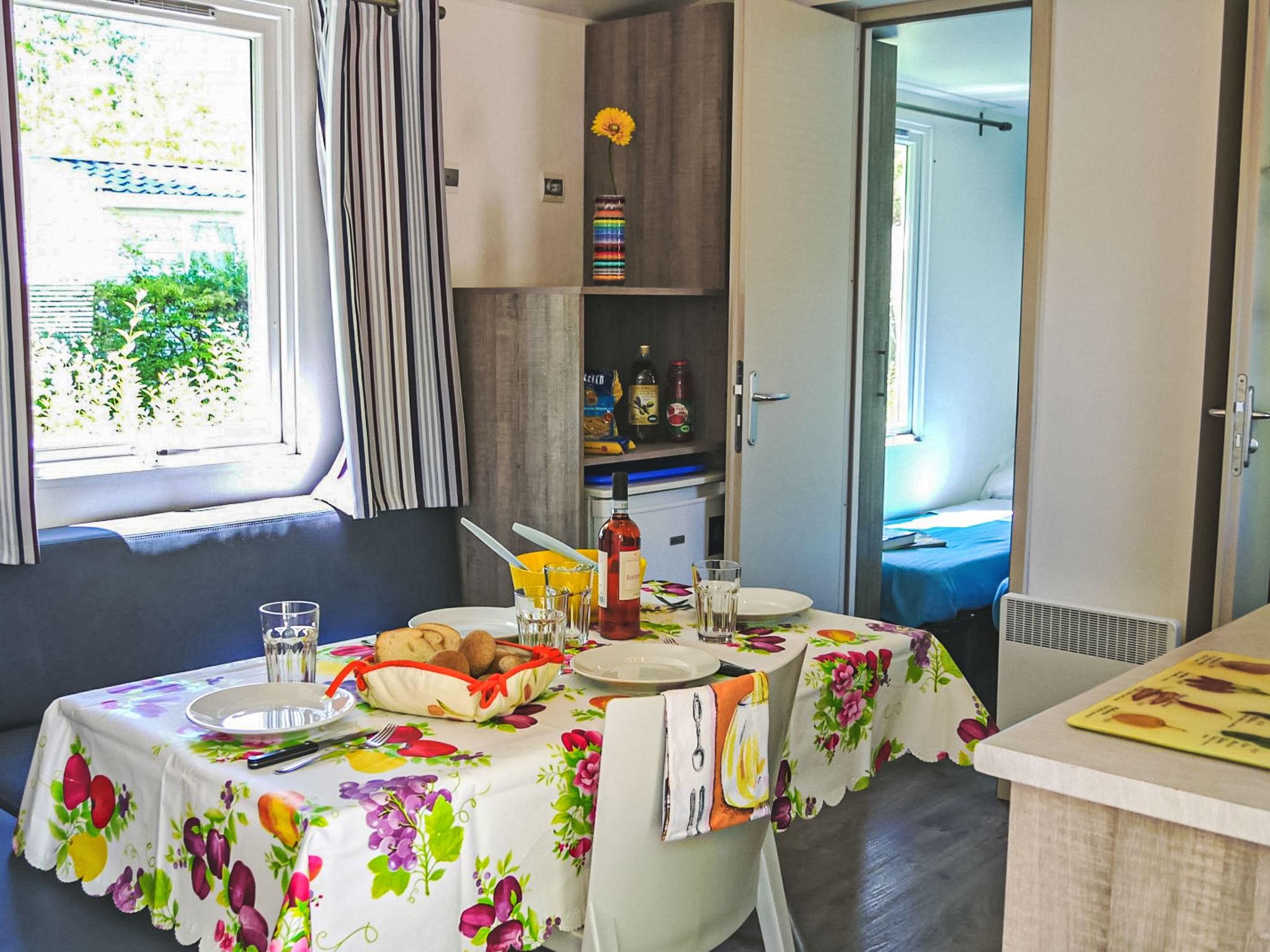"Happy Comfort", 3-Zimmer-Mobilheim 25 m2. Zweckmässig eingerichtet: Wohn-/Schlafzimmer mit 1 Schlafmöglichkeit (120 cm, Länge 200 cm), Esstisch, E-Heizung und Klimaanlage. 1 Zimmer mit 1 franz. Bett (140 cm, Länge 190 cm). 1 Zimmer mit 2 Betten (70 cm, Länge 190 cm). Offene Küche (4 Kochplatten). Dusche/WC. Klimaanlage (extra). Terrasse teilweise überdacht. Terrassenmöbel, Elektrogrill (mobil), Liegestühle (2). Zur Verfügung: Fliegengitter. Parkplatz (1 Auto). Bitte beachten: Nichtraucher-Unterkunft. Maximal 1 kleines Haustier/Hund erlaubt. IT075031B100021589
