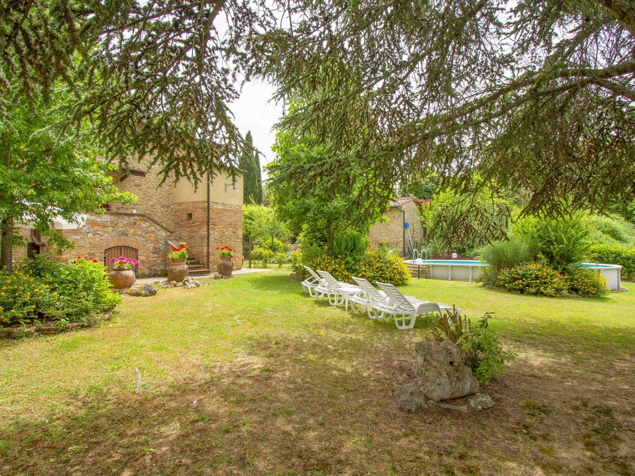 L'Antica Chiesa: Sehr schönes, historisches Zweifamilienhaus "L'Antica Chiesa", einseitig angebaut, aus dem 14. Jahrhundert, renoviert, umgeben von Bäumen, Feldern und Weinbergen. 8 km vom Zentrum von San Gimignano, alleinstehende, erhöhte Lage, im Grünen. Zur Mitbenutzung: naturbelassenes Grundstück 1 ha, Pflanzen und Bäumen. Zur Alleinbenutzung: Garten (eingezäunt) mit Rasen 1'000 m2 Blumen, Schwimmbad (9 x 5 m, 120 - 120 cm tief, saisonale Verfügbarkeit: 31.Mai. - 03.Okt.). Gartenmöbel, Grill. Im Hause: Internetzugang, Wireless LAN, Massage (extra). Heizung vor Ort zu zahlen. Wäschewechsel 1 mal wöchentlich. Koch möglich (extra). Parkplatz beim Haus auf dem Grundstück. Einkaufsgeschäft 8 km, Restaurant 2 km, Café 8 km, Bushaltestelle 5 km, Bahnstation "Poggibonsi" 20 km, Sandstrand "Cecina" 65 km. Tennis 6 km, Reitstall 8 km. Nahe gelegene Sehenswürdigkeiten: Siena 45 km, Florenz 45 km, Volterra 25 km. Bitte beachten: Die Residenz wird durch elektrische Tore geschlossen. Der Besitzer wohnt auf dem gleichen Grundstück. Der Eigentümer benutzt das Schwimmbecken nur gelegentlich.