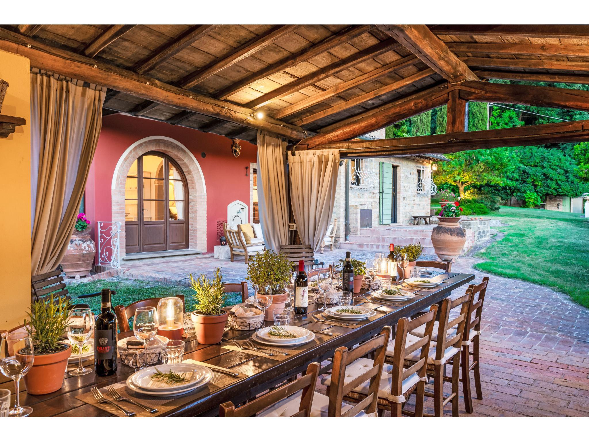 Sehr schöne, komfortable Villa "Fonte di Pillo", umgeben von Feldern und Weinbergen. Mietobjekt bestehend aus Haupt- und Nebengebäude, 4 km vom Zentrum von Gambassi Terme, 4 km vom Zentrum von Castelfiorentino, 20 km vom Zentrum von San Gimignano, ruhige Lage. Zur Alleinbenutzung: Grundstück 60'000 m2, gepflegter Garten (nicht eingezäunt) mit Rasen und Bäumen, Schwimmbad (12 x 6 m, 150 cm tief, saisonale Verfügbarkeit: 01.Mai. - 18.Okt.). Aussendusche, Terrasse, Gartenmöbel, Grill, Poolpflege durch den Besitzer/Gärtner. Im Hause: Klimaanlage, Alarmanlage. 200 m lange Zufahrt (Naturweg). Parkplatz (überdacht) auf dem Grundstück. E-Ladestation. Supermarkt 4 km, Bushaltestelle 300 m, Bahnstation "Castelfiorentino" 6 km. Golfplatz (18 Loch) 15 km. Nahe gelegene Sehenswürdigkeiten: Volterra 30 km, Firenze 40 km, Pisa 60 km, Livorno 70 km. Bitte beachten: Babyausstattung (inkl.). Jugendgruppen nur auf Anfrage.