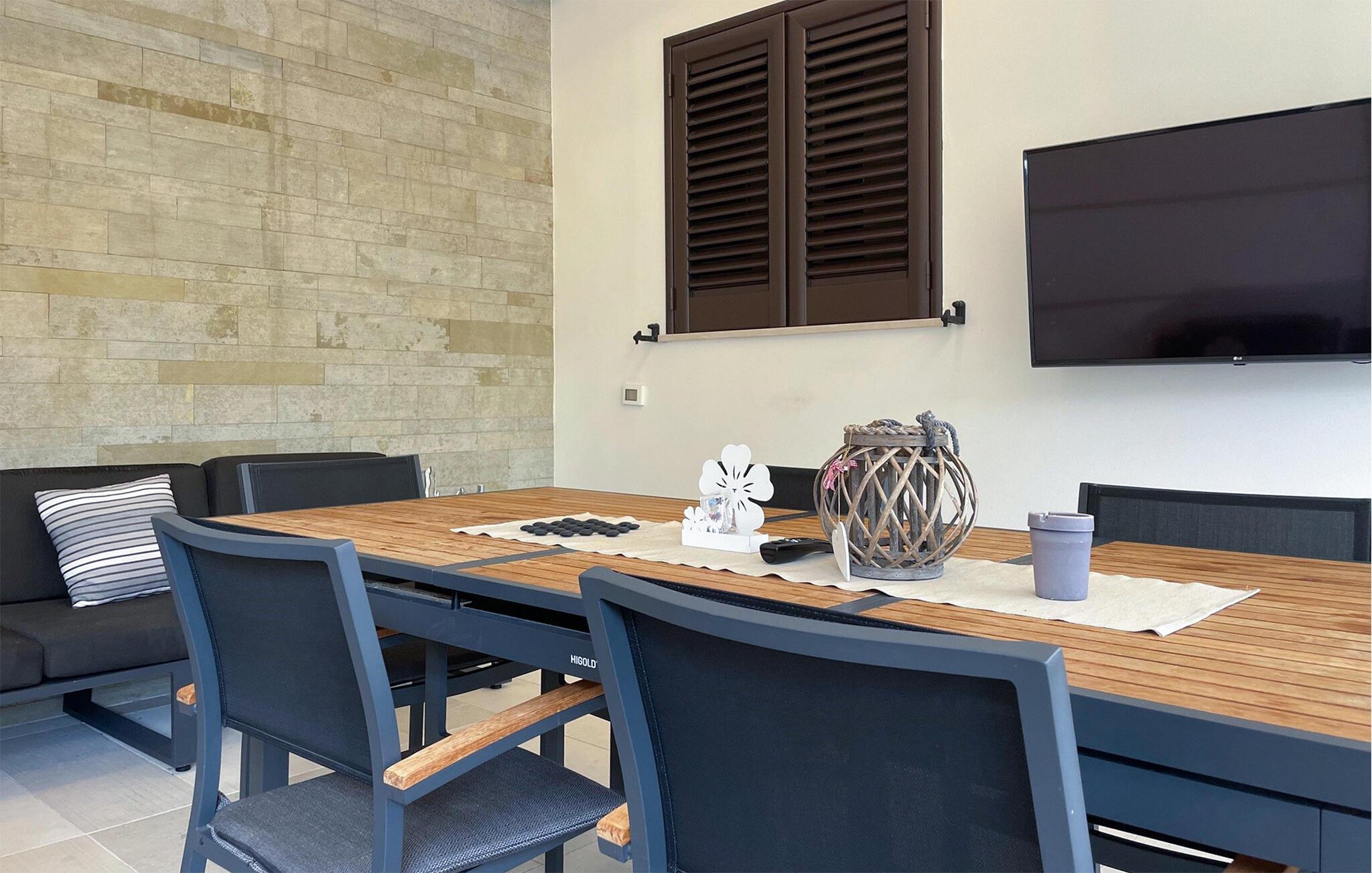 Dieses moderne und geschmackvoll eingerichtete Ferienhaus liegt nur einen kurzen Spaziergang von der türkisblauen Badebucht von Gandoli entfernt. Schwingen Sie den Kochlöffel in der gut ausgestatteten Küche und genießen Sie Ihre selbst zubereiteten Spezialitäten im angenehmen Ambiente Ihrer Veranda mit Blick in den lauschigen Garten. Entspannen Sie sich nach einem langen Tag in der mediterranen Sonne auf der gemütlichen Couch bei einem guten Buch oder genießen Sie einen Filmabend in geselliger Runde.