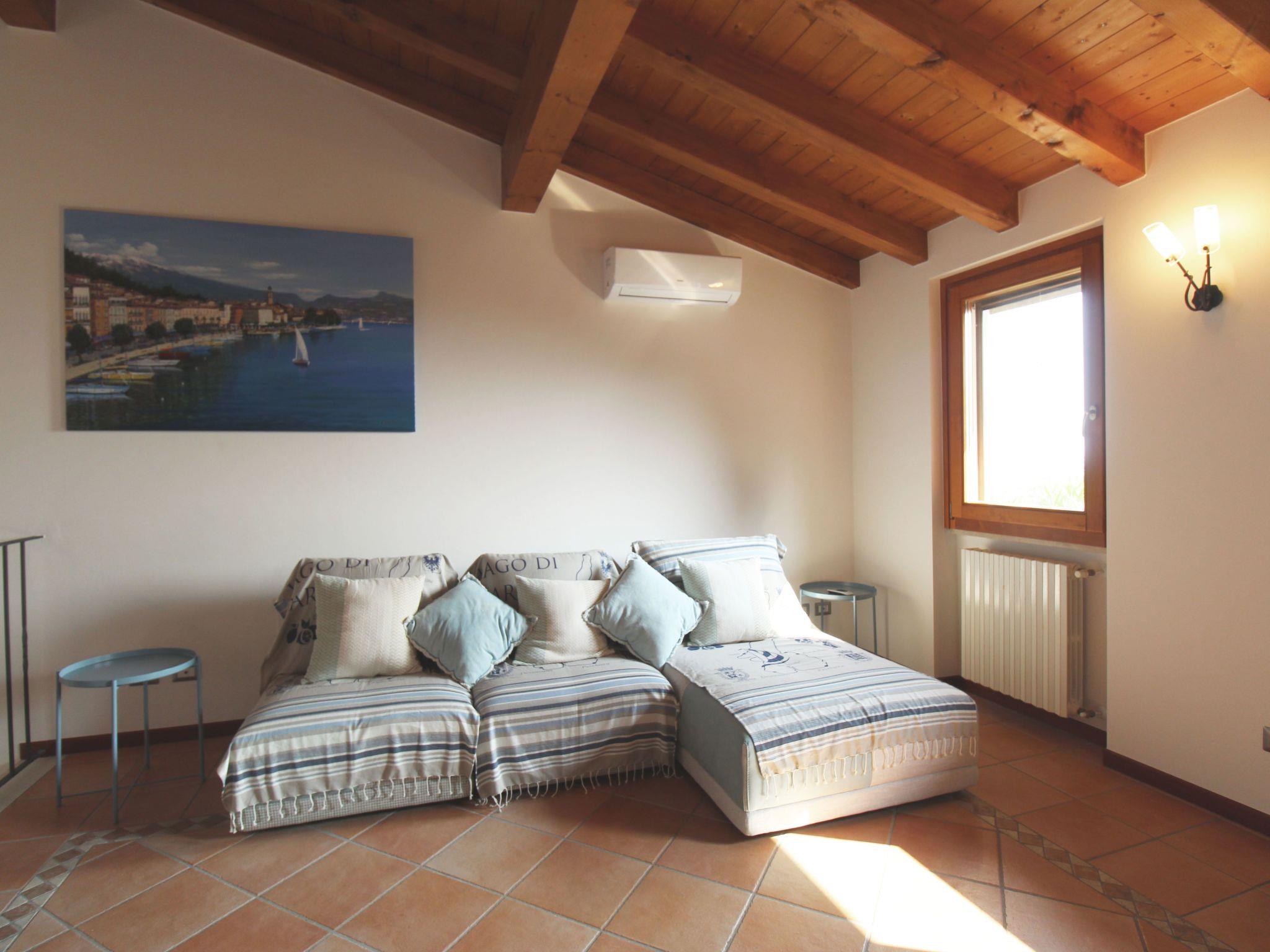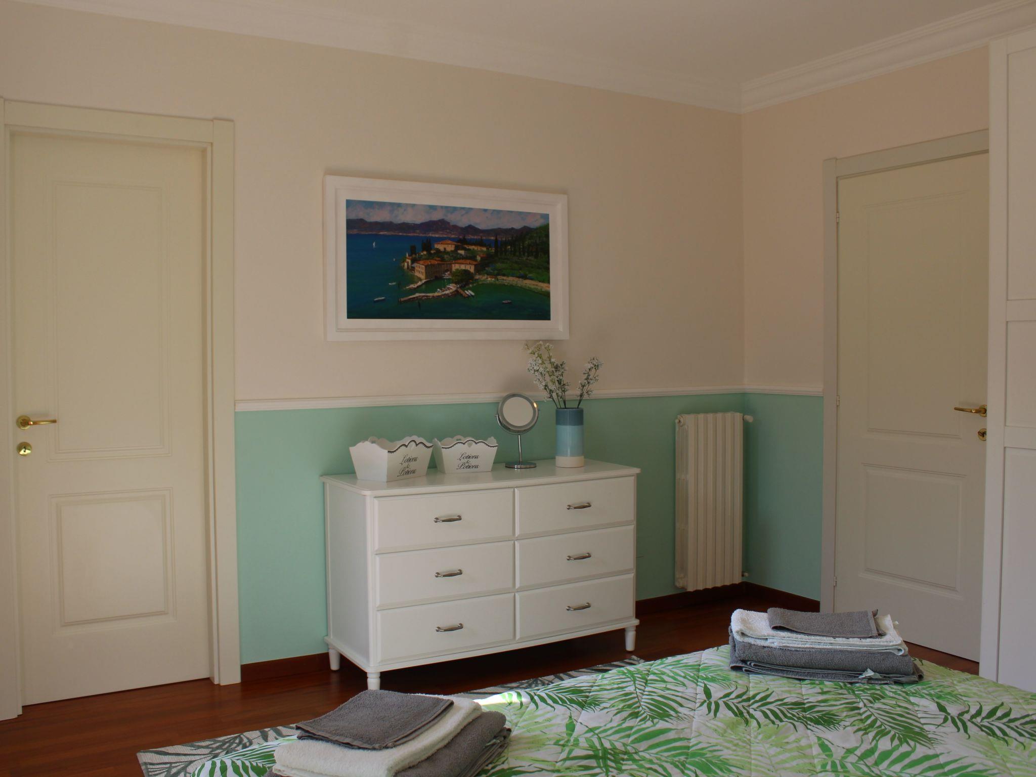 Dieses schöne, freistehende Haus, das erst kürzlich (Ende 2019) renoviert wurde, befindet sich in einem Wohnkomplex, mit dem es sich ein Schwimmbad teilt. Der Eingang zum Haus ist privat von der Straße auf der oberen Seite des Komplexes (Via Belvedere), wo es auch einen kostenlosen Parkplatz direkt neben dem Tor gibt. Um das Haus von der Straße aus zu erreichen, gibt es eine Treppe mit etwa zwei Stufen. Vor dem Haus gibt es einen Zugang zu einem privaten Garten mit einem großen überdachten und gepflasterten Bereich, wo man draußen essen kann, während man den schönen Seeblick genießt. Am Eingang zum Garten gibt es auch eine private Terrasse mit Liegestühlen, die einen weiteren atemberaubenden Blick auf den Gardasee bietet.
