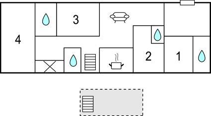 Badezimmer 4m2 (nr. 1) - WC. Warmes und kaltes Wasser. Dusche