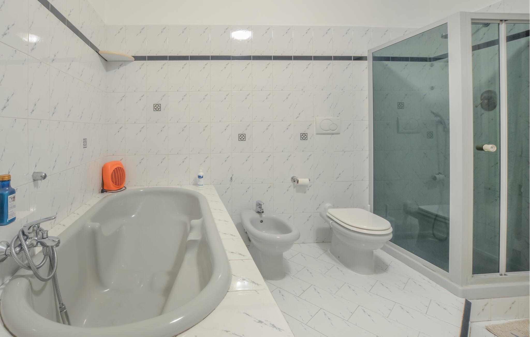 Badezimmer (nr. 1) - WC. Warmes und kaltes Wasser. Dusche und Badewanne