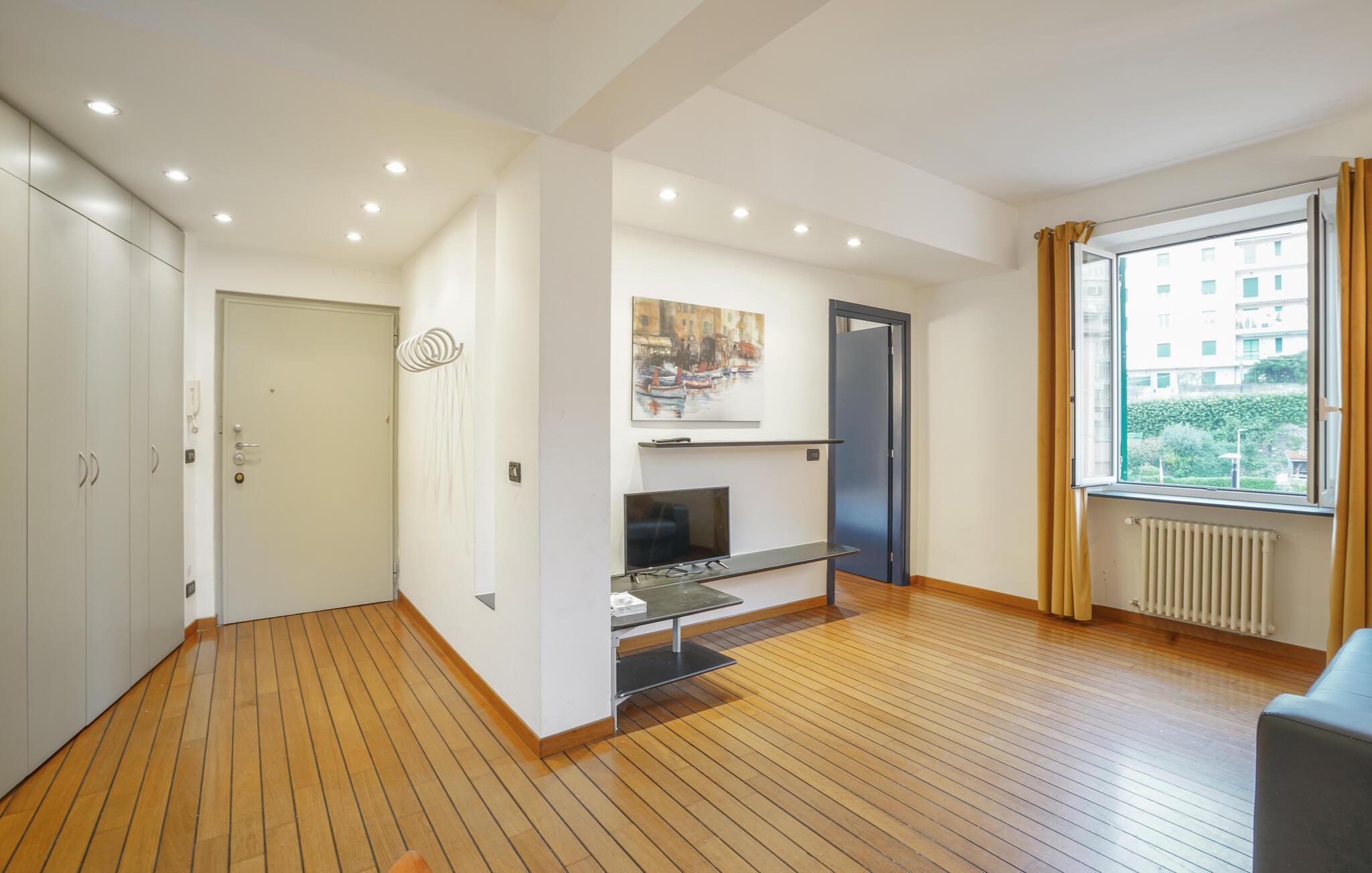 Diese offen gestaltete Wohnung am Stadtrand von Genua lädt Sie mit ihrem freundlichen Ambiente dazu ein, entspannte Urlaubstage mit Familie und Freunden zu verbringen. Der großzügige Wohnbereich ist ideal für gemeinsame Mahlzeiten oder gemütliche Abende. Nur wenige Meter trennen Sie vom Strand, wo Sie die Sonne genießen oder ins erfrischende Meer eintauchen können. Die perfekte Kombination aus angenehmem Komfort und Nähe zur malerischen Küste schafft eine einmalige Urlaubsatmosphäre.