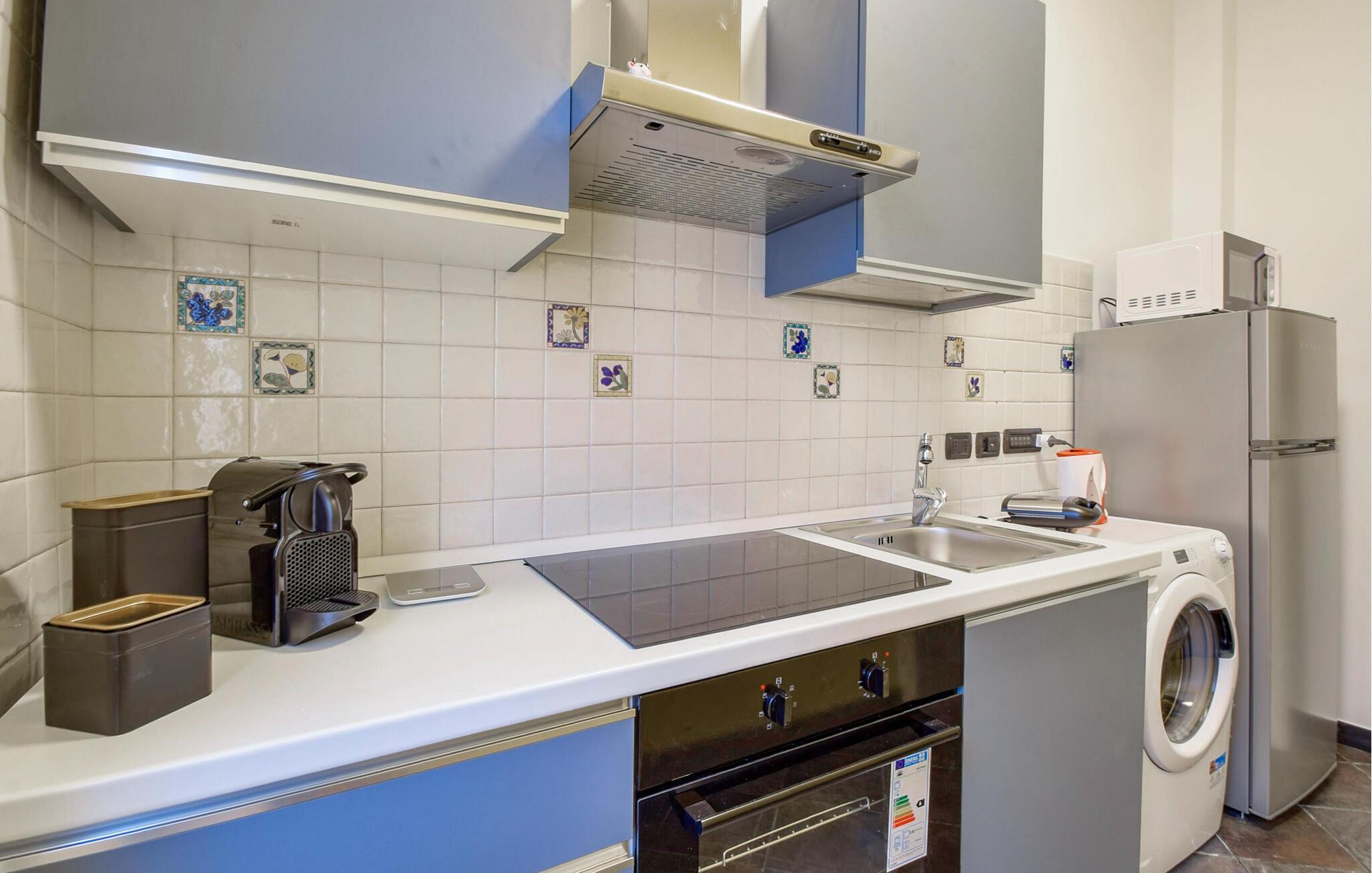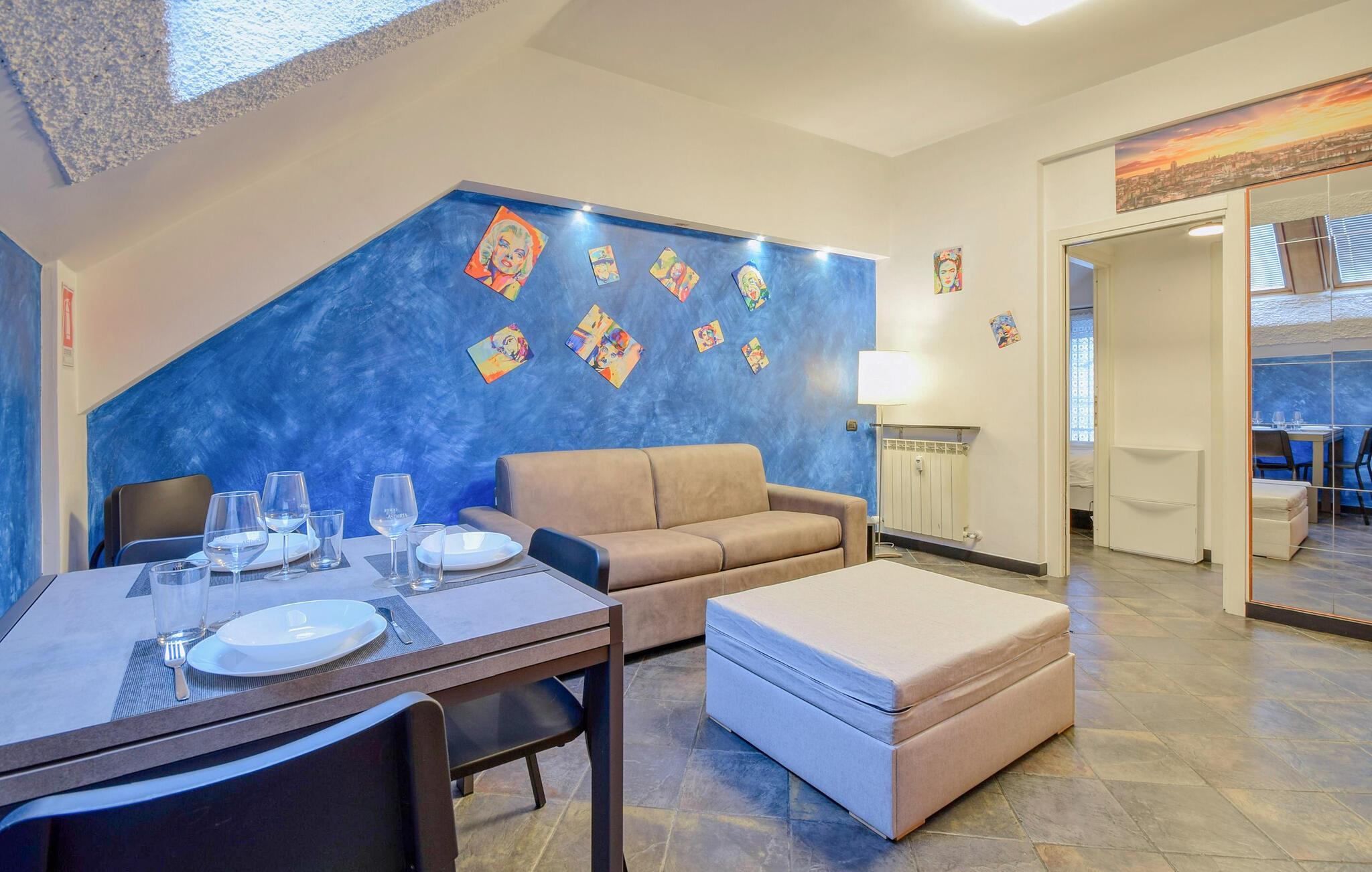 Diese einladende Wohnung im achten Stock bietet Ihnen eine authentische Atmosphäre mit einem Hauch von Geschichte und Moderne. Farbliche Akzente und ausgewählte Dekoration schaffen in Verbindung mit den ansprechenden Möbeln eine einladende Atmosphäre. Beginnen Sie Ihre Urlaubstage mit einem ausgiebigen Frühstück und machen sich bereit die Stadt zu erkunden. Nur wenige Schritte vom größten Aquarium Europas und dem belebten Hafen entfernt, erleben Sie das pulsierende Herz der Stadt. Dank der praktischen Lage können Sie nach einem ereignisreichen Tag in den Gassen Genuas aufatmen und die Abendstimmung über den Dächern genießen. Bitte beachten Sie, dass der Aufzug bis zum 7. Stockwerk fährt und das letzte Stockwerk über eine Treppe erreicht wird.