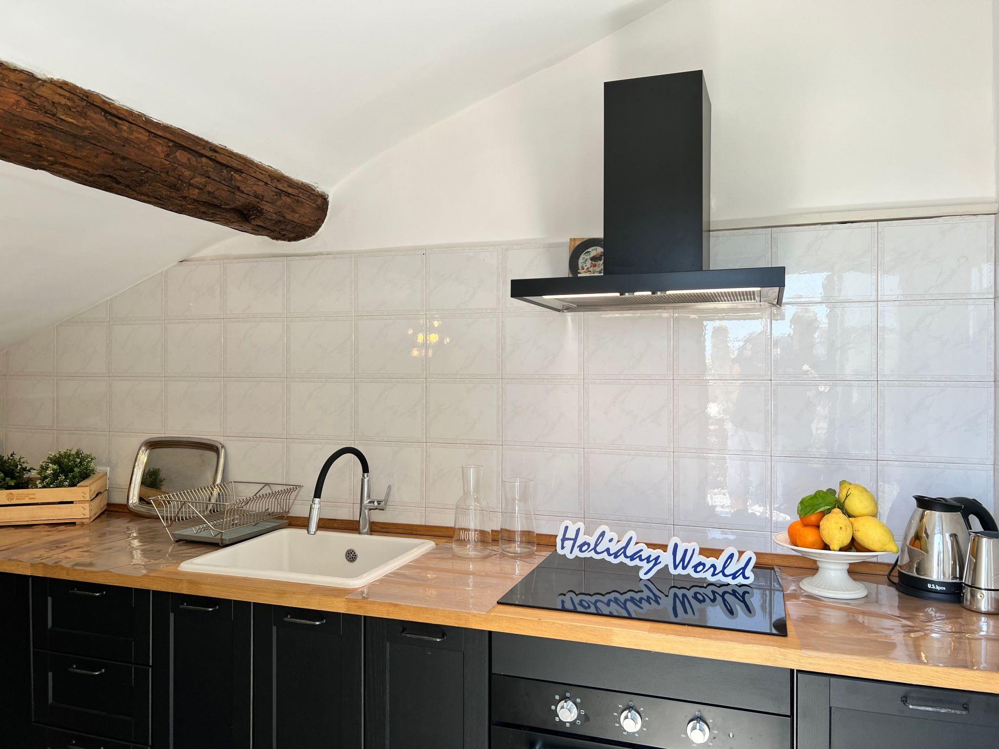 Im Inneren ist die Wohnung mit allen Annehmlichkeiten ausgestattet, die einen angenehmen und entspannten Aufenthalt ermöglichen. Die durchdachte Raumaufteilung umfasst einen gemütlichen Wohnbereich, in dem man sich nach einem Tag voller Entdeckungen entspannen kann, und einen Schlafbereich, der einen ruhigen und erholsamen Schlaf garantiert. Die Wohnung verfügt auch über eine gut ausgestattete Küche für die Zeiten, in denen Sie es vorziehen, in Ruhe zu speisen und die Kühle des Abends auf der Terrasse zu genießen. Die Kombination aus Funktionalität und Komfort macht diese Wohnung zu einem idealen Ausgangspunkt für Ihren Urlaub.