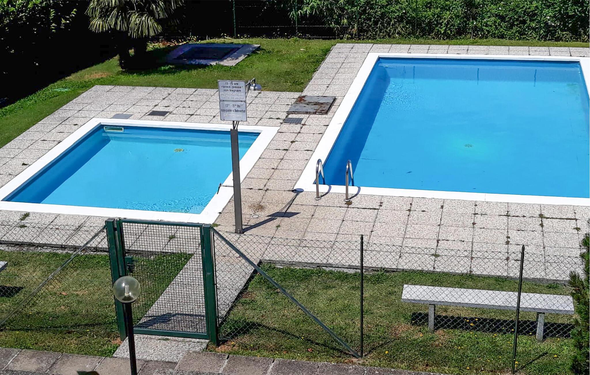 Genießen Sie von dieser praktischen Ferienwohnung den Blick auf den See und entspannen Sie am Pool.