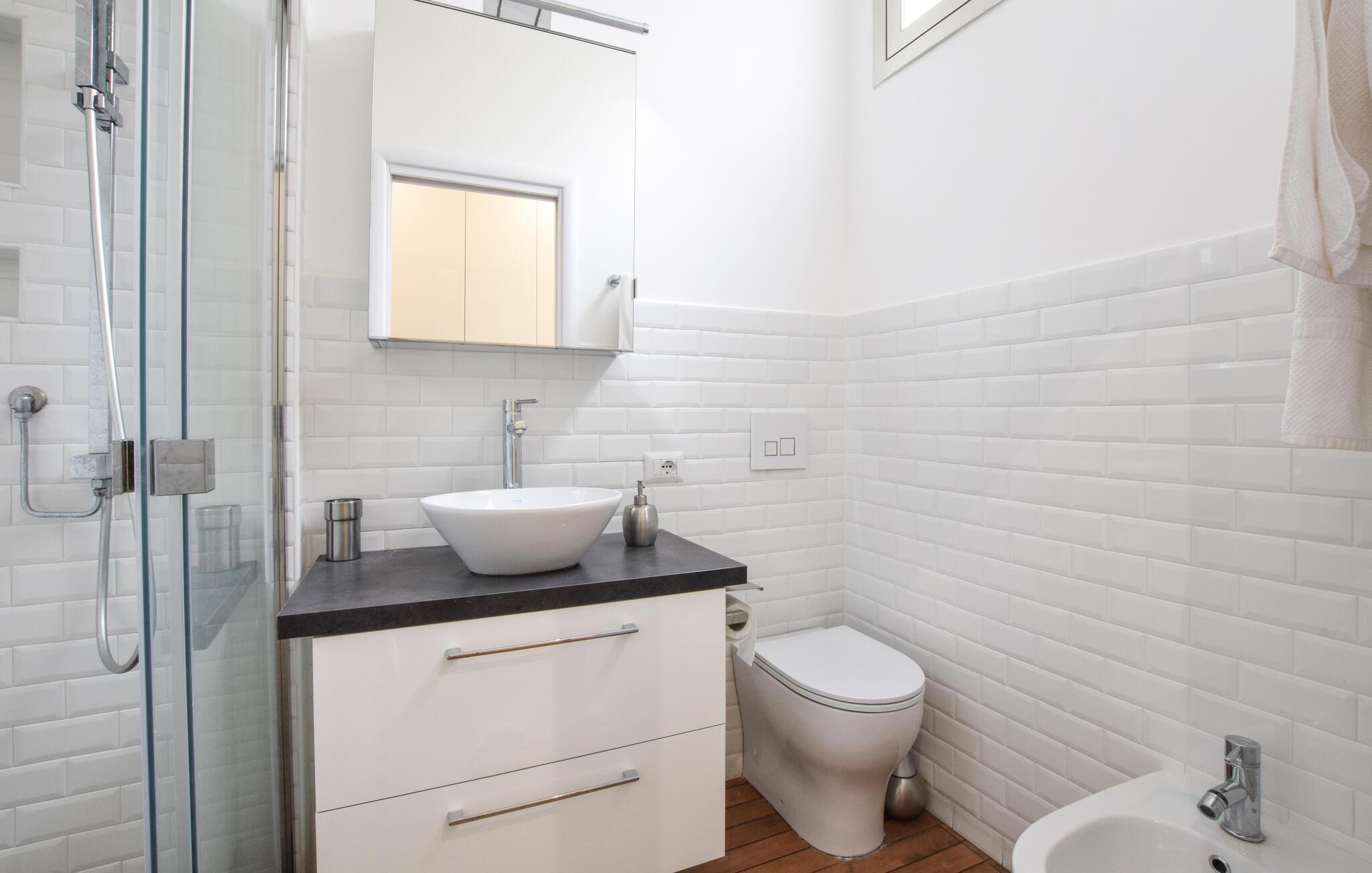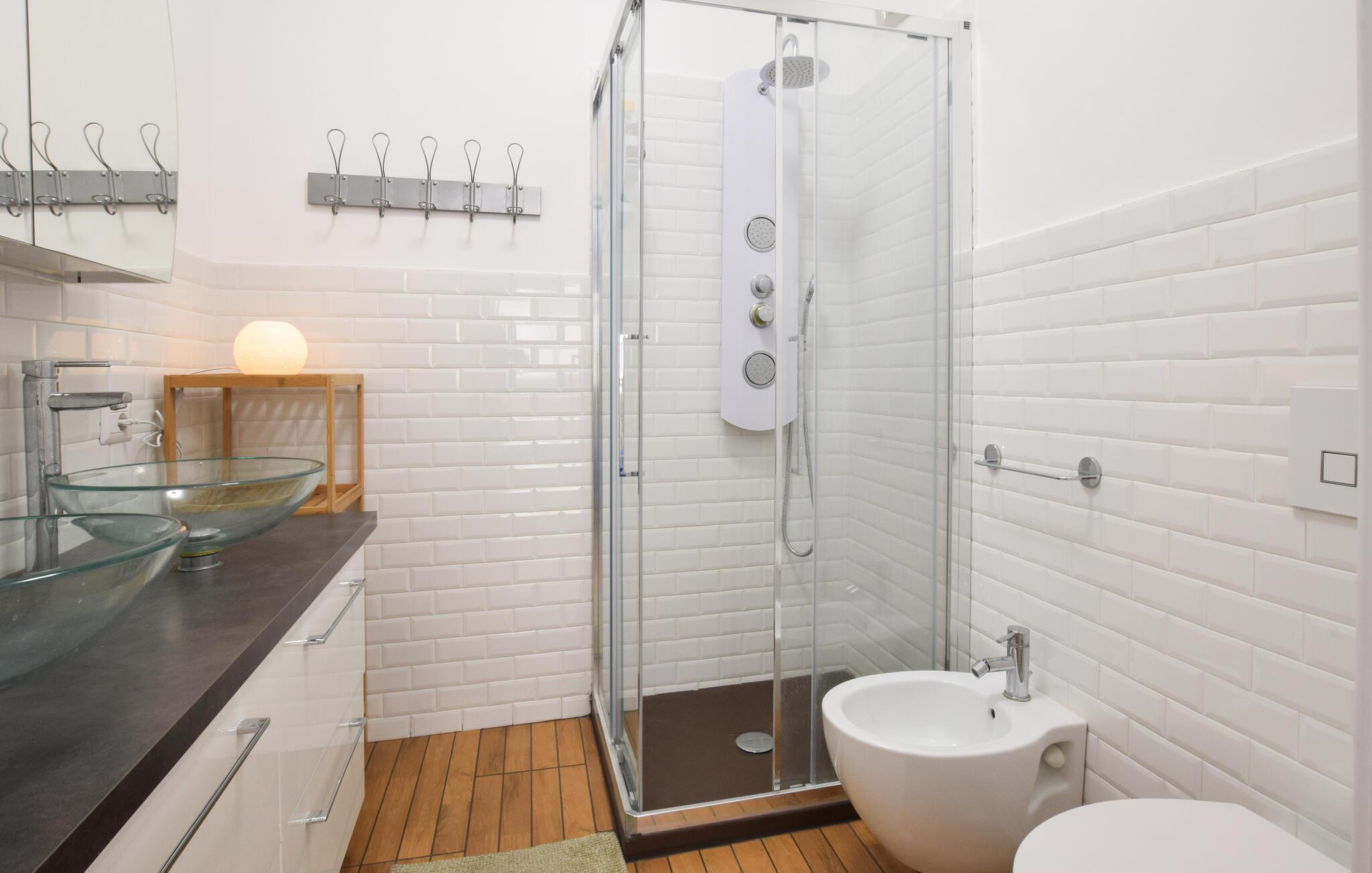 Badezimmer 4m2 (nr. 1) - WC. Warmes und kaltes Wasser. Dusche