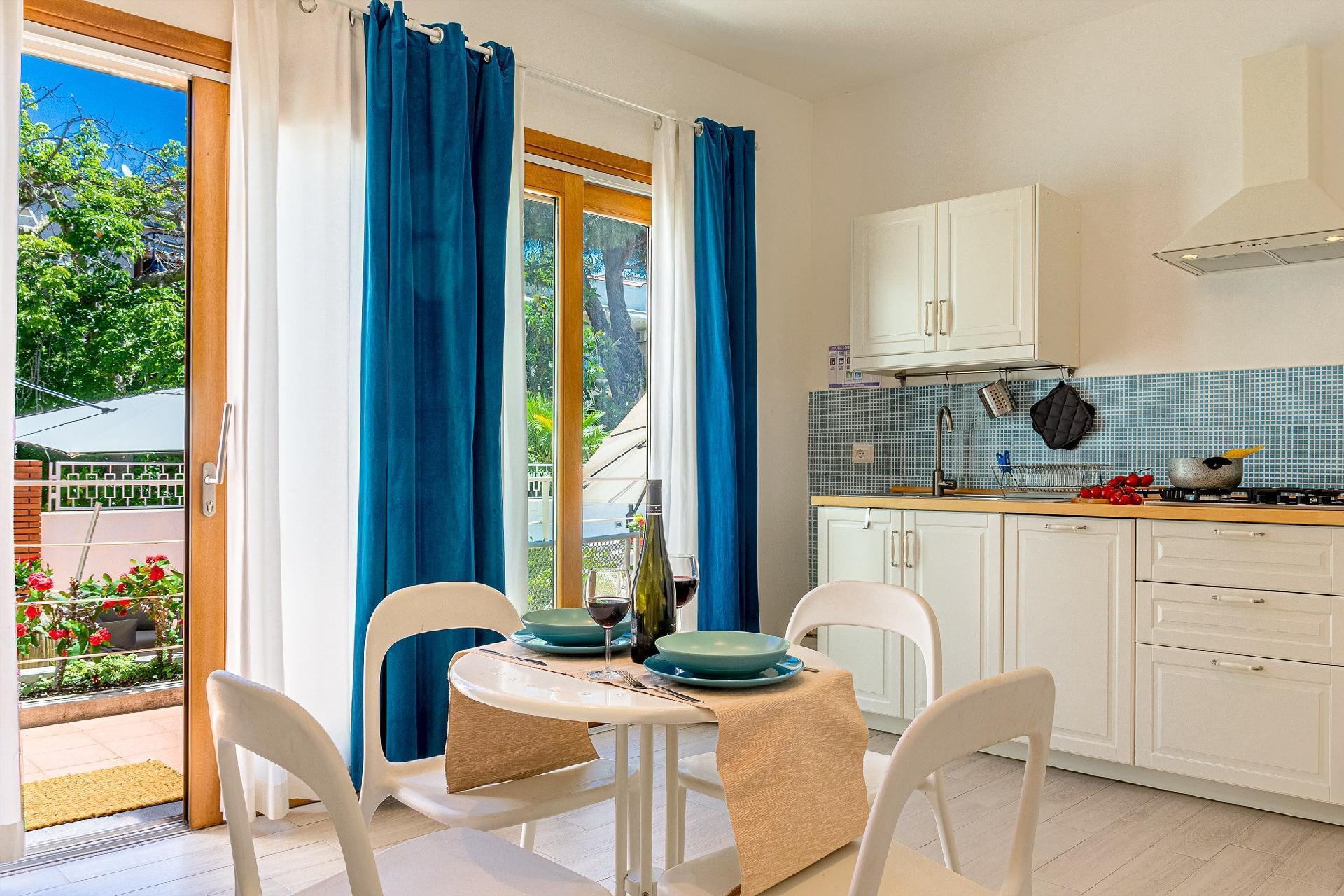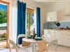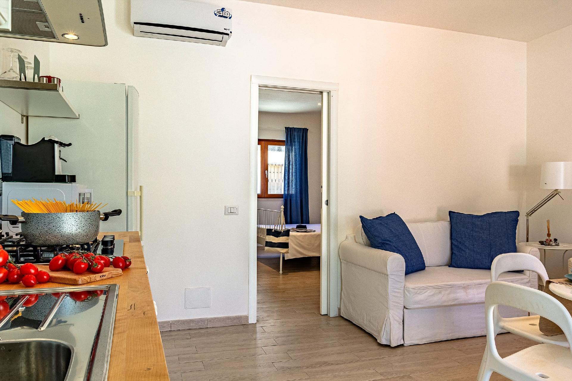 Das Innere der Zweizimmerwohnung ist mit viel Liebe zum Detail eingerichtet und schafft eine gemütliche und funktionelle Umgebung. Der Wohnbereich ist hell und luftig und verfügt über eine gut ausgestattete Küchenzeile, in der Sie köstliche Mahlzeiten zubereiten können. Nach einem erlebnisreichen Tag können Sie sich auf dem bequemen Sofa entspannen oder ein Glas Wein auf der Terrasse mit Blick auf den schönen Swimmingpool genießen.
