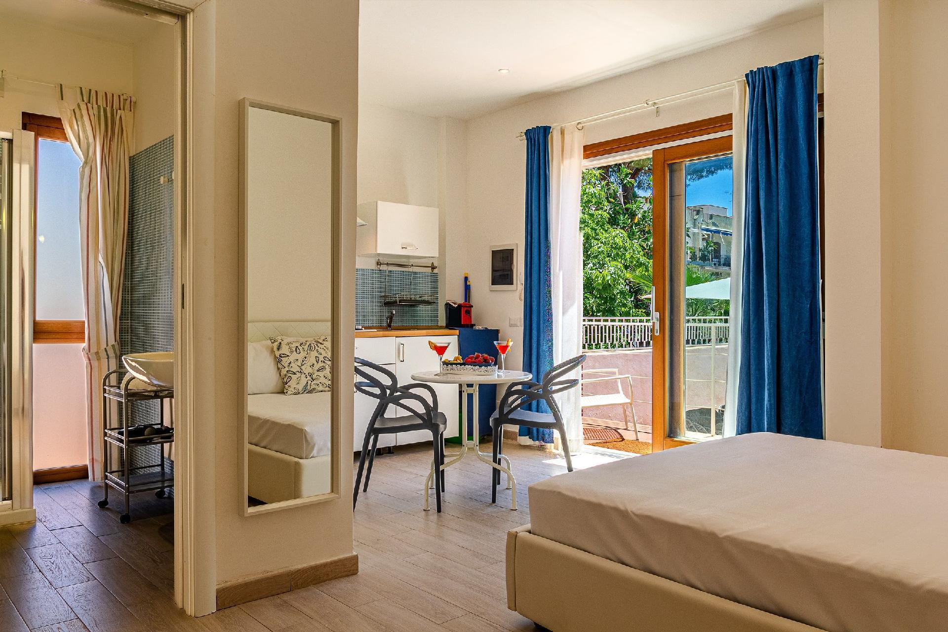Das Innere des Studios ist mit viel Liebe zum Detail eingerichtet und schafft eine gemütliche und funktionelle Umgebung. Der Wohnbereich ist hell und luftig und verfügt über eine gut ausgestattete Küchenzeile, in der Sie köstliche Mahlzeiten zubereiten können. Nach einem erlebnisreichen Tag können Sie sich auf dem bequemen Sofa entspannen oder ein Glas Wein auf der Terrasse mit Blick auf den schönen Swimmingpool genießen.