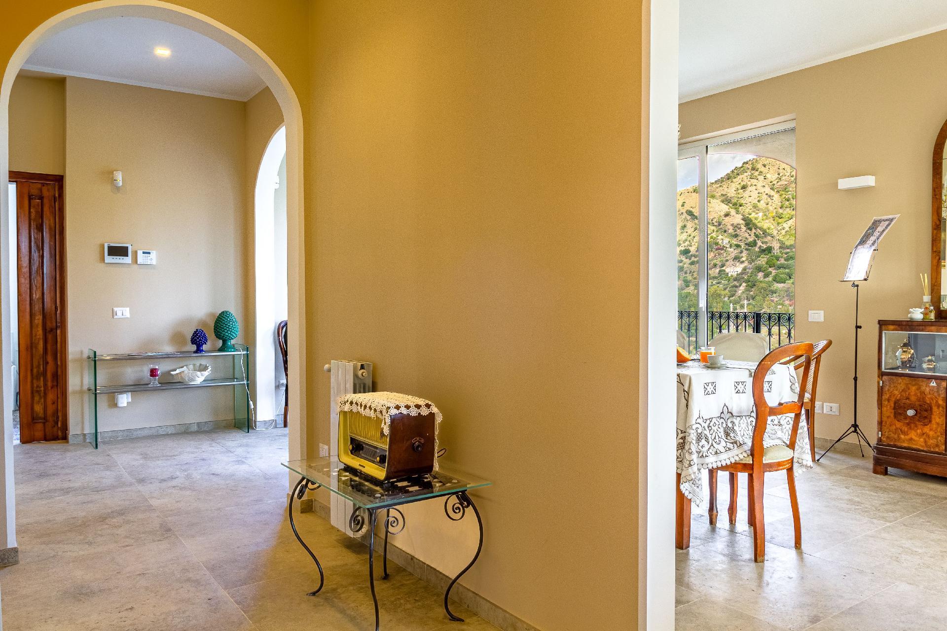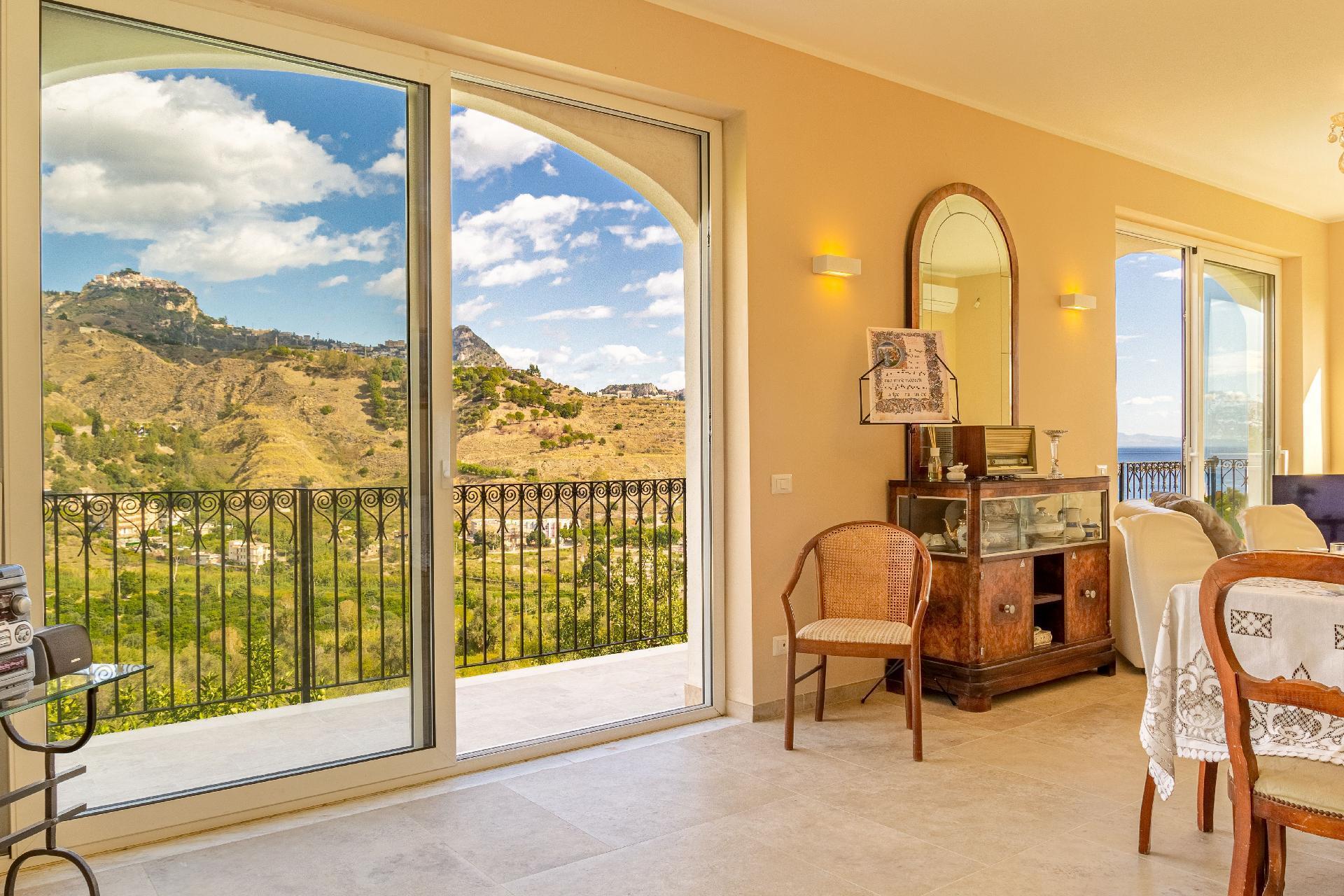 Willkommen in unserer privaten Wohnung in einer schönen Villa, mit einer Terrasse mit Panoramablick auf Taormina, Castelmola und den Golf von Giardini, das Tal und das Meer, ideal für einen erholsamen und komfortablen Urlaub. Die Wohnung mit 5,5 Zimmern plus Serviceleistungen bietet mit ihren zwei gemütlichen Schlafzimmern und einem Schlafsofa im Wohnzimmer bequem Platz für bis zu 5 Personen.