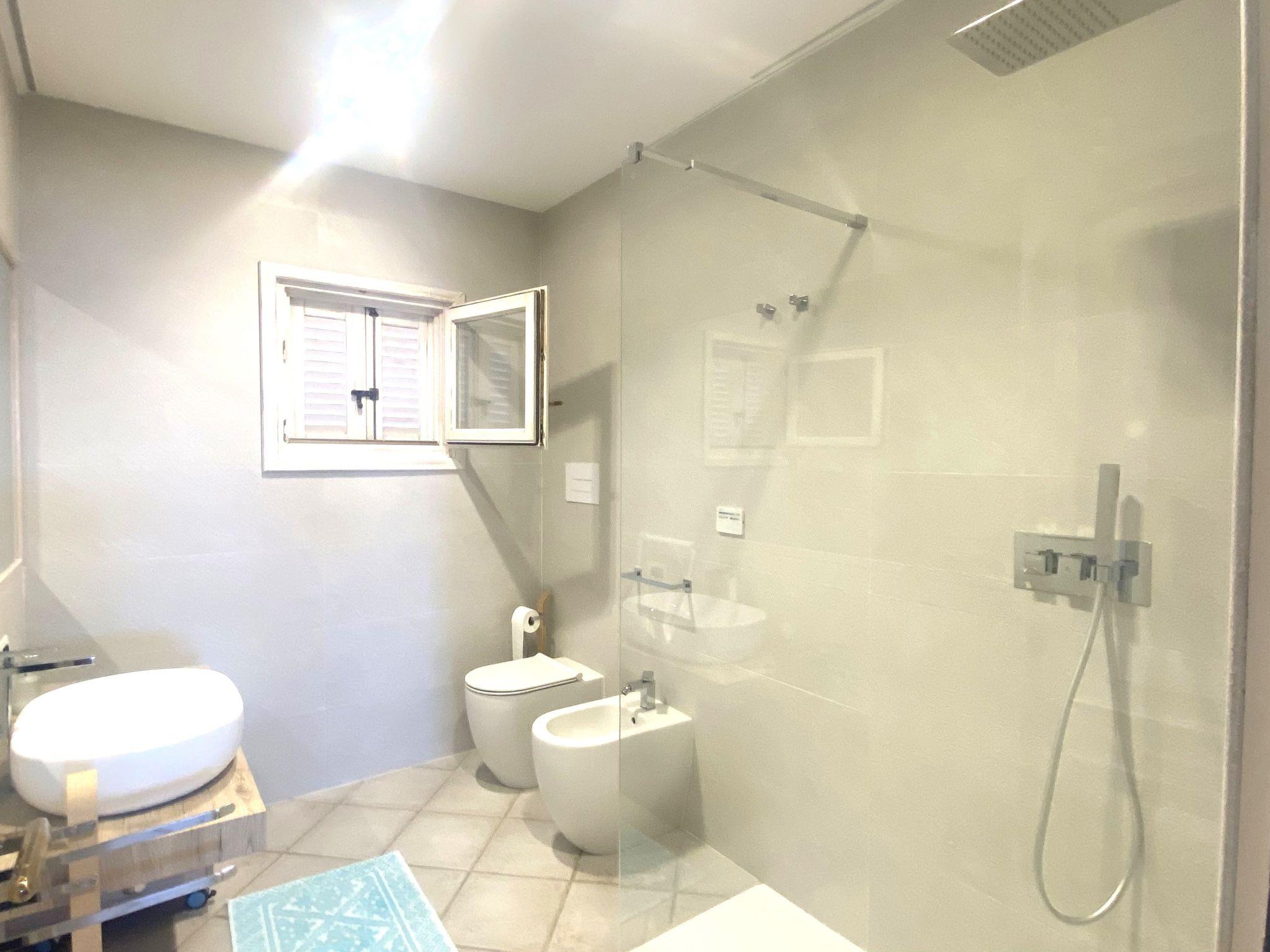 "Camilla", 3-Zimmer-Wohnung 100 m2 im 1. Stock. Komfortabel und geschmackvoll eingerichtet: grosses Wohn-/Esszimmer mit 1 Diwanbett, Sat-TV und Klimaanlage. Ausgang zur Terrasse. 1 Doppelzimmer mit Dusche/Bidet/WC und Klimaanlage. 1 Doppelzimmer. Küche (Backofen, Geschirrspüler, 4 Induktionskochplatten, 4 Flammen, Mikrowelle). Dusche/Bidet/WC. Klimaanlage, Warmluftheizung (extra). Terrasse teilweise überdacht. Terrassenmöbel. Herrliche Sicht auf das Meer. Zur Verfügung: Waschmaschine, Bügeleisen, Kinderhochstuhl, Babybett (extra), Haartrockner. Internet (WLAN, gratis). Parkplatz (überdacht). IT090083B4000E2141
