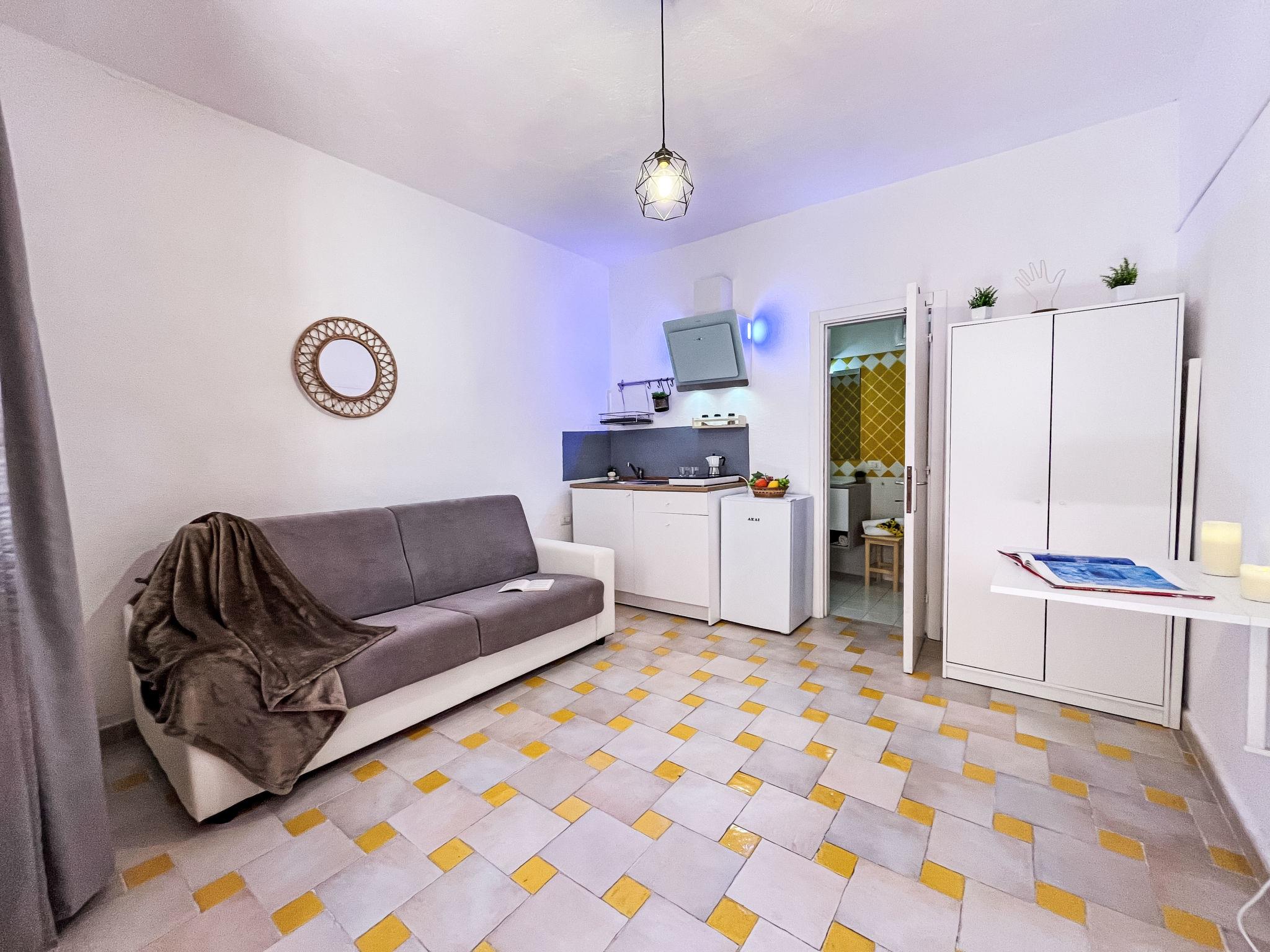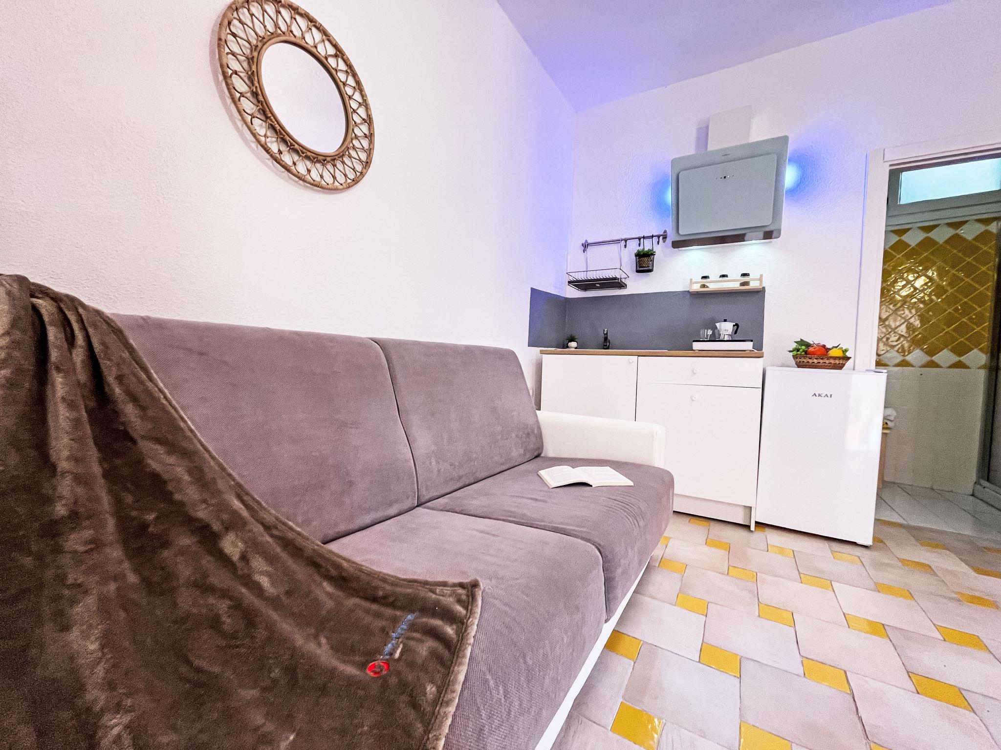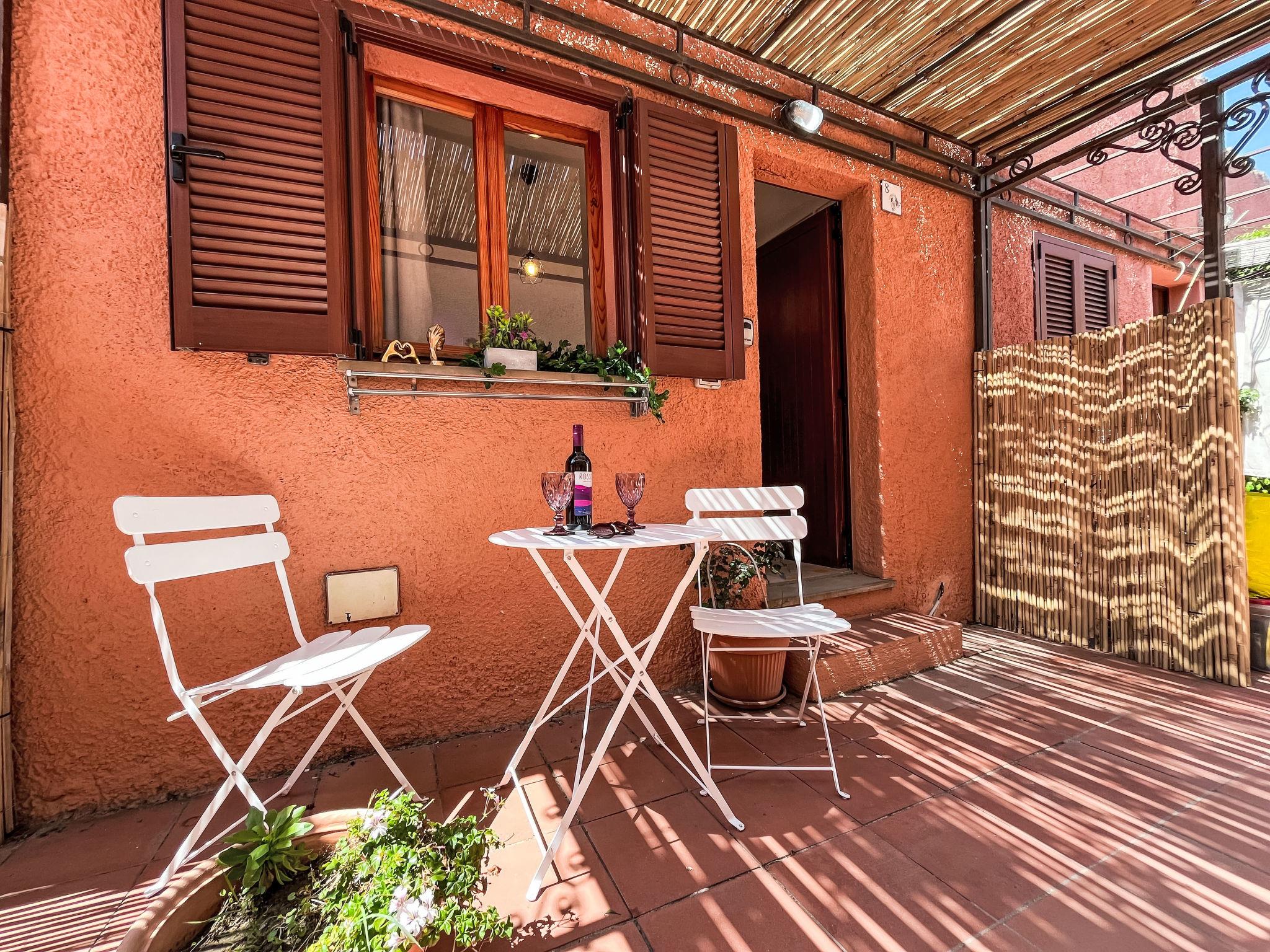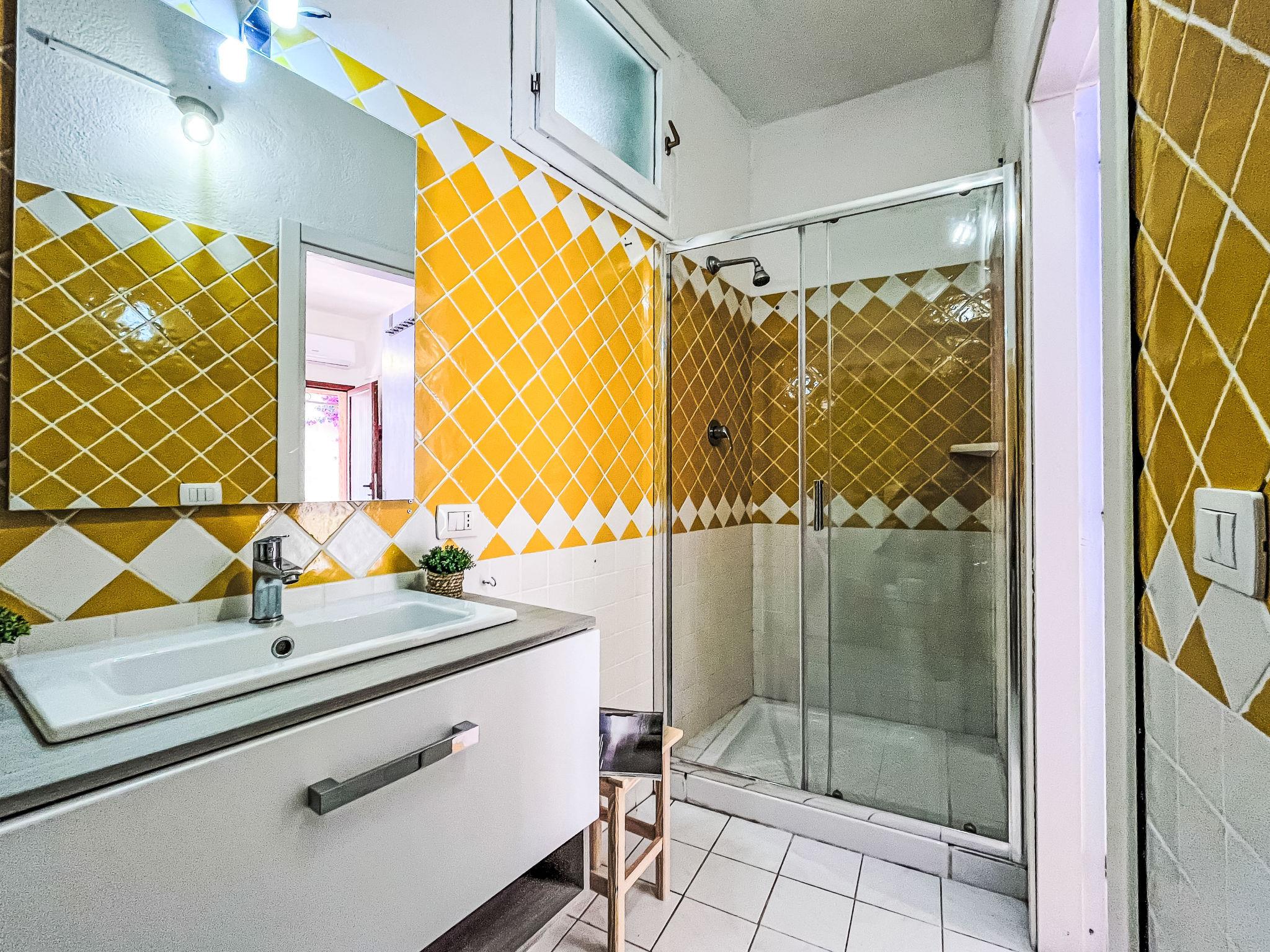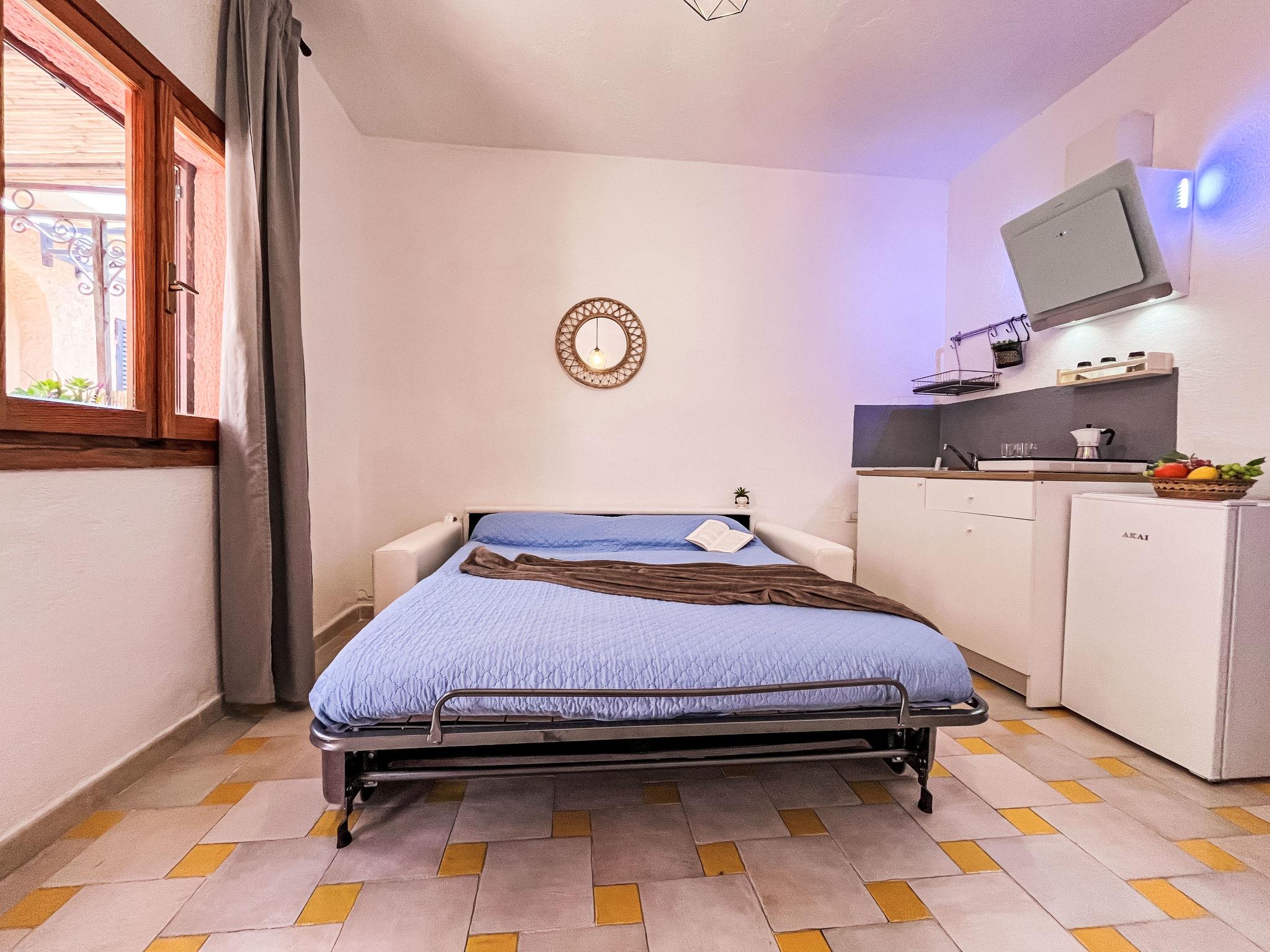 "Mono 0/8/M Marineledda", 1-Zimmer-Wohnung 18 m2, im erhöhten Erdgeschoss. Zweckmässig und geschmackvoll eingerichtet: Wohn-/Schlafzimmer mit 1 Doppeldiwanbett (140 cm, Länge 190 cm), TV. Kleine Kochnische (2 Induktionskochplatten, Toaster, Wasserkocher) mit kleinem Esstisch. Dusche/WC. Klimaanlage, Warmluftheizung, Boiler (30 Liter). Terrasse überdacht. Terrassenmöbel. Zur Verfügung: Waschmaschine, Bügeleisen, Haartrockner. Internet (WLAN, gratis). Bitte beachten: Kühlschrank ohne Gefrierfach, Nichtraucher-Haus. Maximal 1 Haustier/Hund erlaubt. Rauchmelder, Feuerlöscher. IT090083C2000T7829