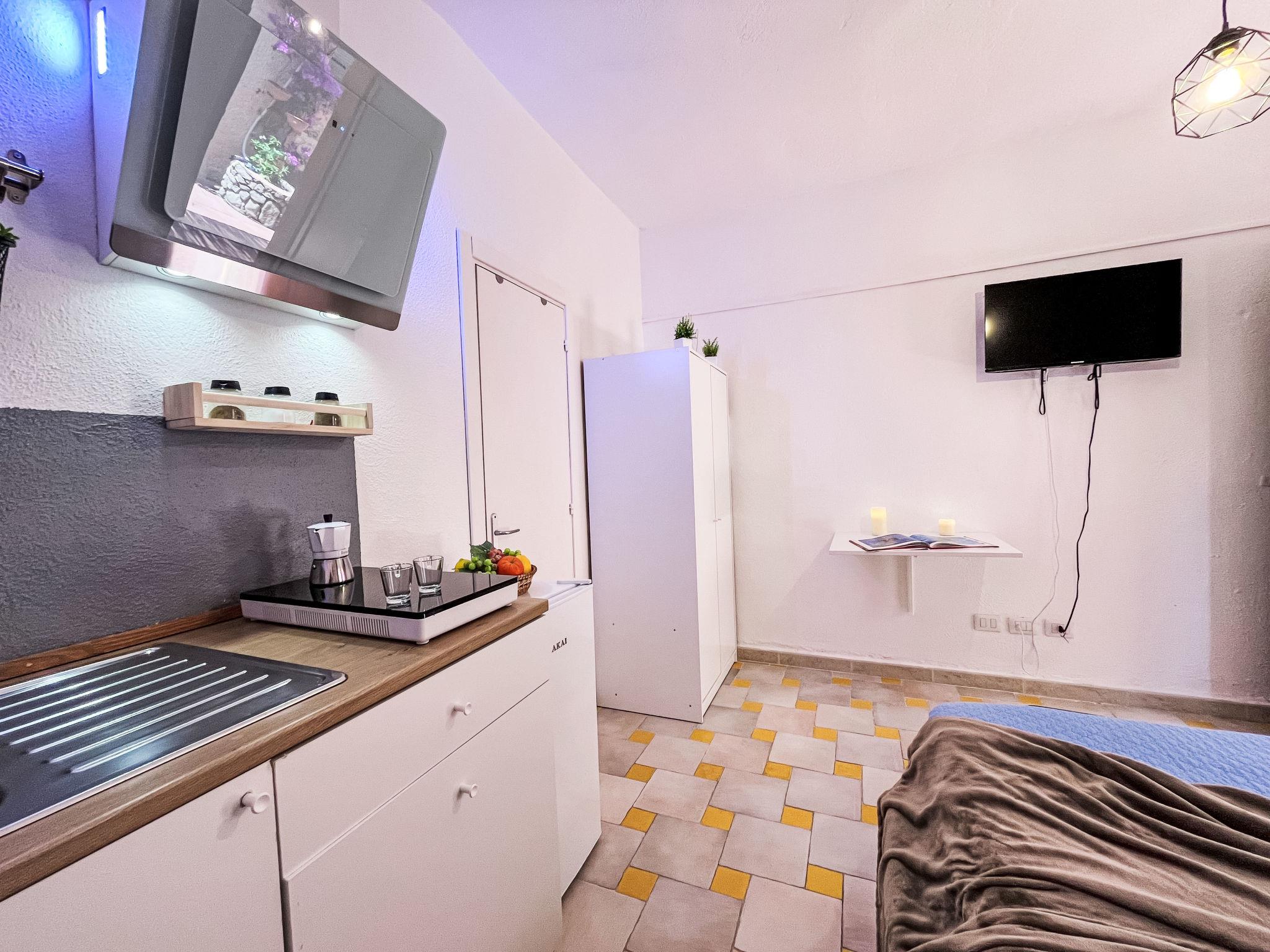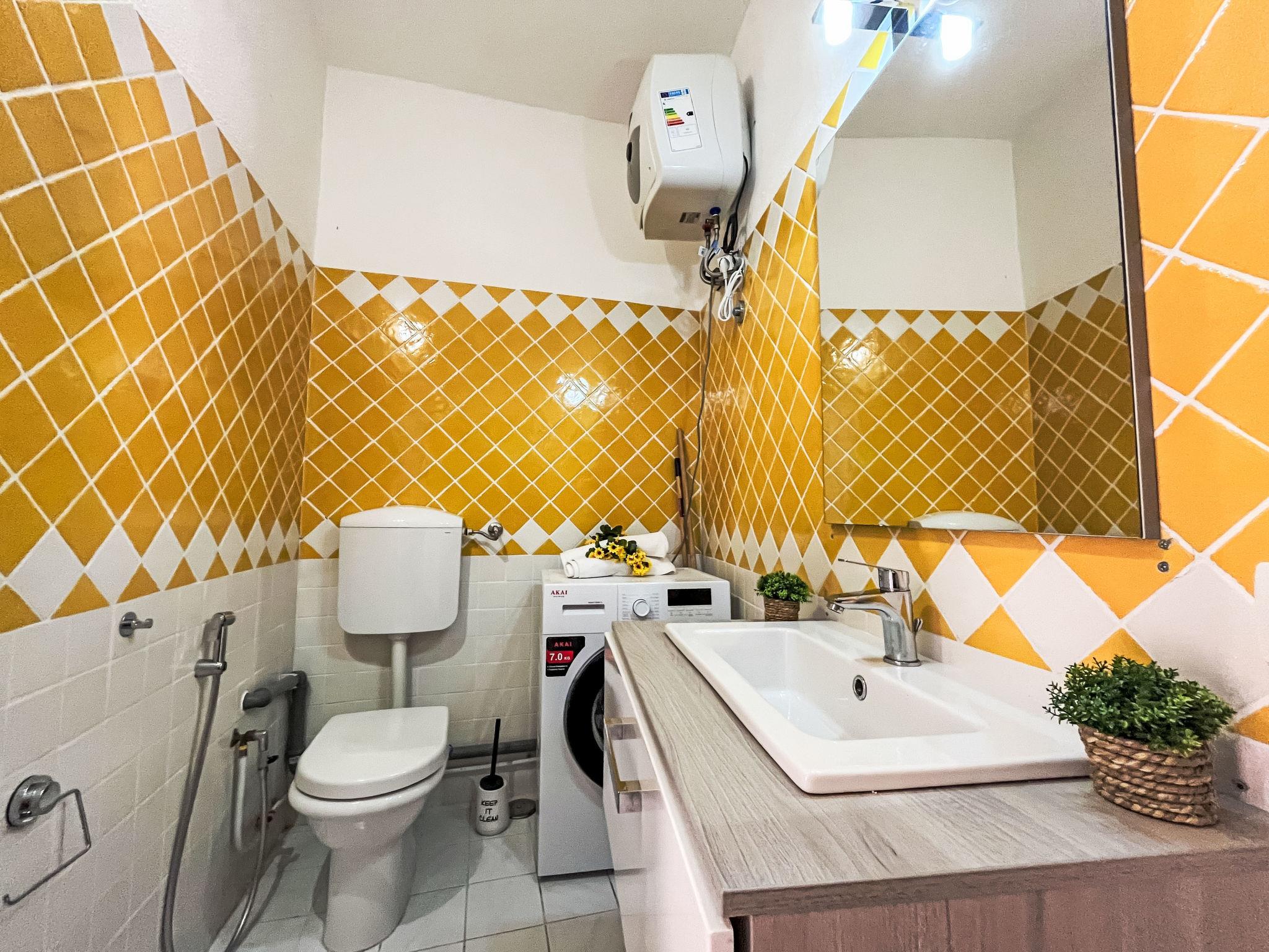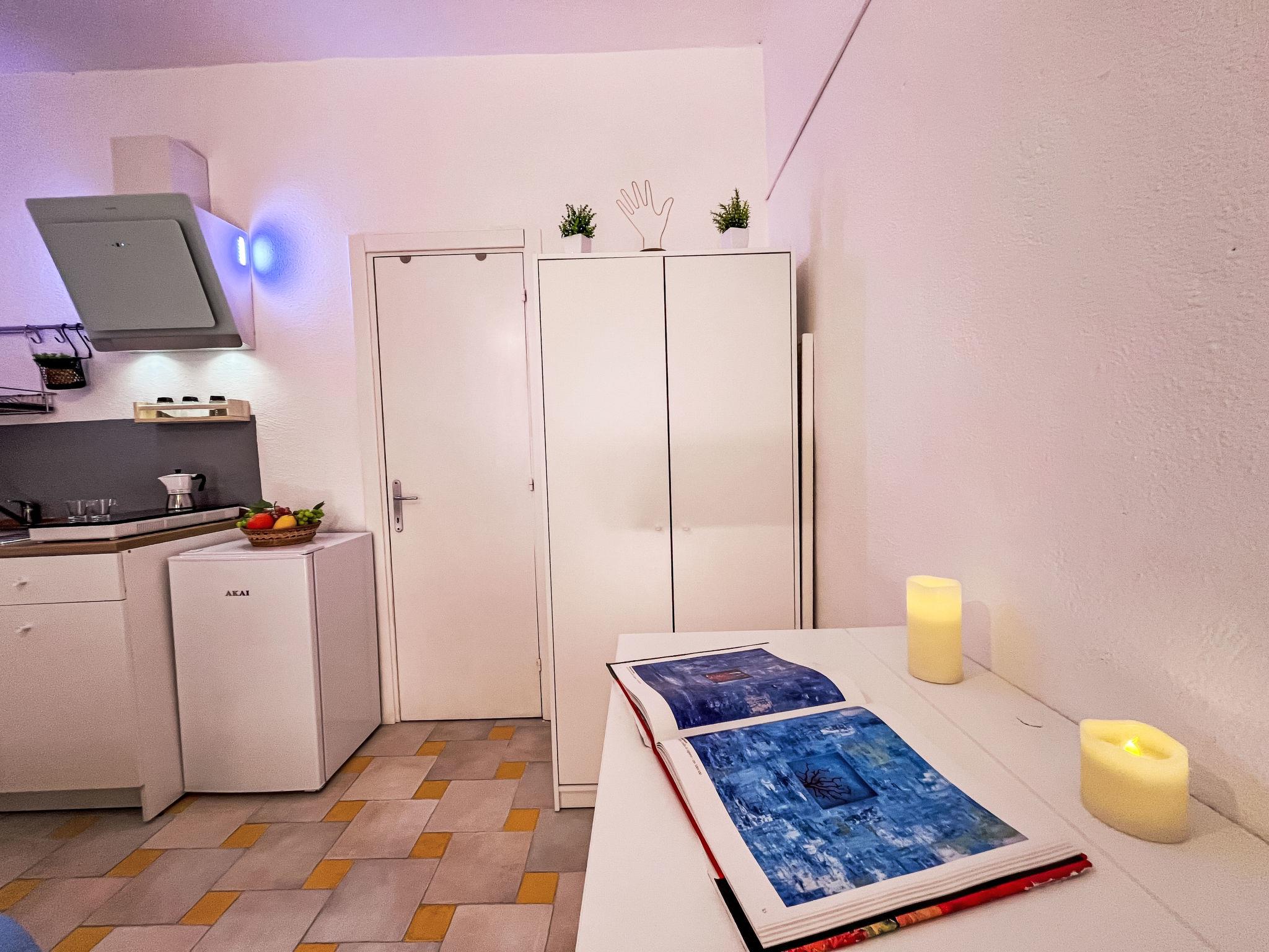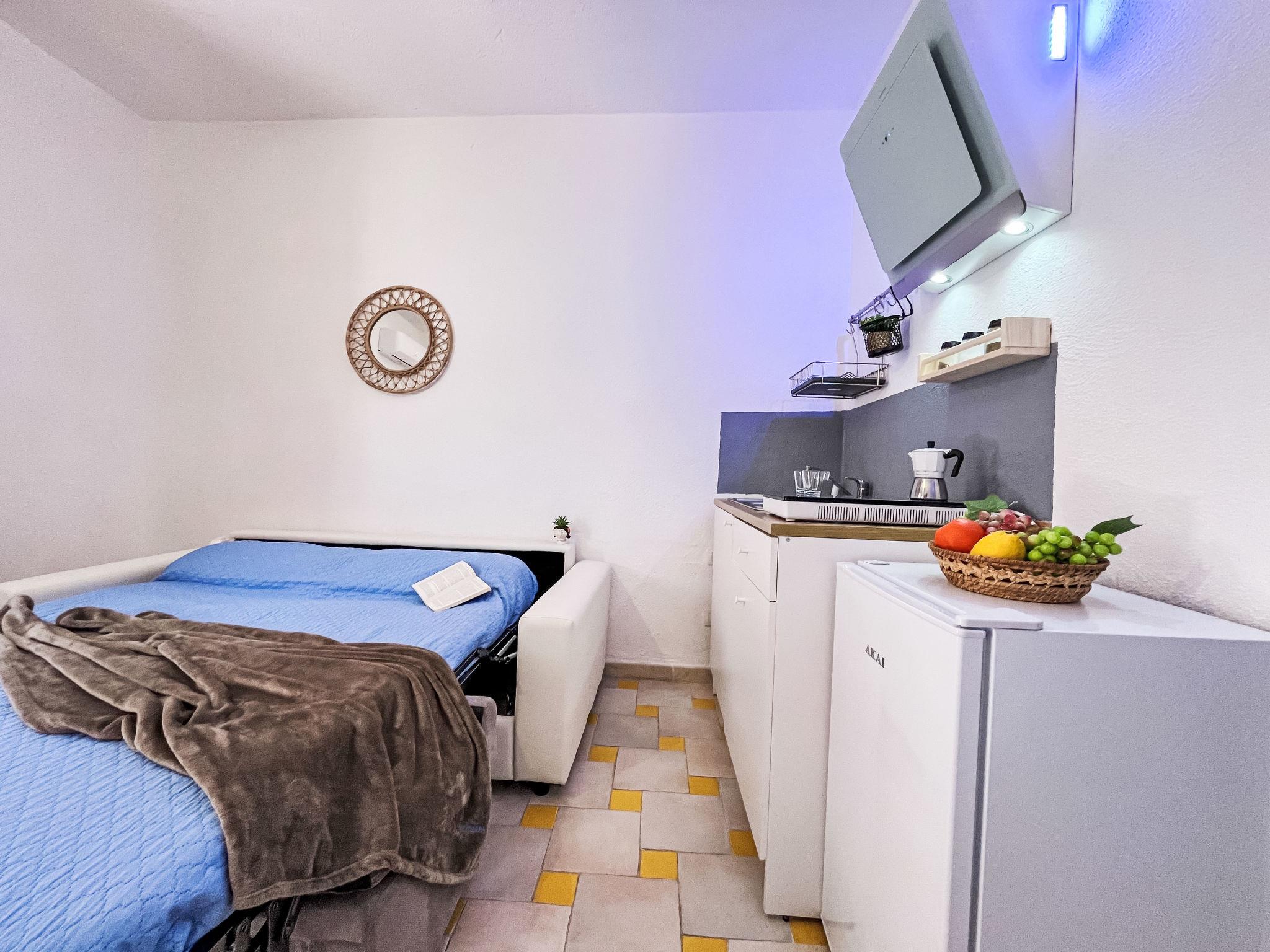 "Mono 0/8/M Marineledda", 1-Zimmer-Wohnung 18 m2, im erhöhten Erdgeschoss. Zweckmässig und geschmackvoll eingerichtet: Wohn-/Schlafzimmer mit 1 Doppeldiwanbett (140 cm, Länge 190 cm), TV. Kleine Kochnische (2 Induktionskochplatten, Toaster, Wasserkocher) mit kleinem Esstisch. Dusche/WC. Klimaanlage, Warmluftheizung, Boiler (30 Liter). Terrasse überdacht. Terrassenmöbel. Zur Verfügung: Waschmaschine, Bügeleisen, Haartrockner. Internet (WLAN, gratis). Bitte beachten: Kühlschrank ohne Gefrierfach, Nichtraucher-Haus. Maximal 1 Haustier/Hund erlaubt. Rauchmelder, Feuerlöscher. IT090083C2000T7829